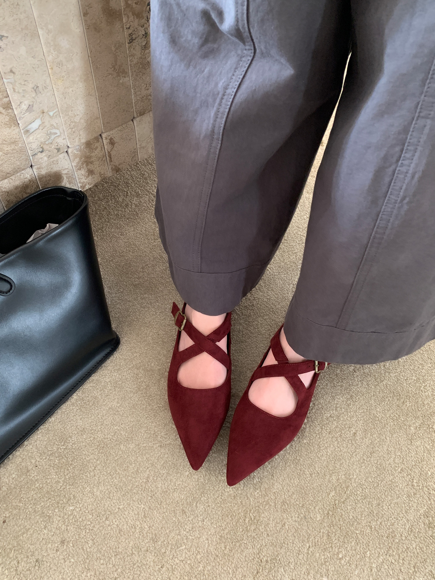 빈티지 크로스 벨트 로우 힐 레드 싱글 신발 여성의 2024 봄과 가을 우아한 원피스 니치 저녁 메리 제인 신발스토어 가기