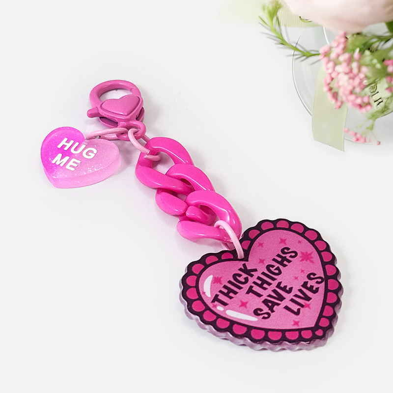 국경 간 뜨거운 판매 양면 아크릴 핑크 소녀 사랑 재미있는 DIY 키 체인 가방 펜던트 휴대 전화 매달려