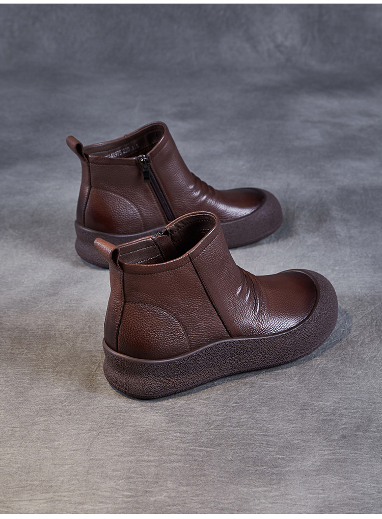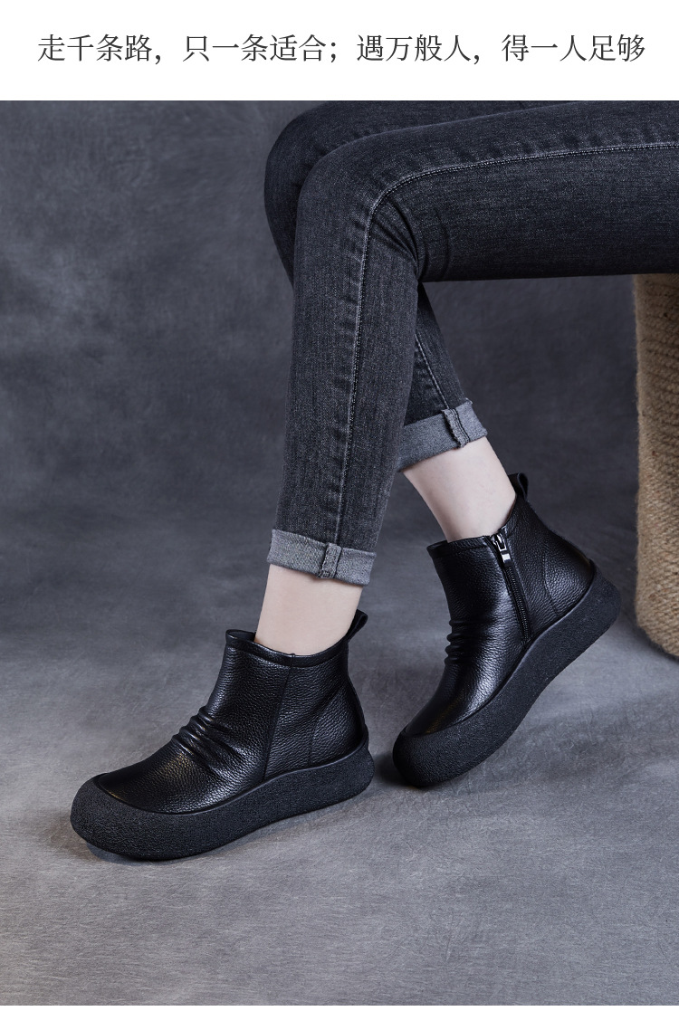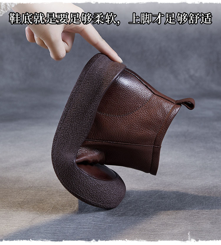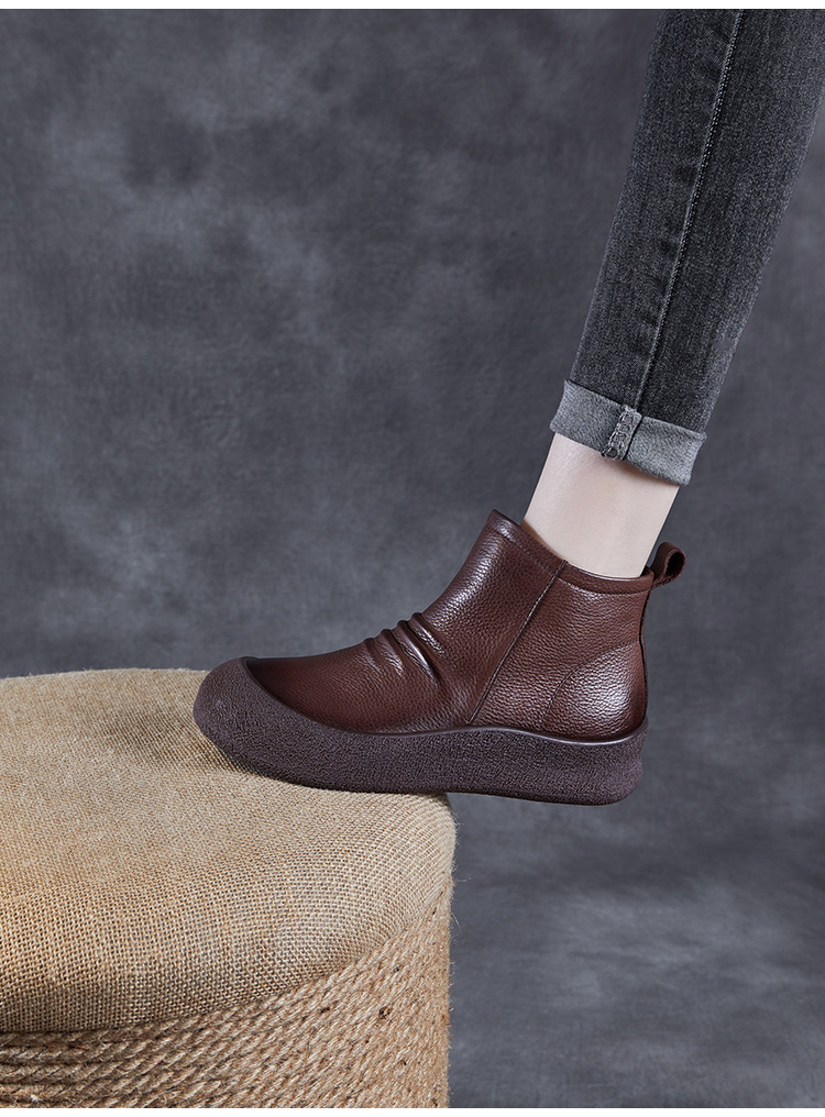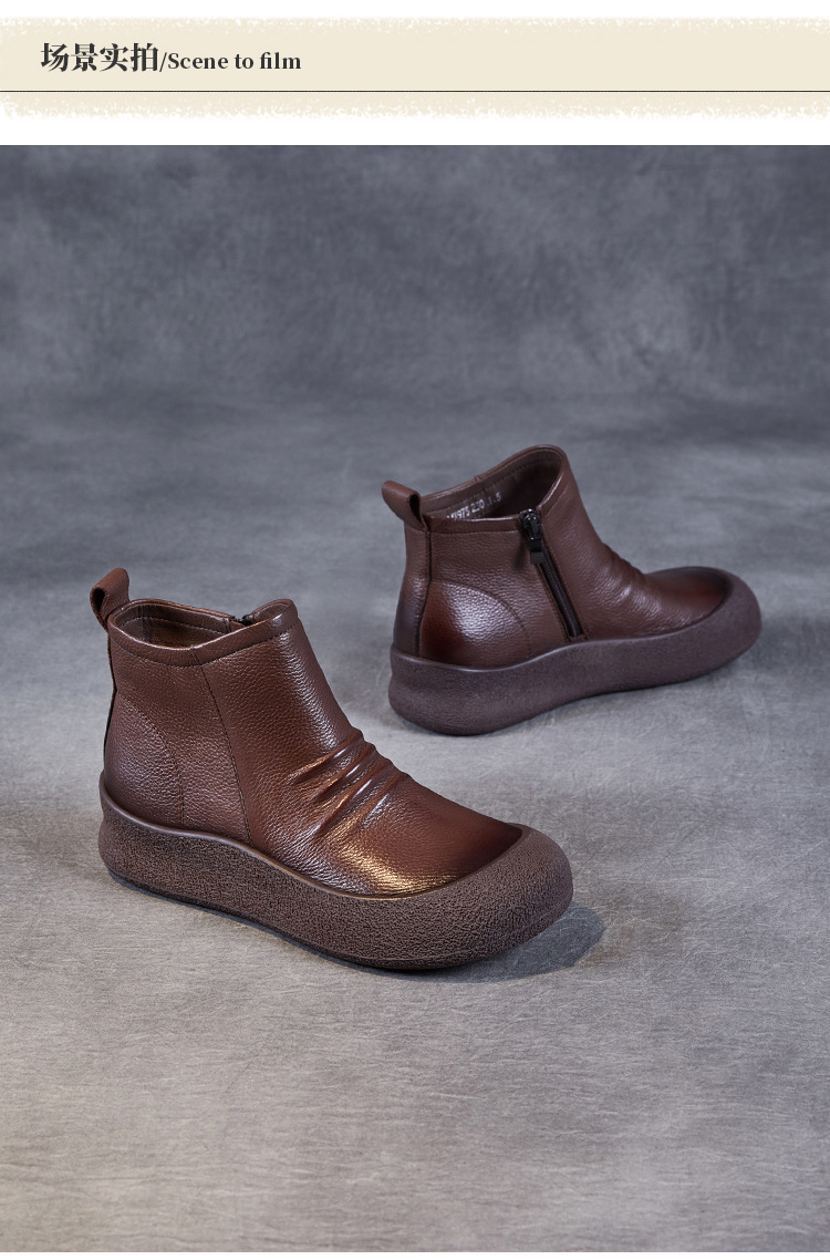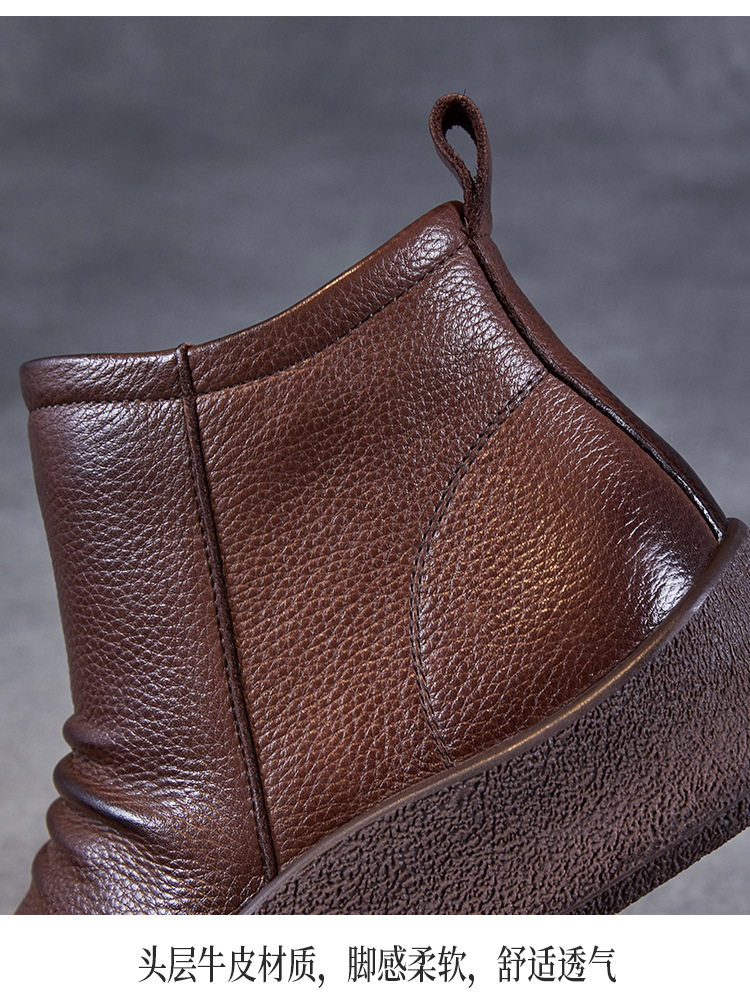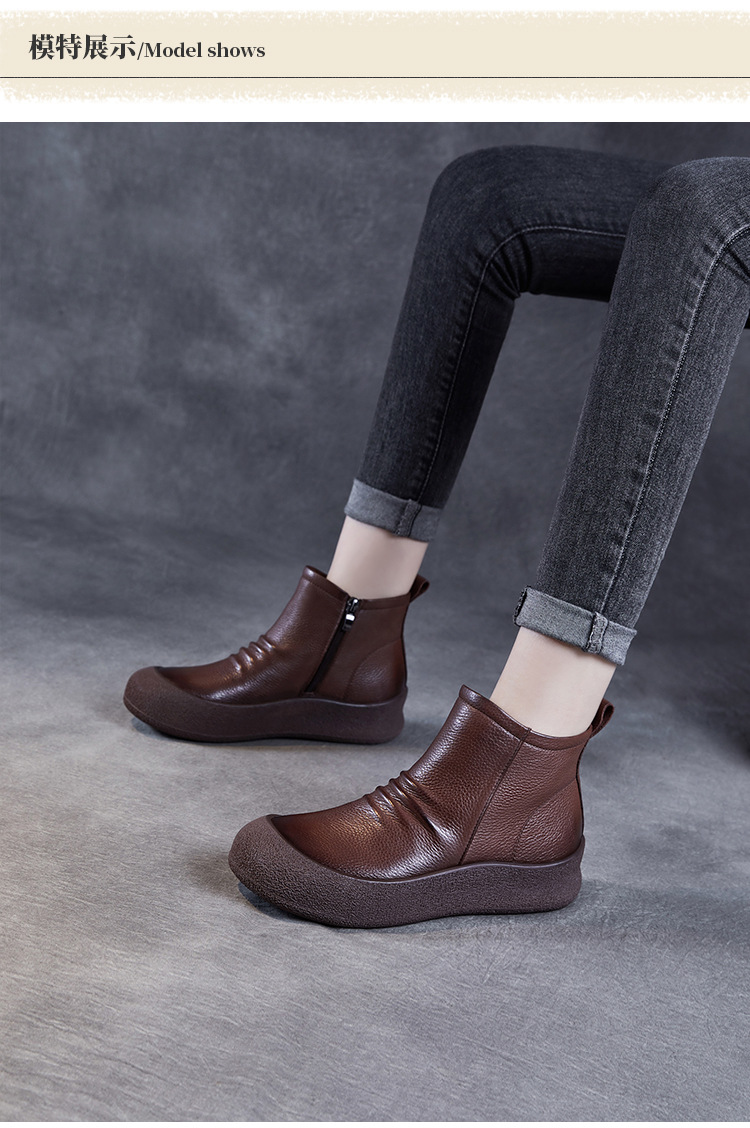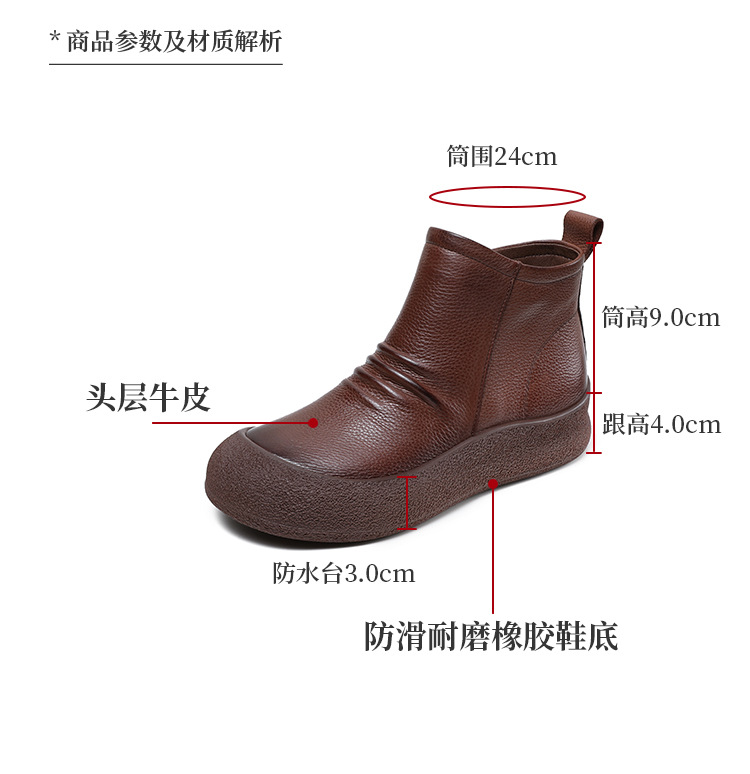 오리지널 레트로 플랫 부츠 2024 가을 및 겨울 헤드 레이어 Cowhide 수제 마틴 부츠 짧은 부츠 여성용 부츠 로우 힐 소프트 가죽 바닥