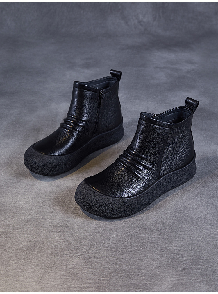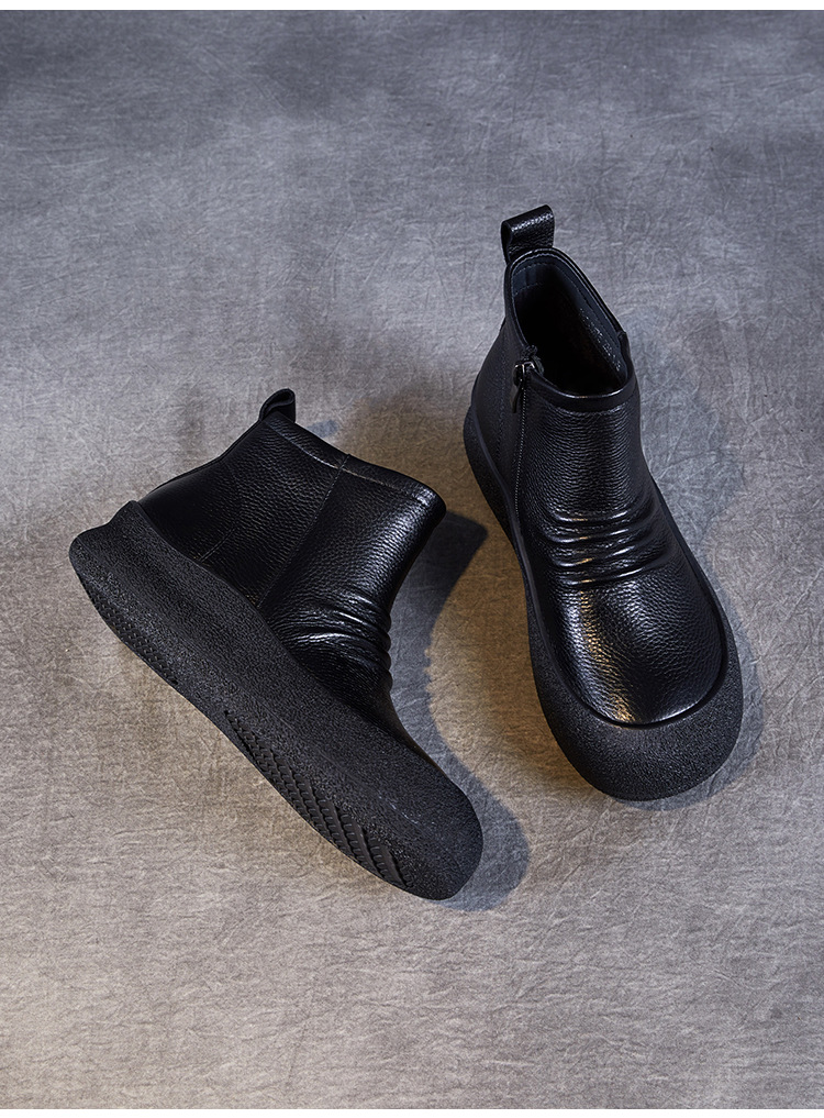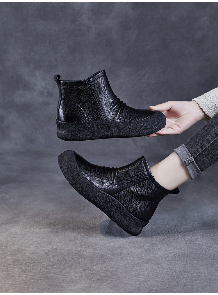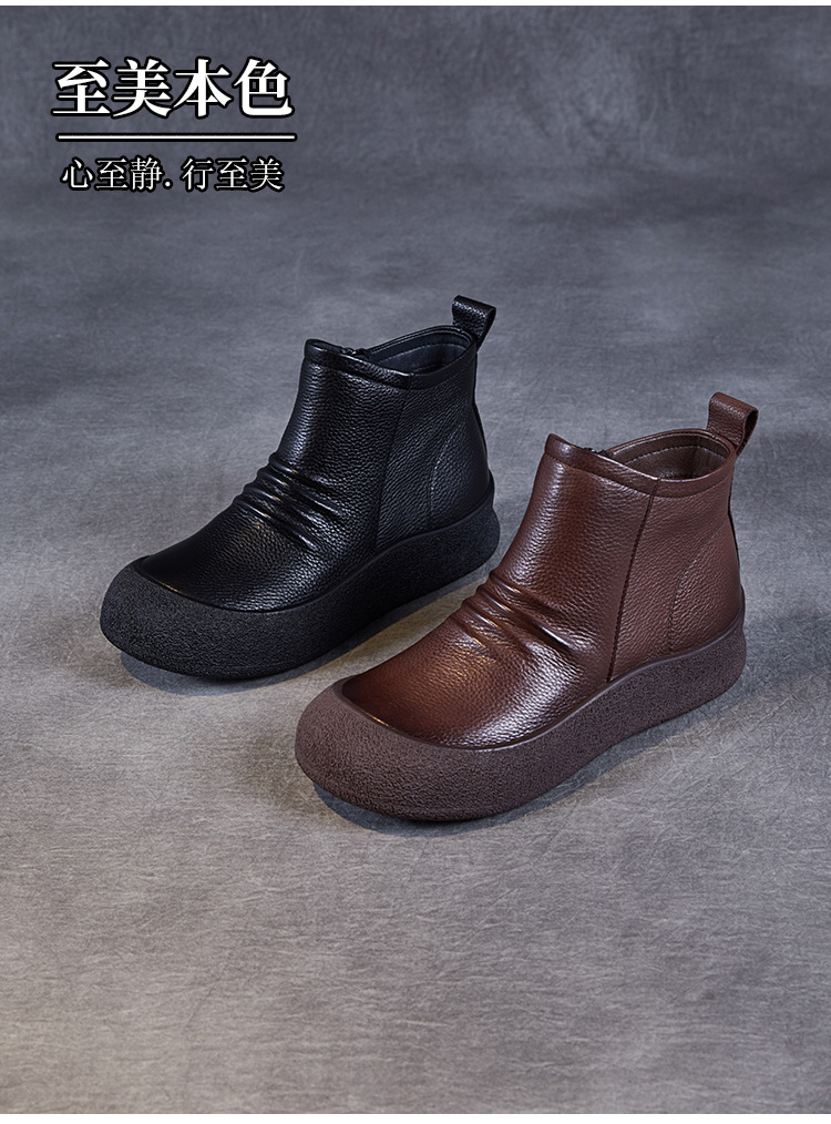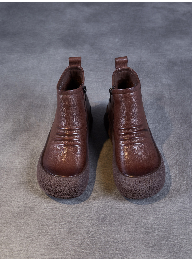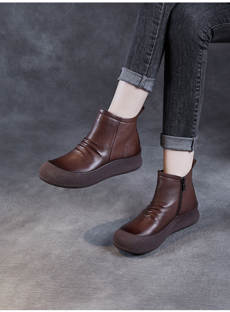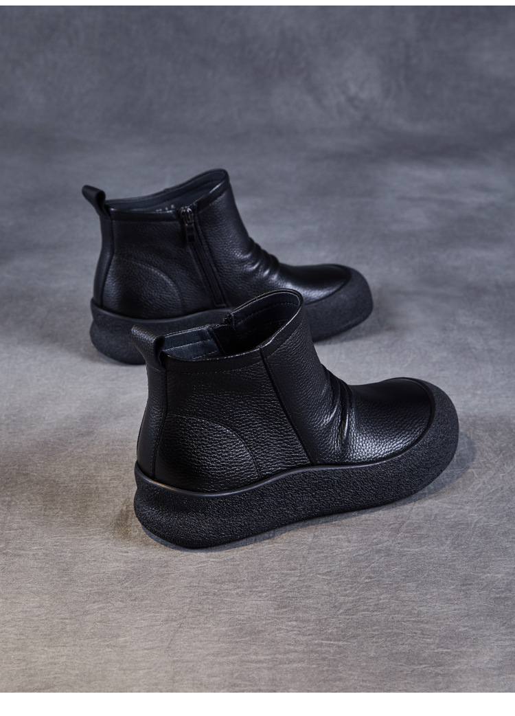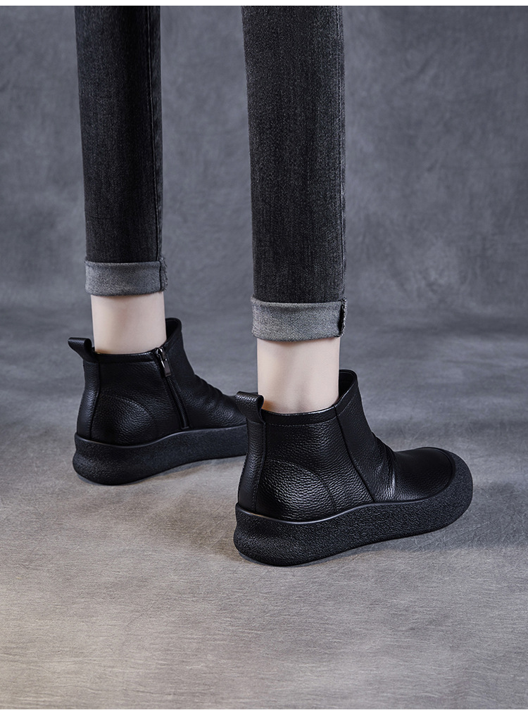 오리지널 레트로 플랫 부츠 2024 가을 및 겨울 헤드 레이어 Cowhide 수제 마틴 부츠 짧은 부츠 여성용 부츠 로우 힐 소프트 가죽 바닥