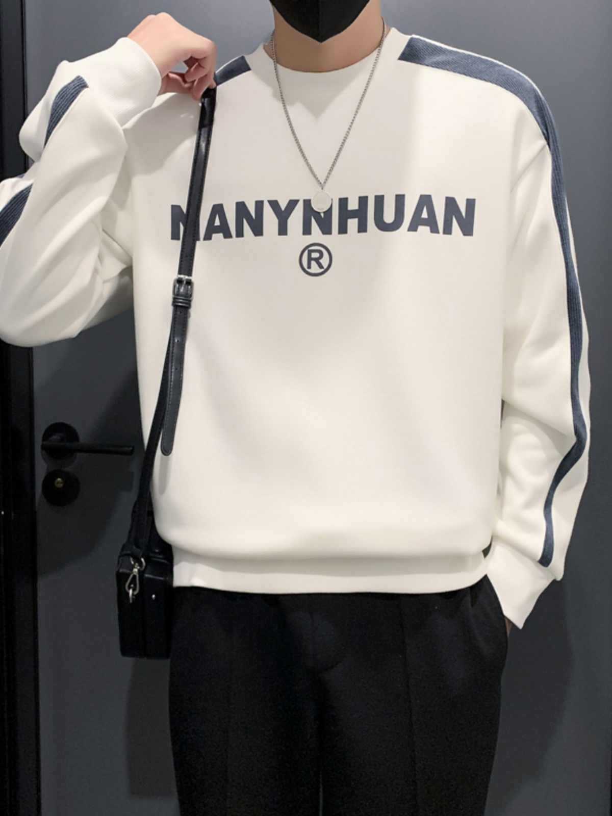 남성용 봄과 가을 헤비 후드 긴팔 티셔츠 트렌디 브랜드 남성용 코트 중립 스타일 스트라이프 탑스토어 가기