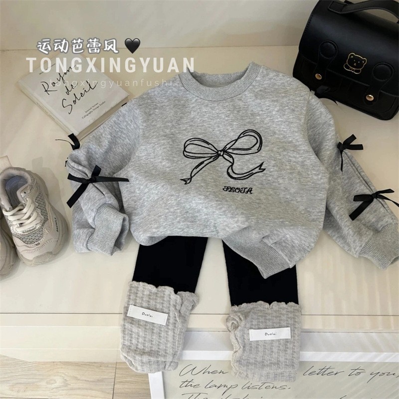 여아 가을 세트 2025 가을 한국 스타일 여아용 스웨터 재킷 루즈핏 나팔바지 투피스 세트스토어 가기