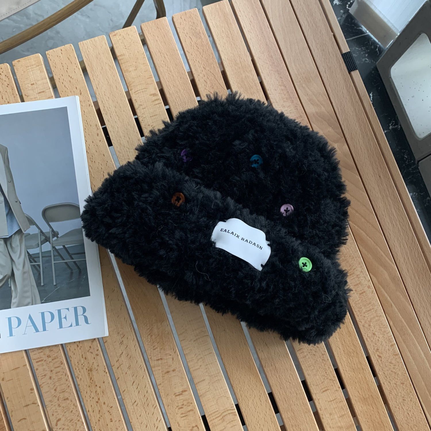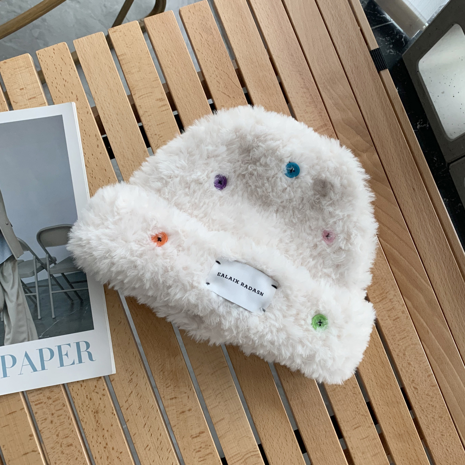 Bailu 사슴 버튼 장식 봉제 니트 모자 여성의 가을과 겨울 따뜻한 귀여운 작은 분지 모자 모조 가죽 밀짚 모자