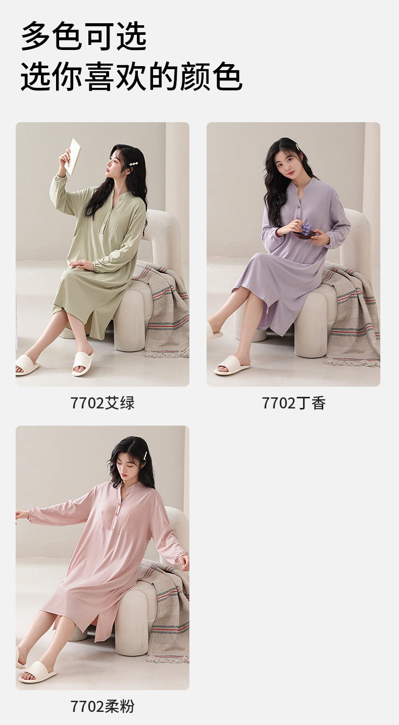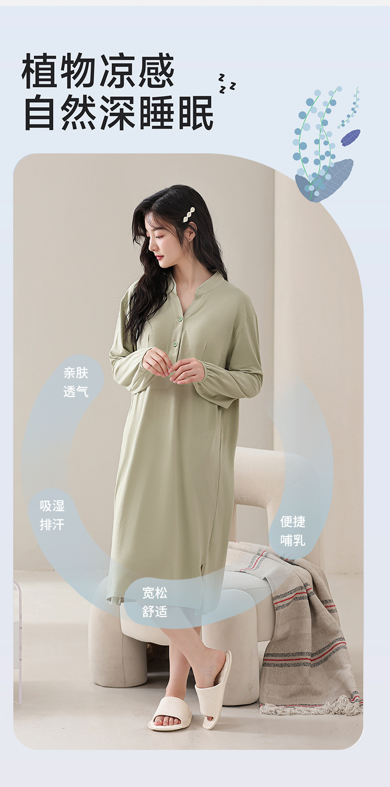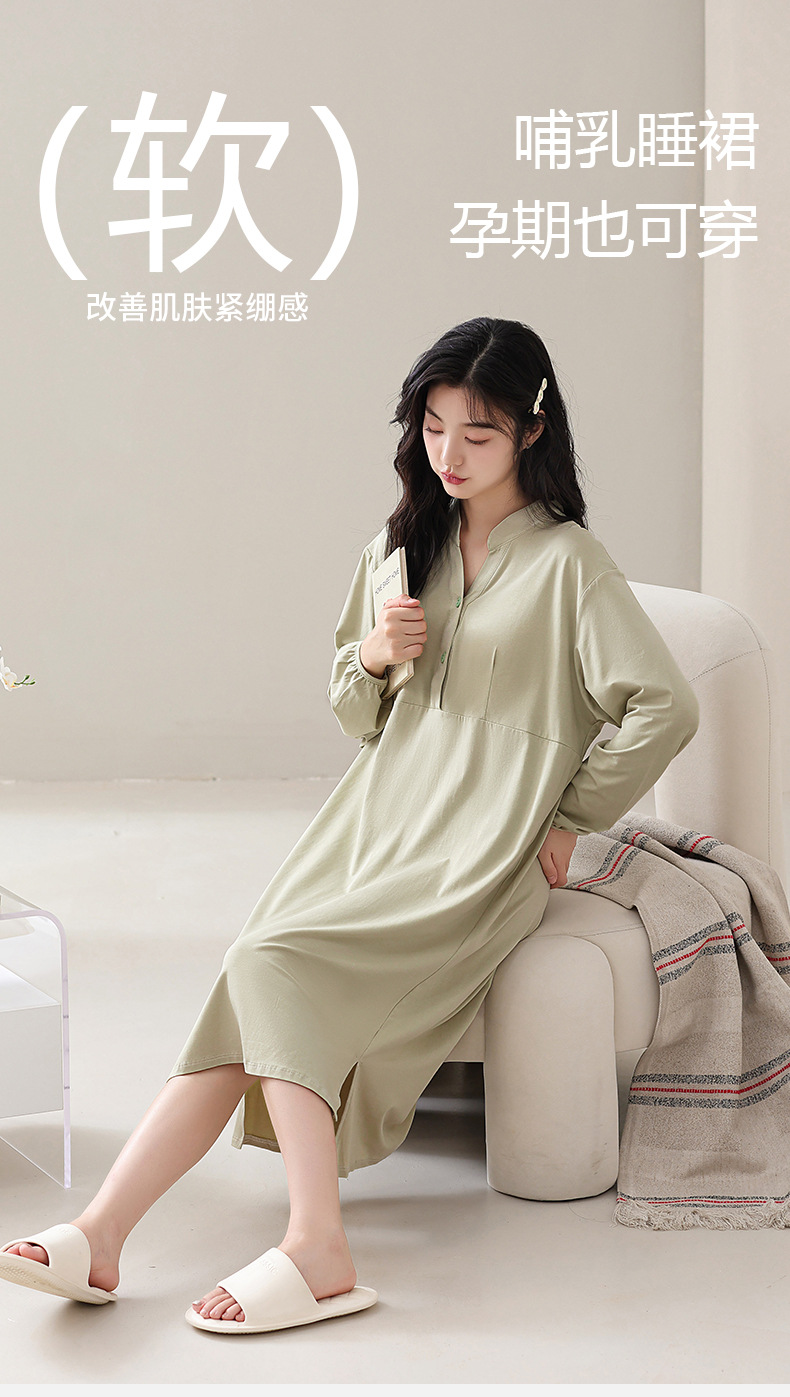 임산부 원피스 가슴 패드를 가진 임산부 원피스 시원한면 봄과 가을 긴 소매 파자마 느슨한 중장 카디건