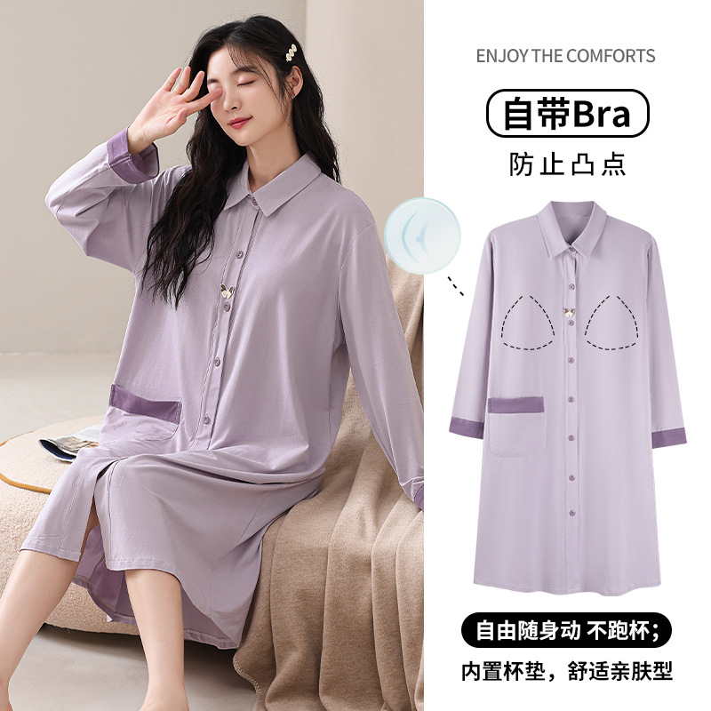 임산부 원피스 가슴 패드를 가진 임산부 원피스 시원한면 봄과 가을 긴 소매 파자마 느슨한 중장 카디건스토어 가기
