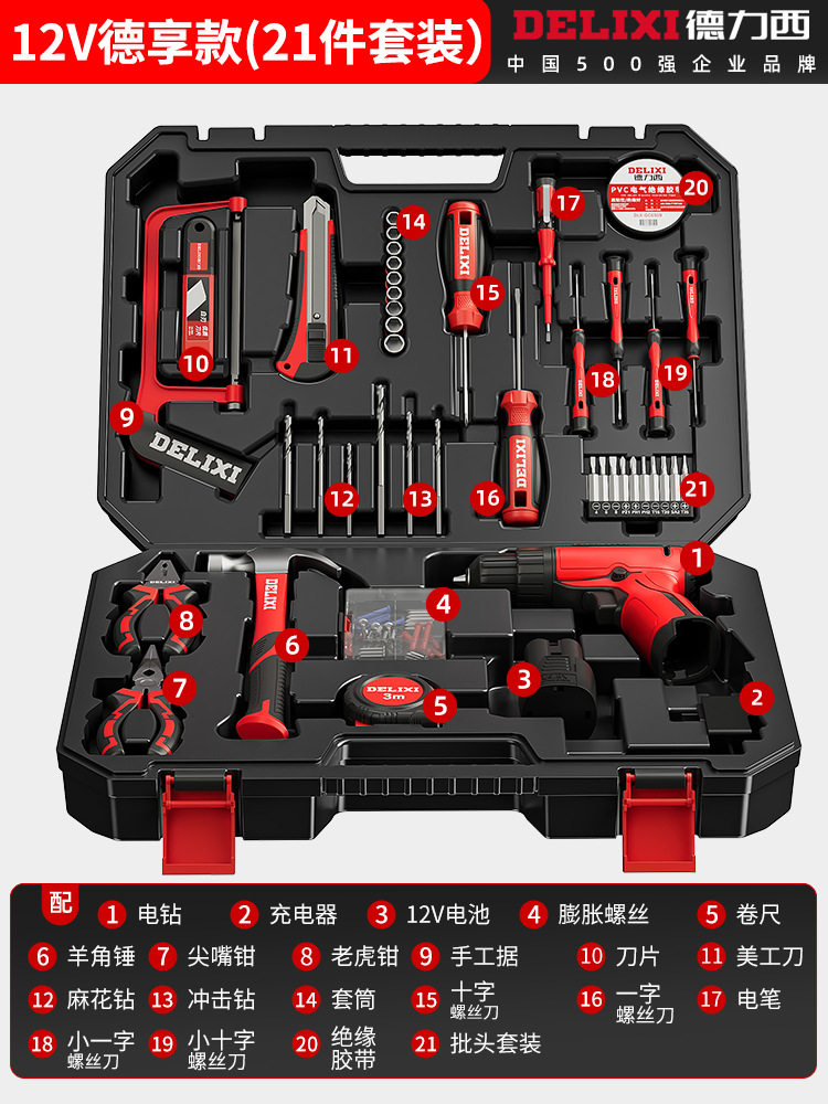 Delixi Toolbox 리튬 전기 드릴 전원 도구 세트 다기능 가정용 하드웨어 목공 전기 특수 유지 보수스토어 가기
