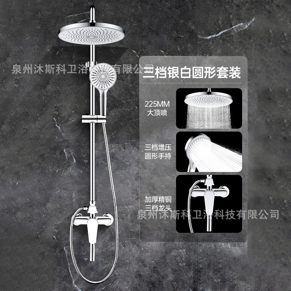 • [전기도금 흰색 표면 원형 8015] 3단 두꺼운 미세 구리 샤워 세트