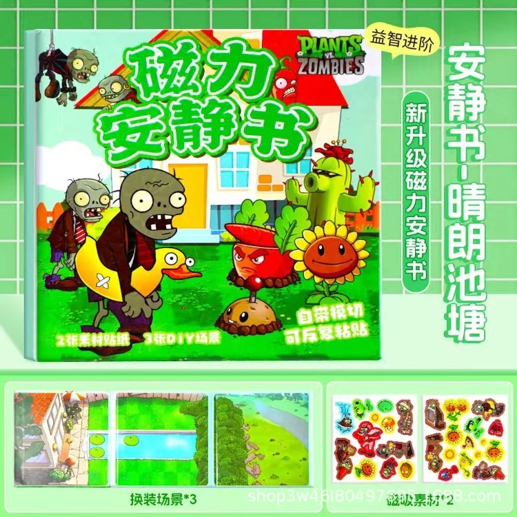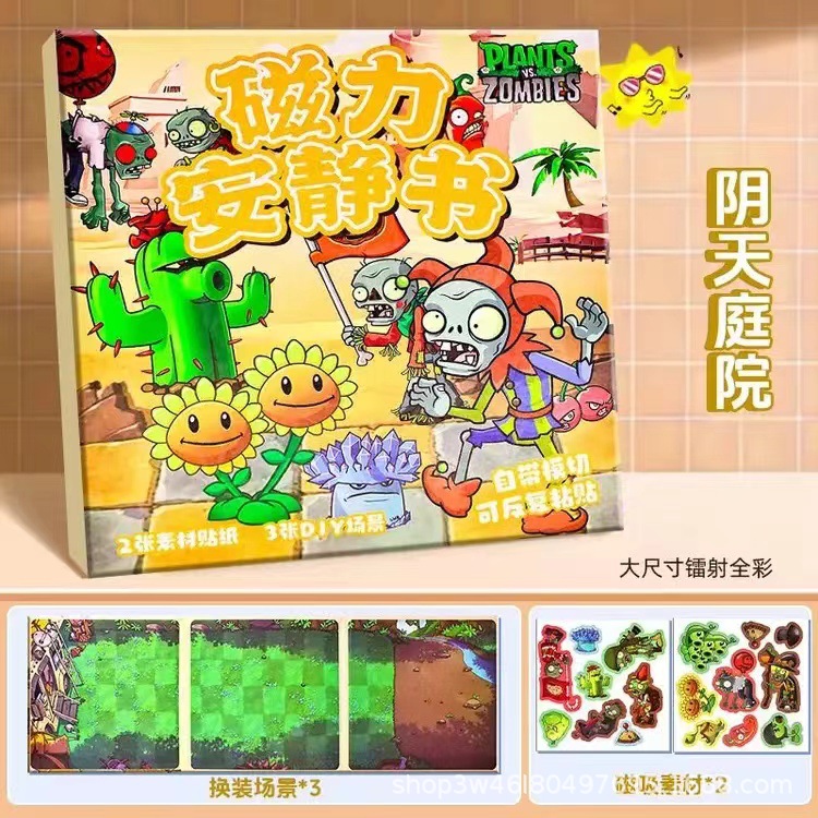 재고 식물 대 좀비 자기 조용한 책 엘사 공주 인어 아이 자기 접착 장난감 도매스토어 가기