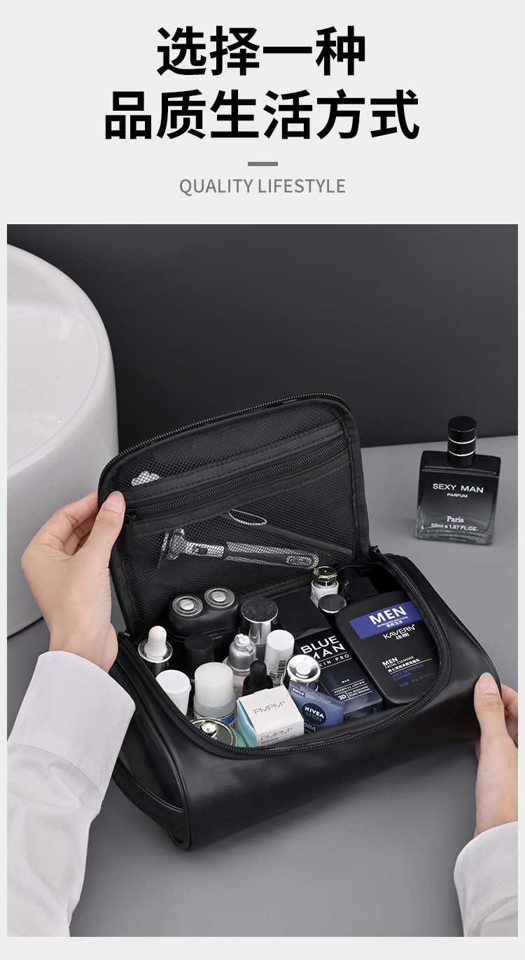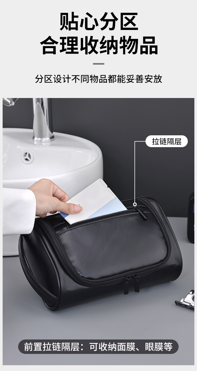 국경 간 아마존 새로운 휴대용 PU 남성 화장품 가방 고급 센스 대용량 방수 휴대용 여행 세탁 가방