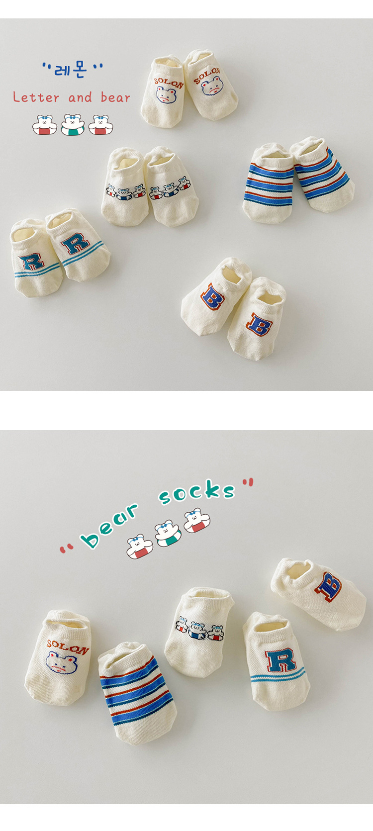 • XY1398 여름 곰 보이지 않는 양말
