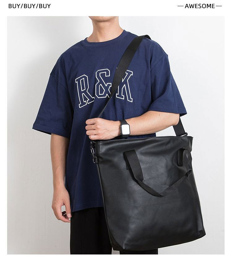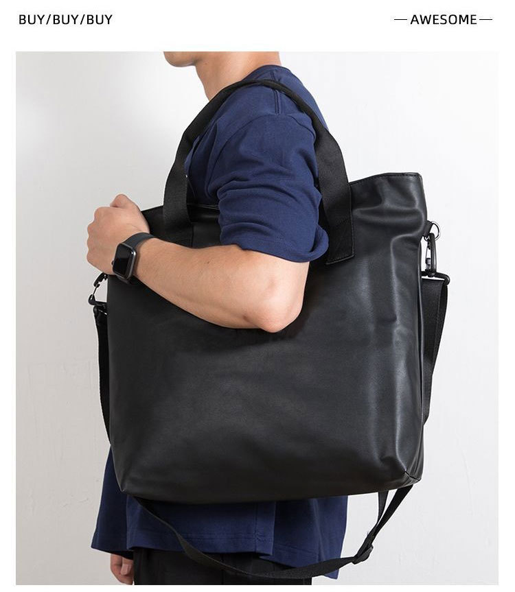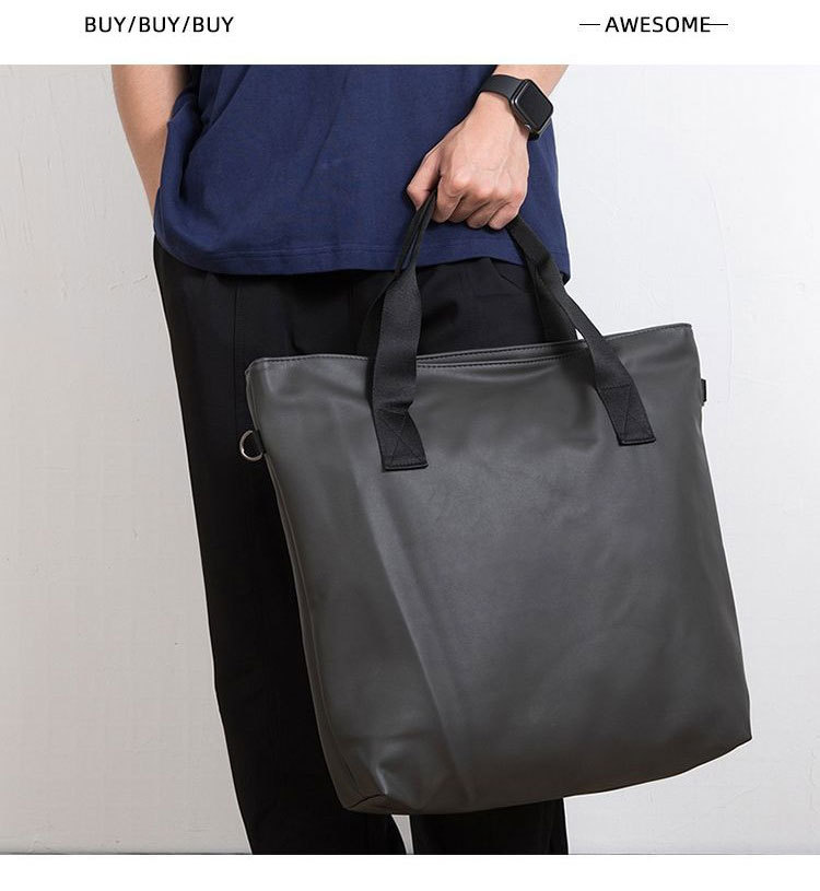 미국 버전 트렌디한 디자인 가죽 토트 백 남성용 및 여성용 숄더백 대학생 노트북 가방 16 인치스토어 가기