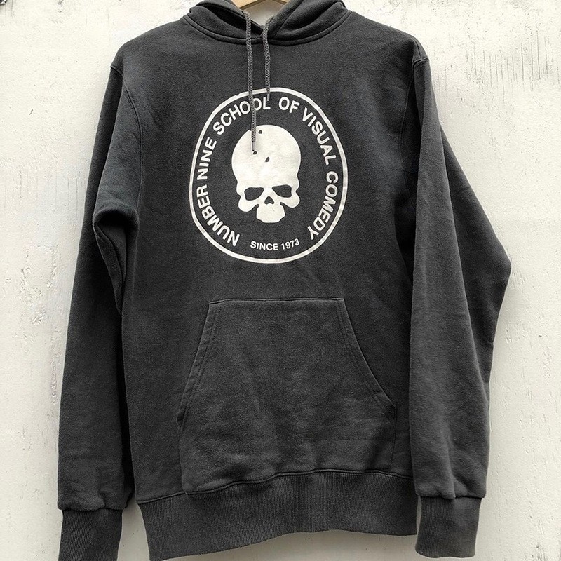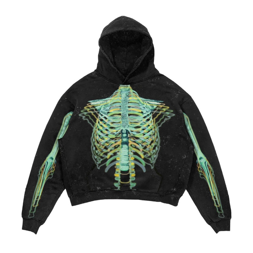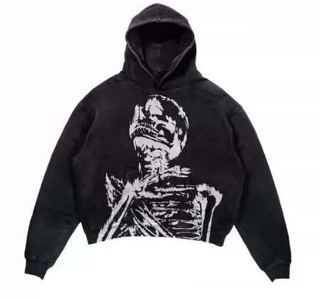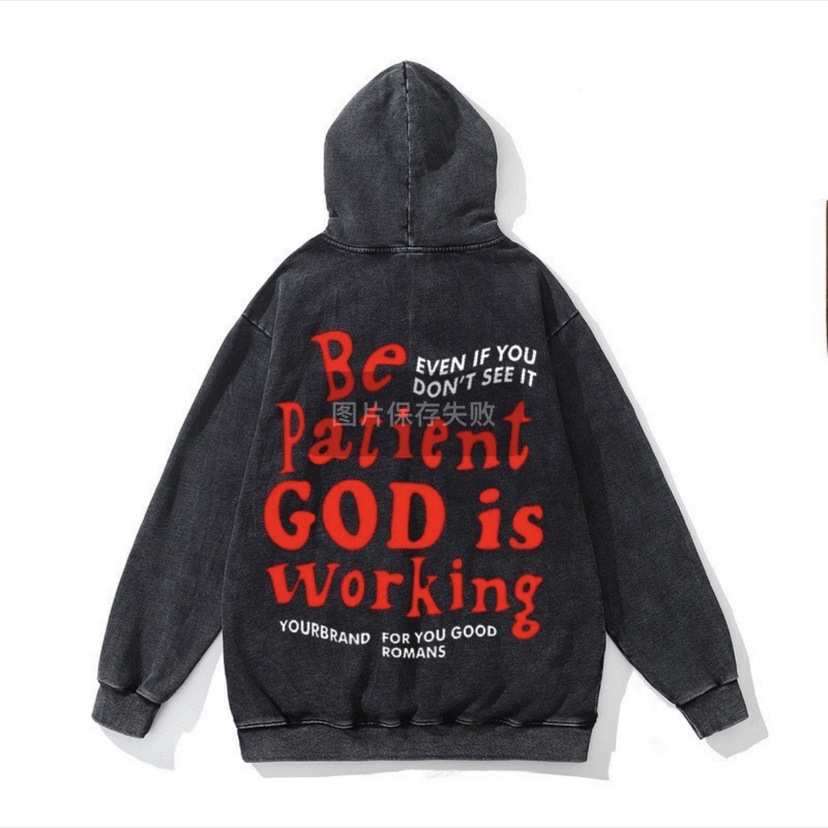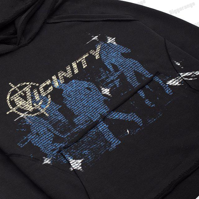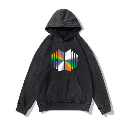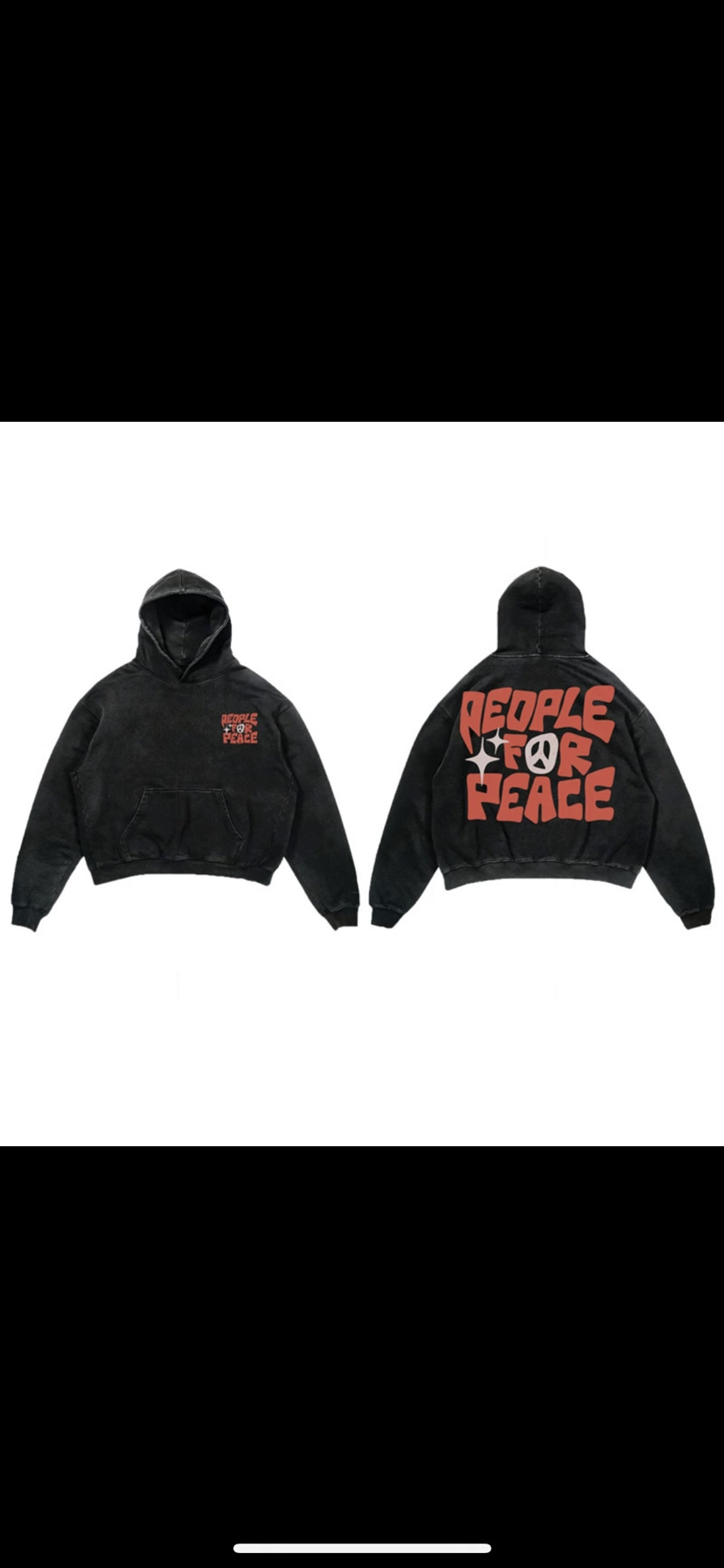 • 뒷면 프린트가 있는 검은색 워싱 후드티