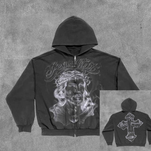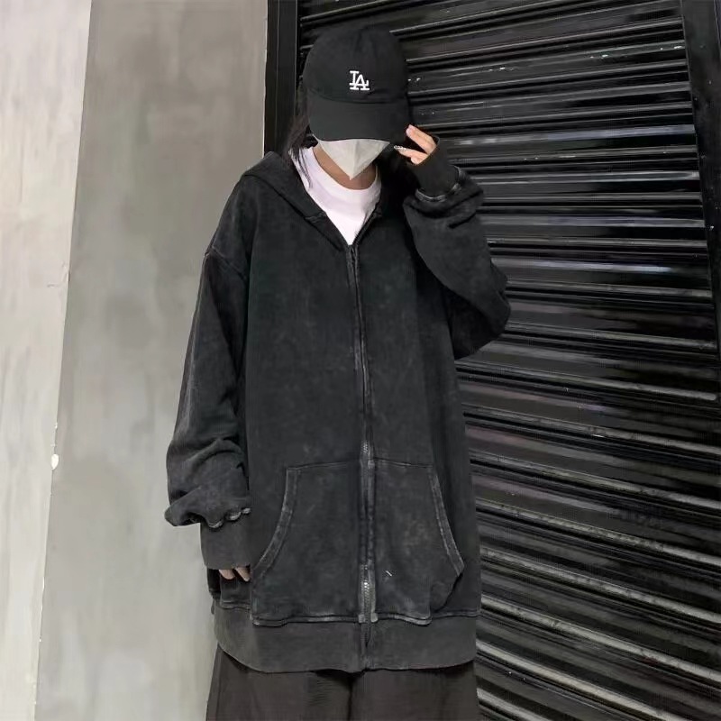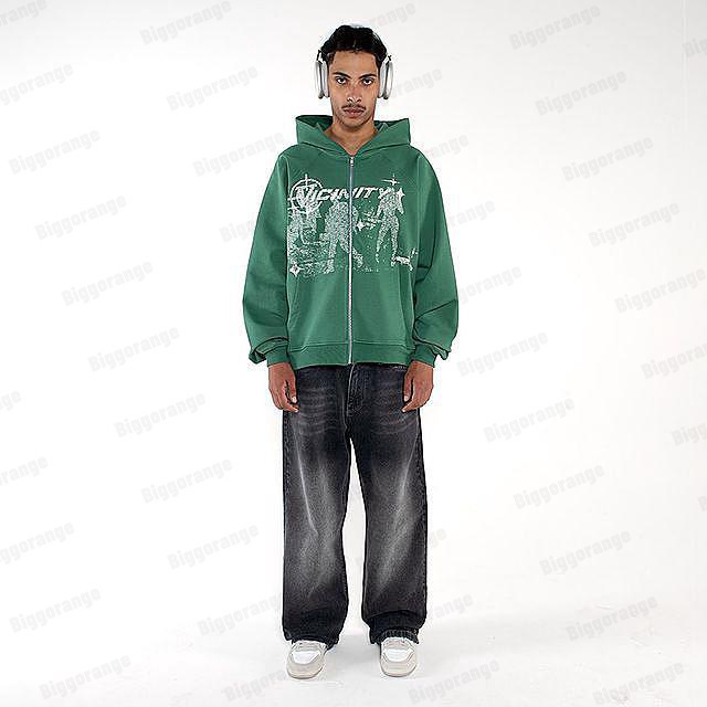 아메리칸 레트로 힙합 지퍼 스웨트 셔츠 남자의 독특한 거리 하라주쿠 애니메이션 프린트 후디 긴 소매 재킷스토어 가기