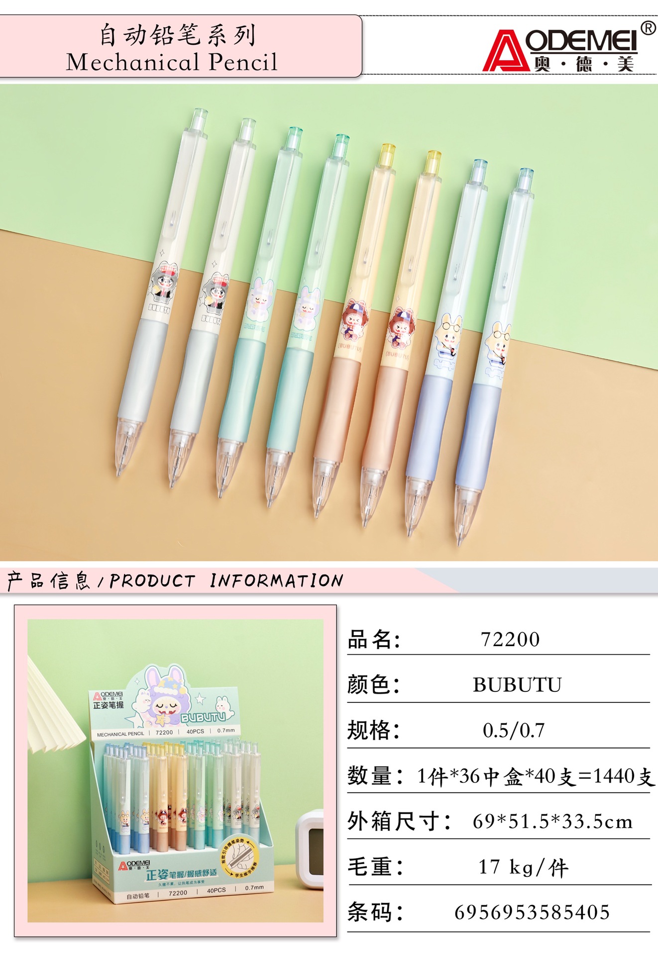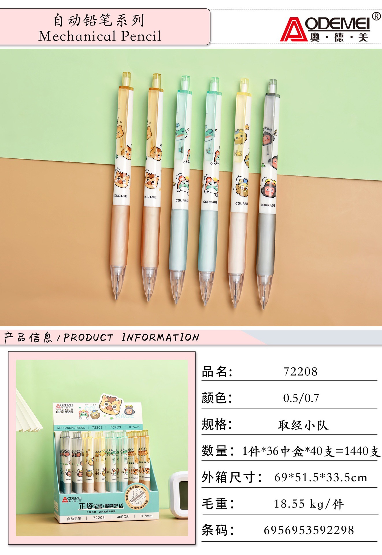 Odemei 기계식 연필 학생 특별 만화 프레스 연필 0.5 및 0.7mm 그림 활동 연필 도매