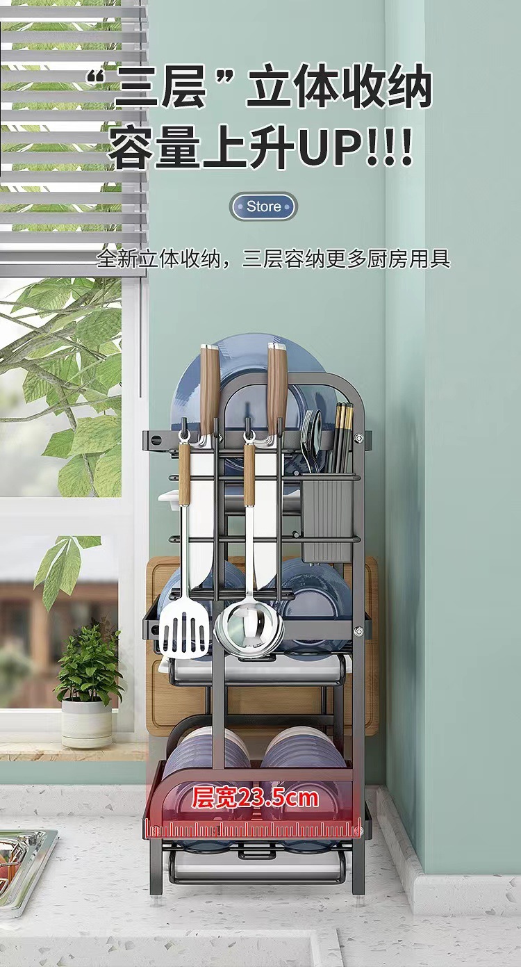 국경 간 주방 접시 랙 가정용 스토리지 랙 다기능 요리 및 접시 랙 보울 및 젓가락 저장 상자 스테인레스 스틸 스토리지 랙