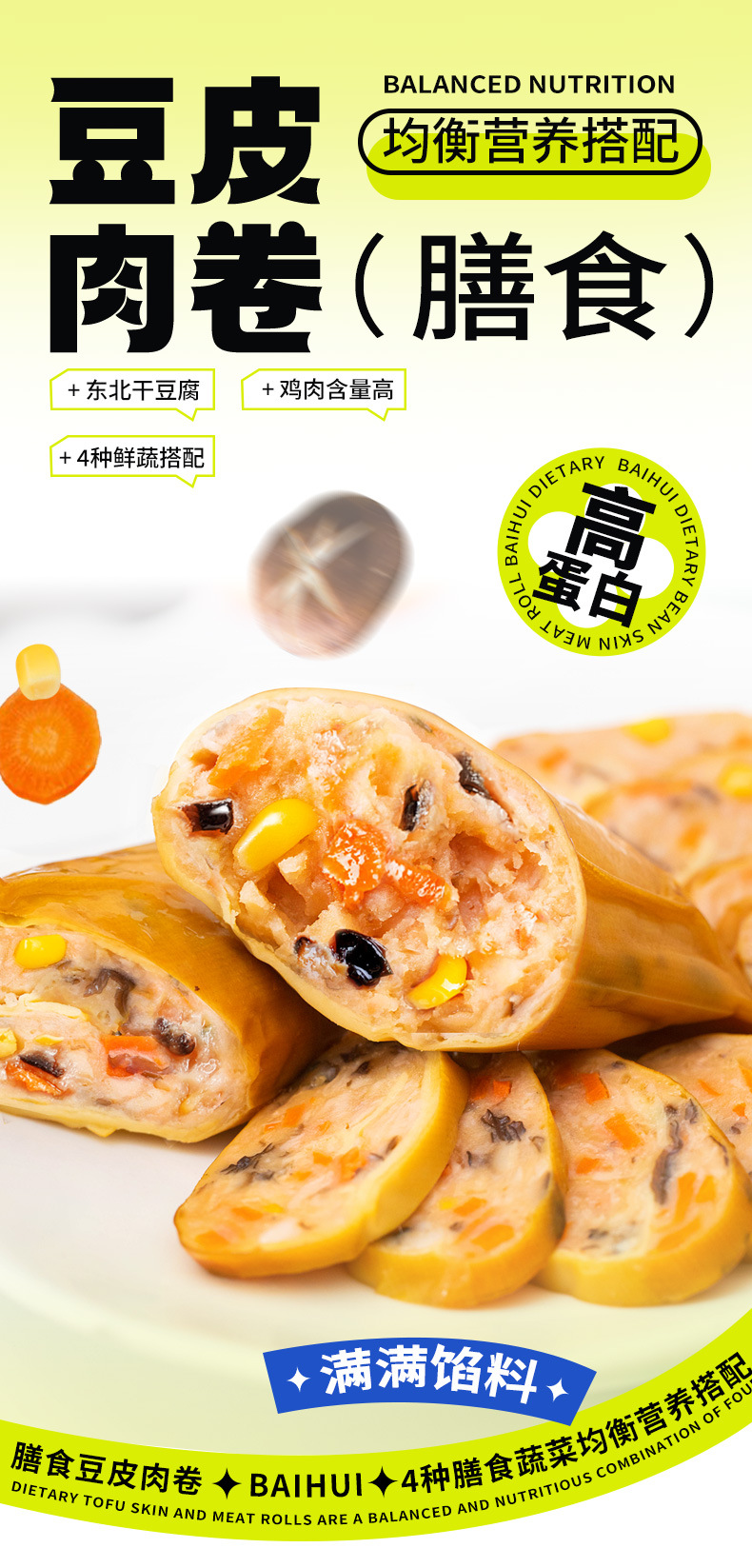 Bai Huipeng Sihui 다이어트 콩 피부 고기 롤 80g 콩 롤 간식 치킨 롤 영양 인스턴트 동북 전문스토어 가기