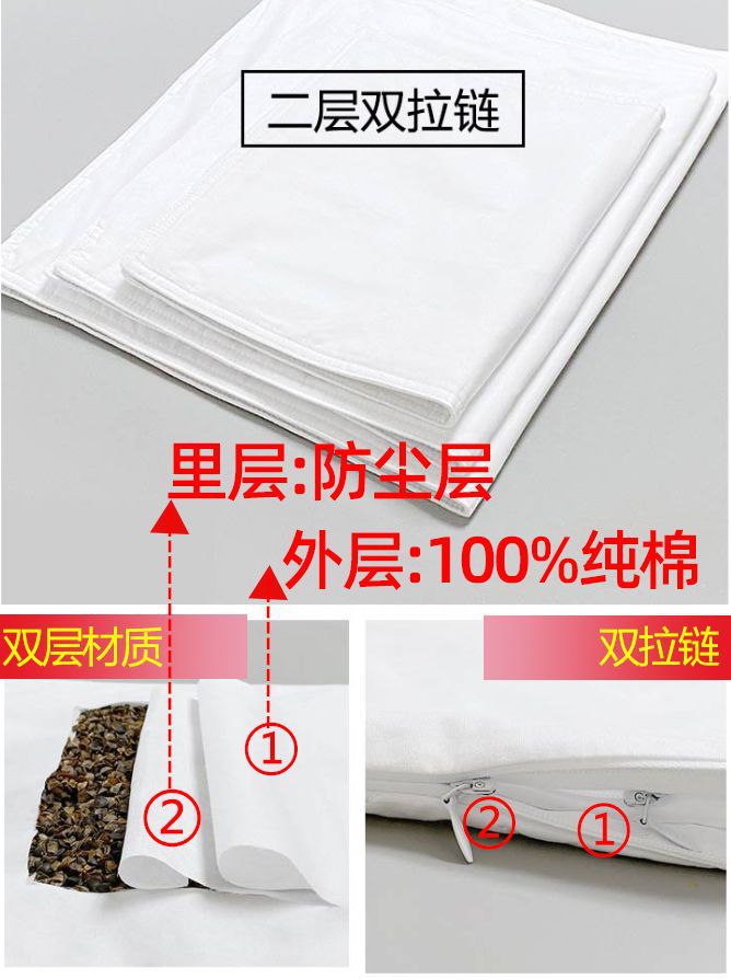베개 커버 내부 베개 커버 더블 지퍼 메밀 가죽 퓨어 코튼 더블 레이어 페르세우스 내부 베개 커버 어린이 베개 Lanzhi스토어 가기