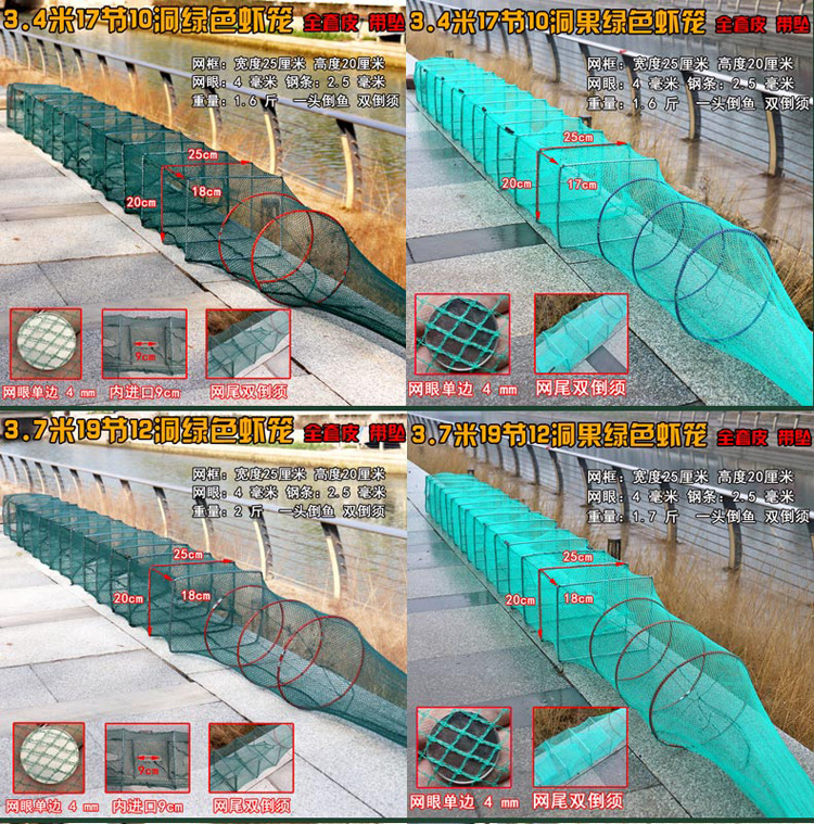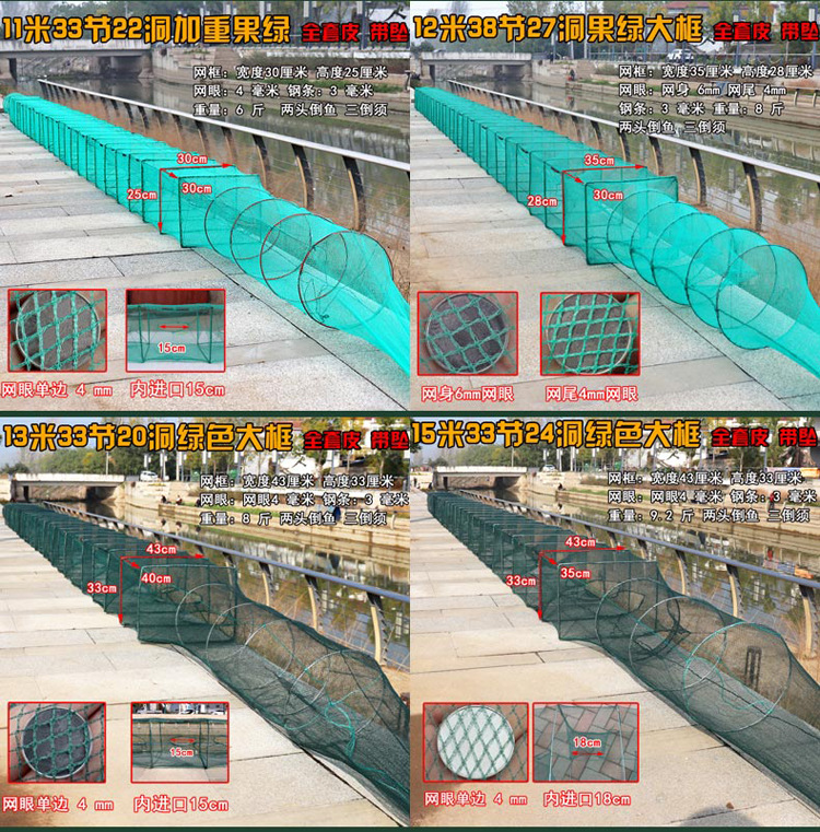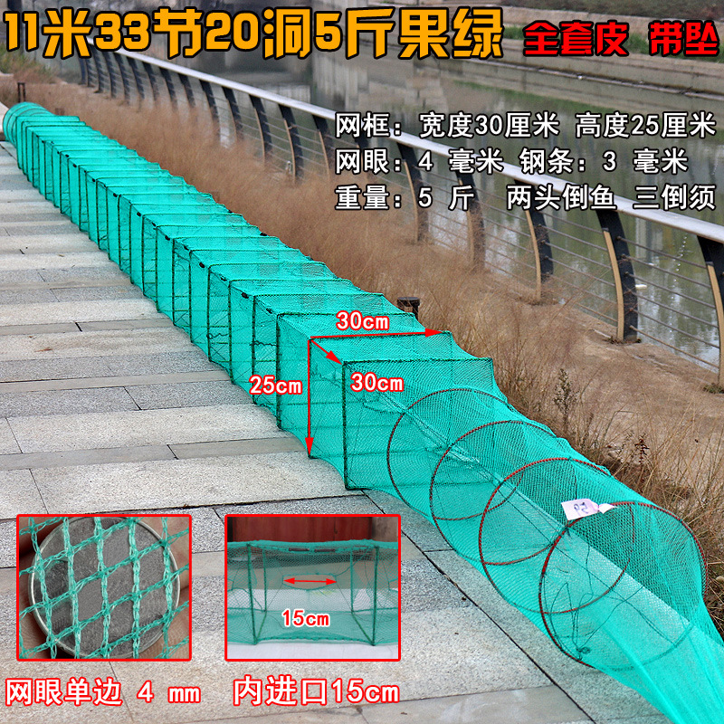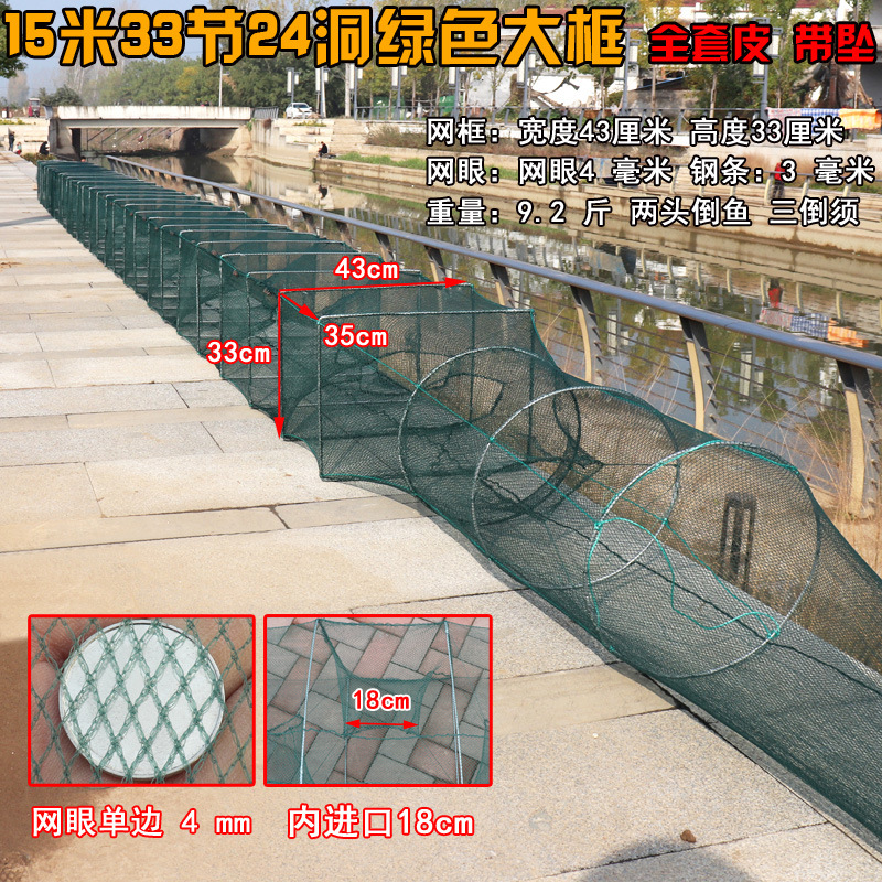 • 10.33m 섹션 26홀(한 끝이 굵은 물고기를 붓는 것) 녹색 그물