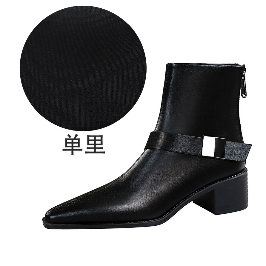 578-1 레트로 스타일 짧은 배럴 나이츠 부츠 두꺼운 힐 미드 힐 벨트 버클 메탈 장식 포인팅 겨울 여성용 부츠 발목 부츠스토어 가기
