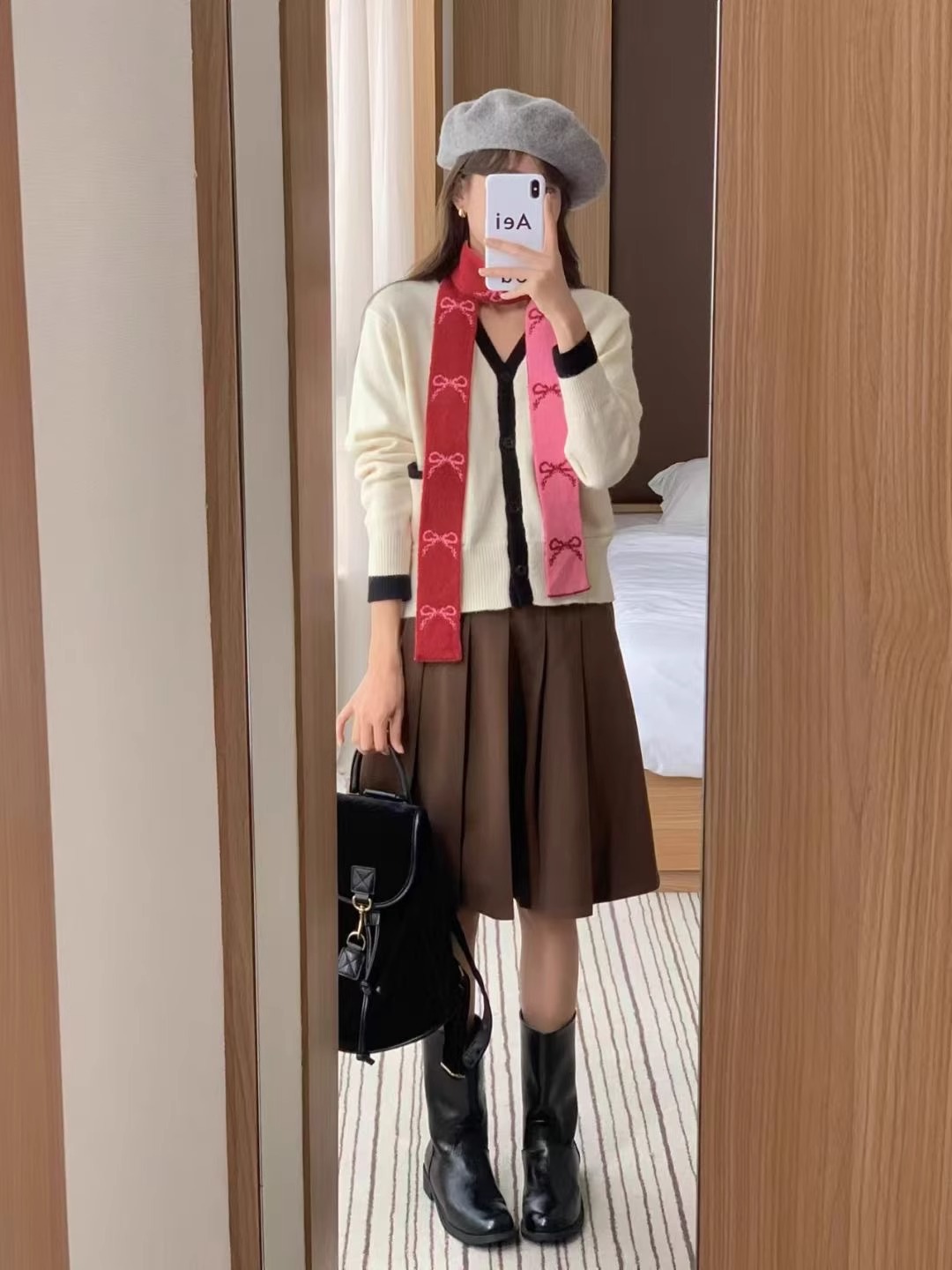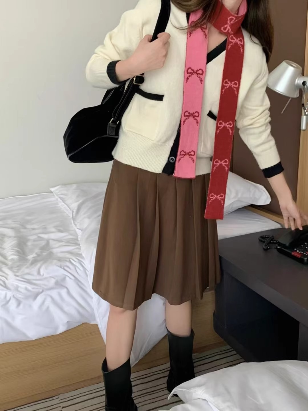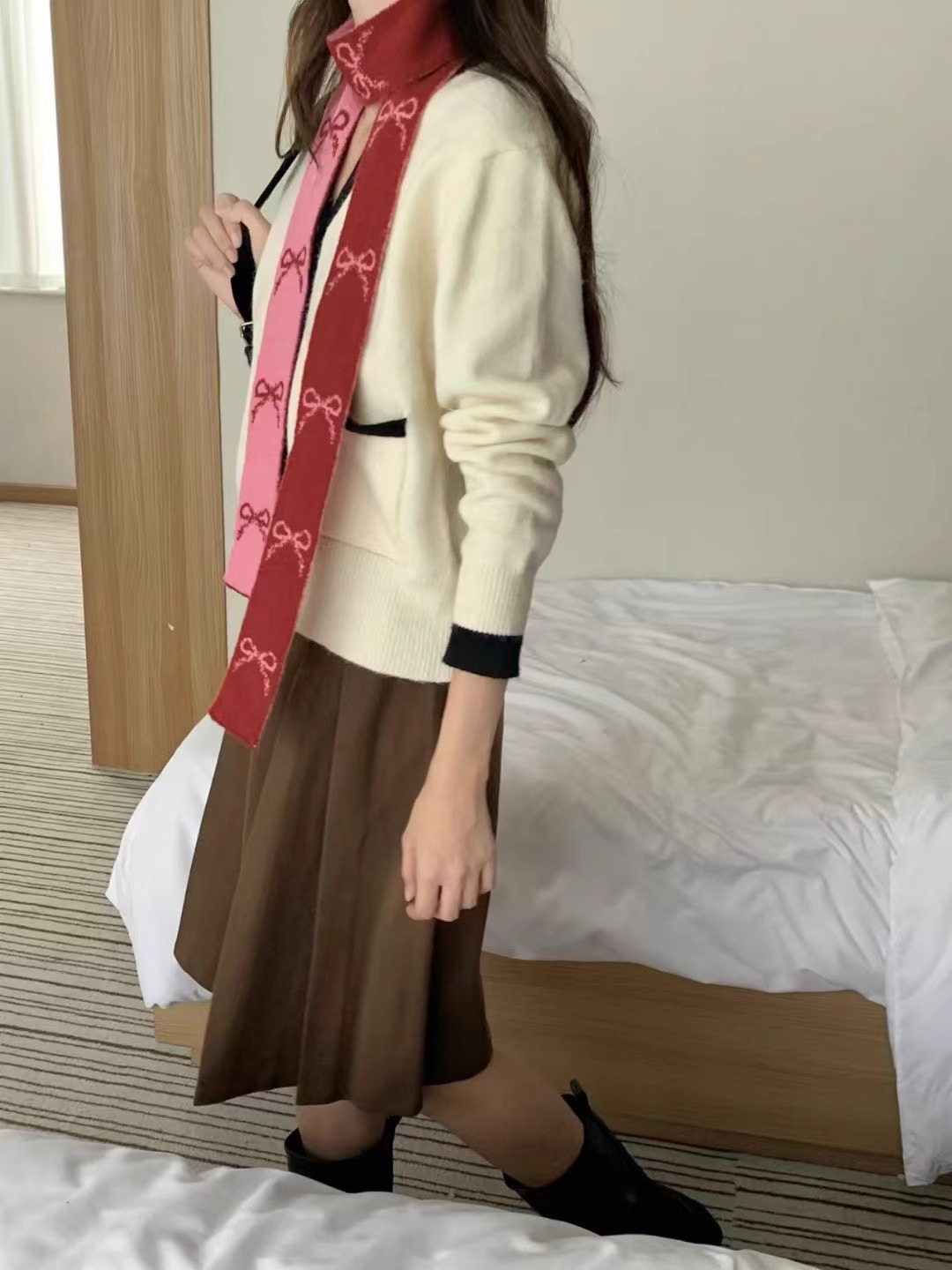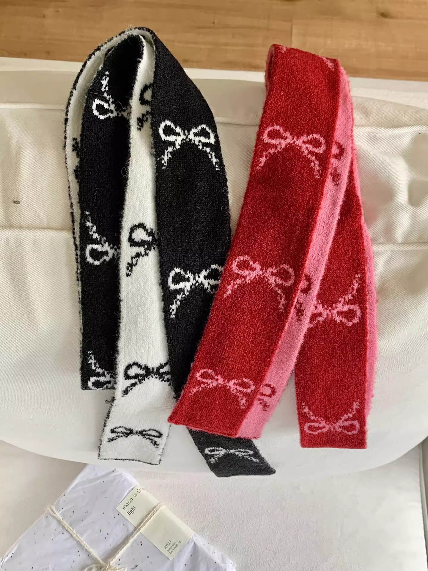 한국 양면 Bowknot 작은 스카프 긴 가을과 겨울 새로운 스타일의 따뜻한 목 여성을위한 매일 장식스토어 가기