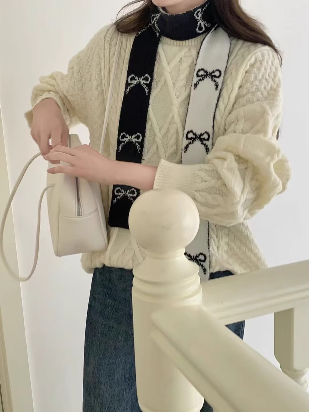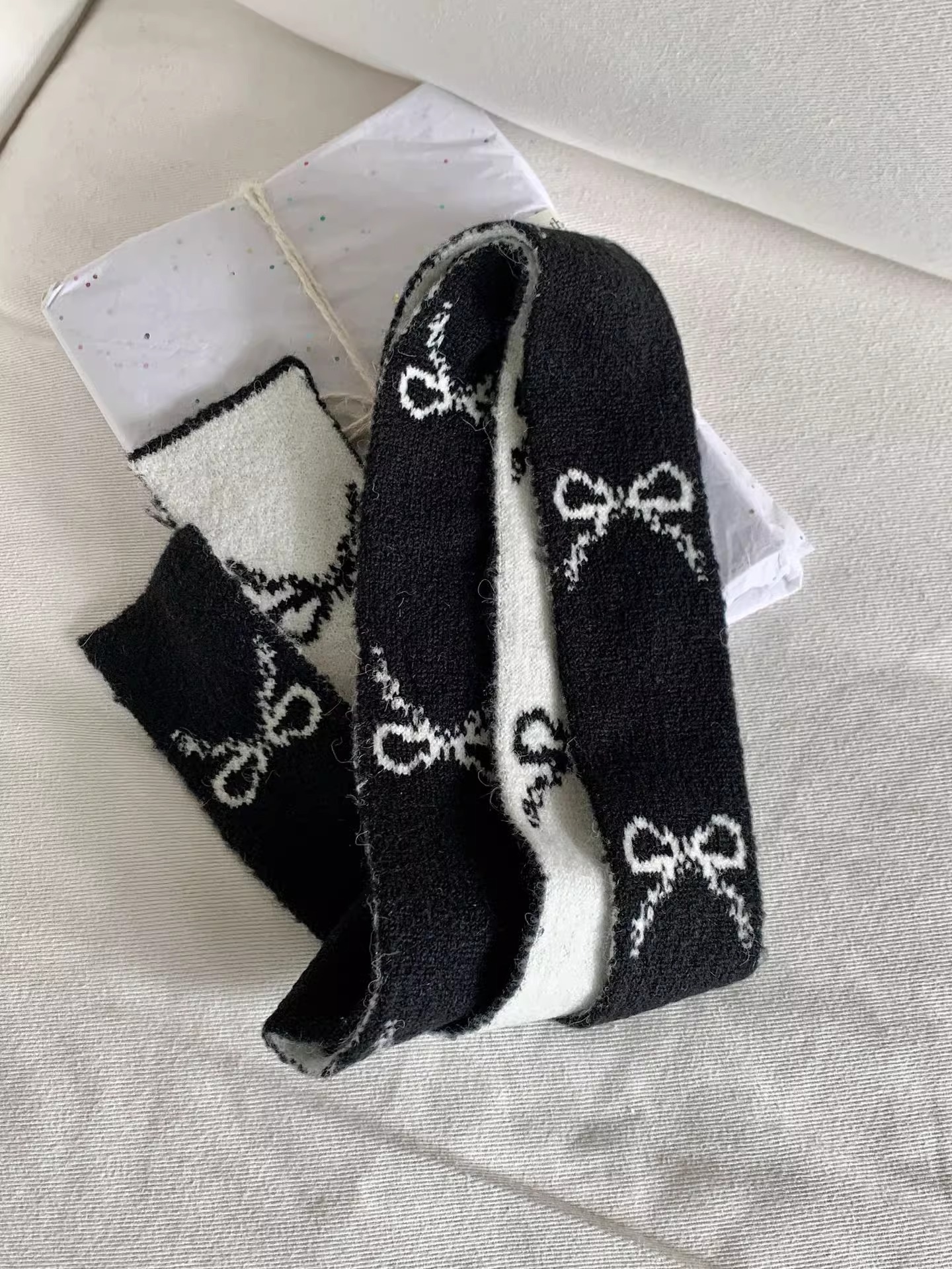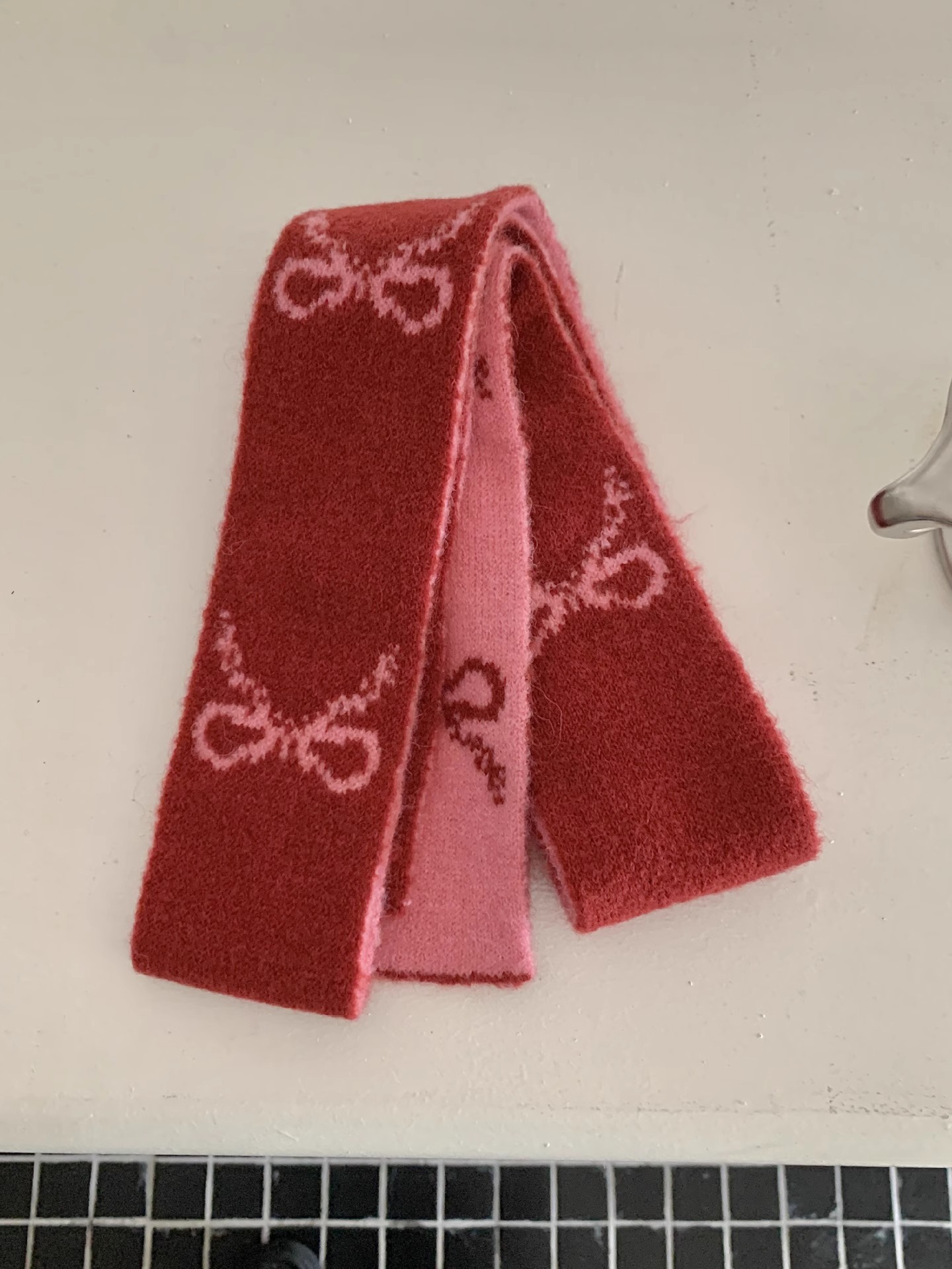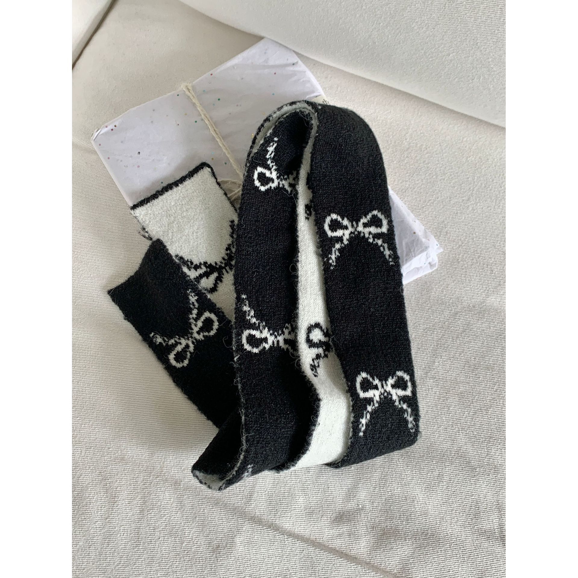 한국 양면 Bowknot 작은 스카프 긴 가을과 겨울 새로운 스타일의 따뜻한 목 여성을위한 매일 장식