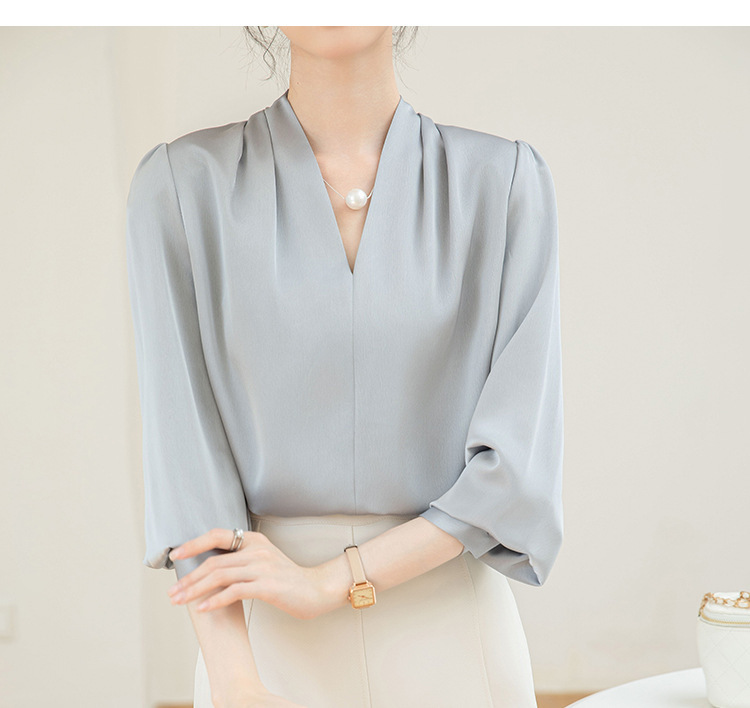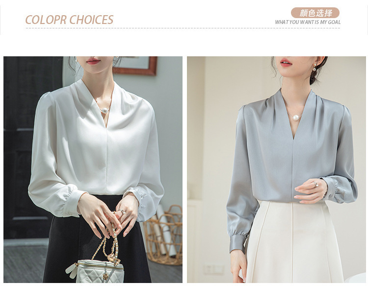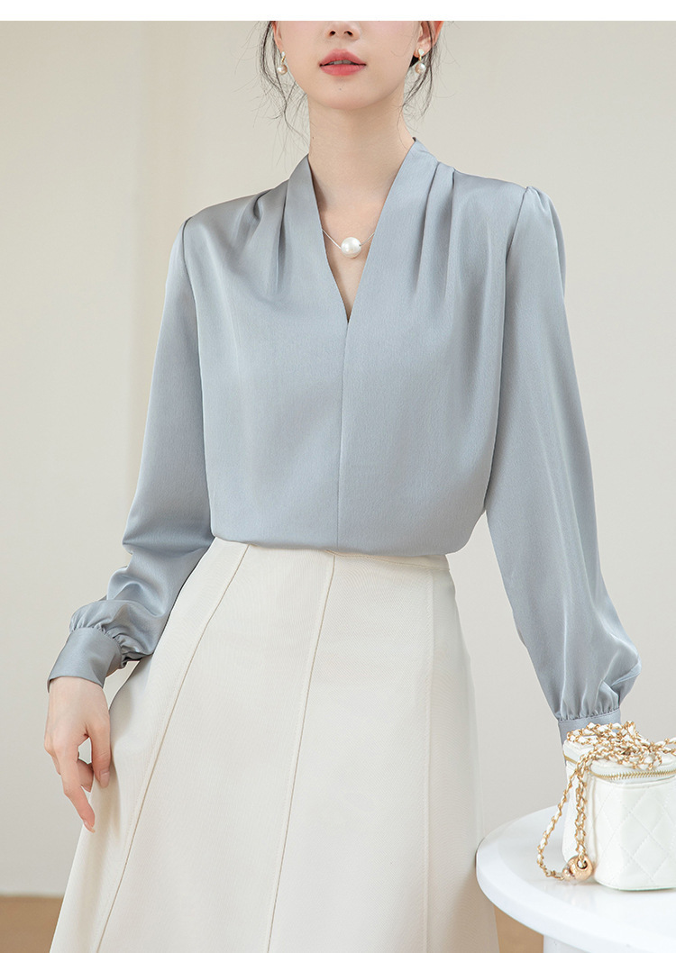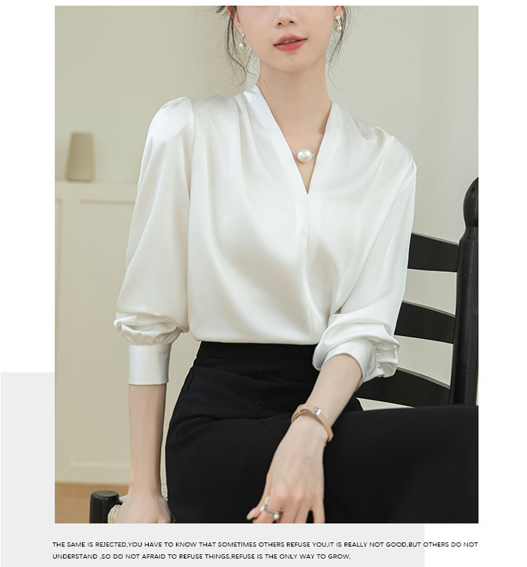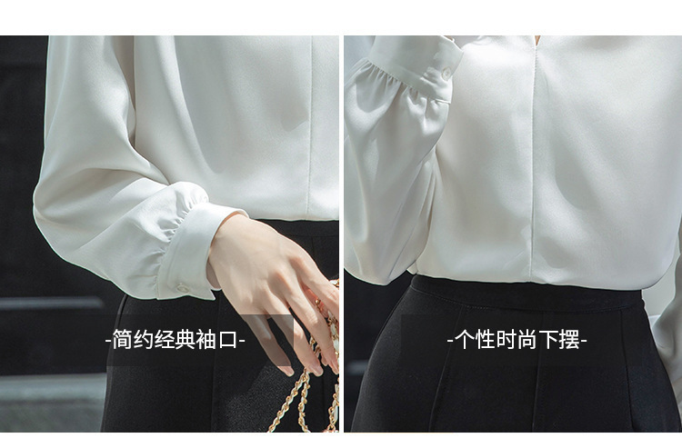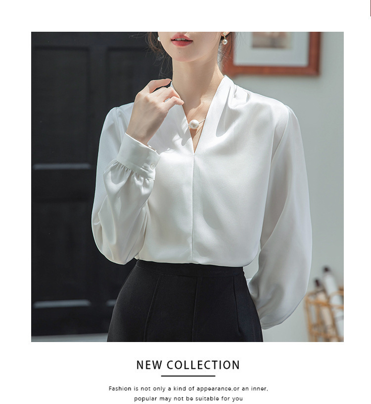 하이 엔드 V 넥 진주 체인 셔츠 여성의 이른 가을 새로운 프랑스 스타일 라이트 성숙한 스타일 통근 전문 셔츠 세련된 서양 스타일스토어 가기