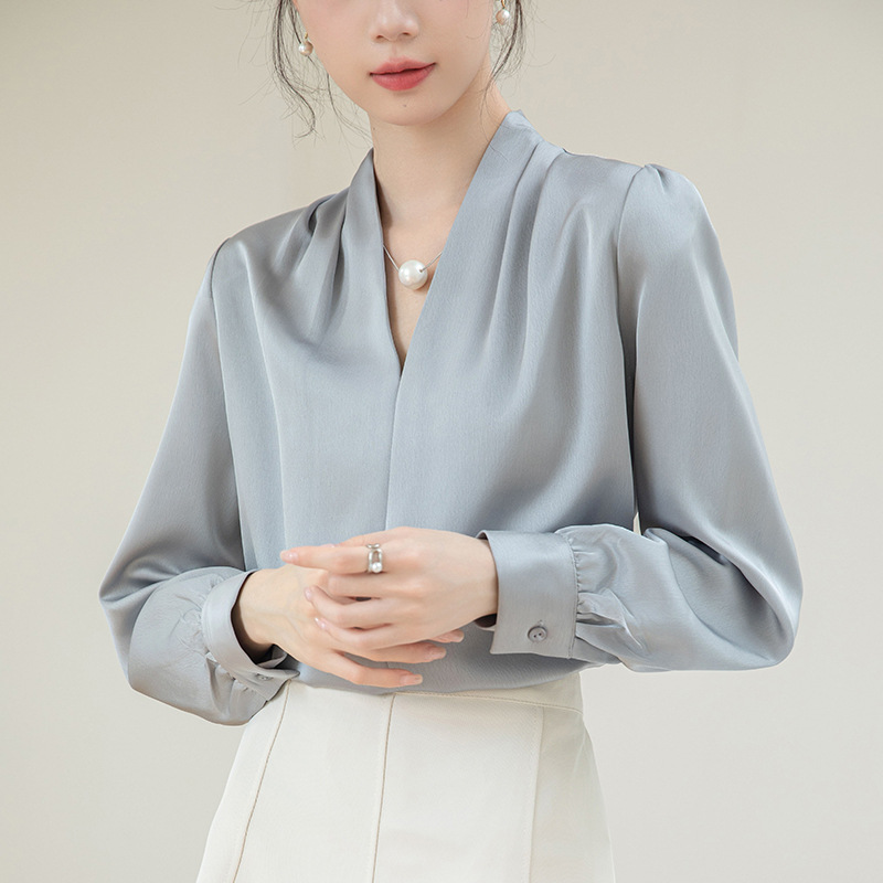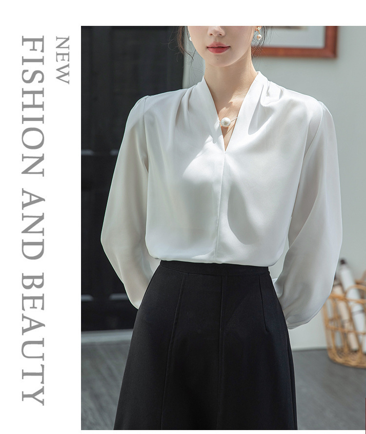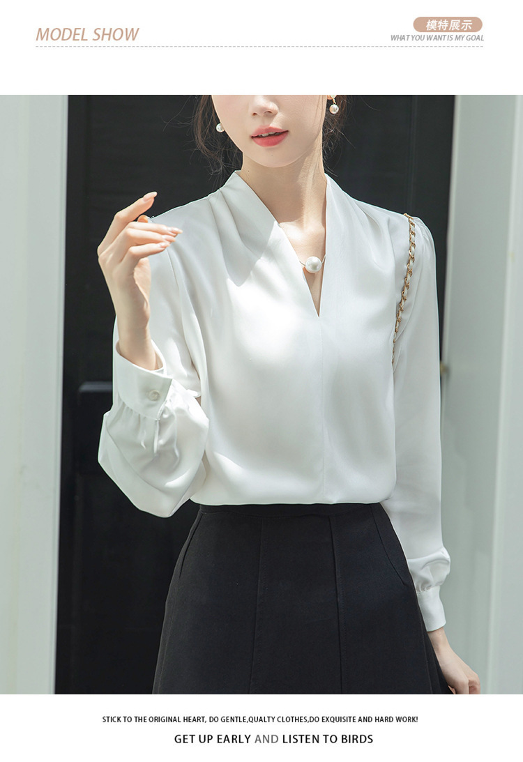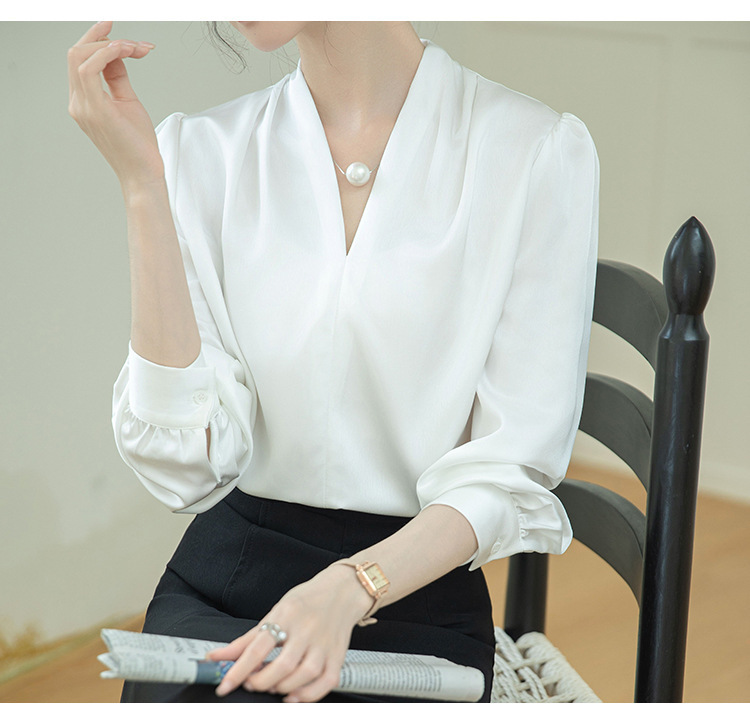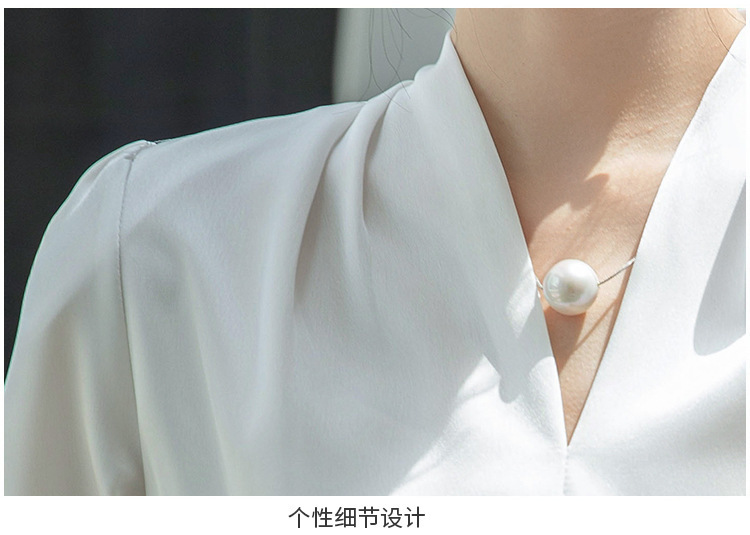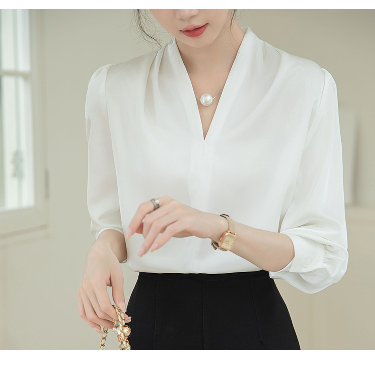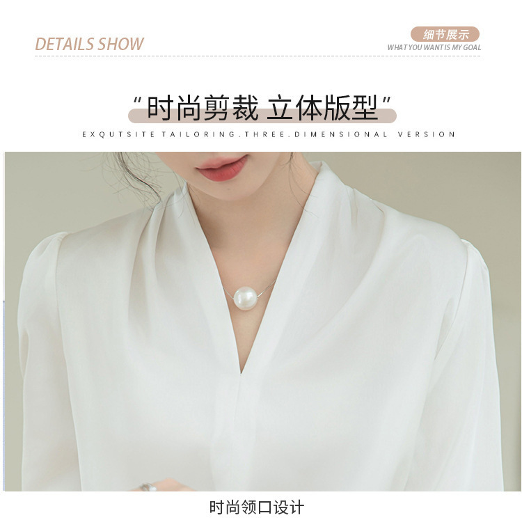 하이 엔드 V 넥 진주 체인 셔츠 여성의 이른 가을 새로운 프랑스 스타일 라이트 성숙한 스타일 통근 전문 셔츠 세련된 서양 스타일