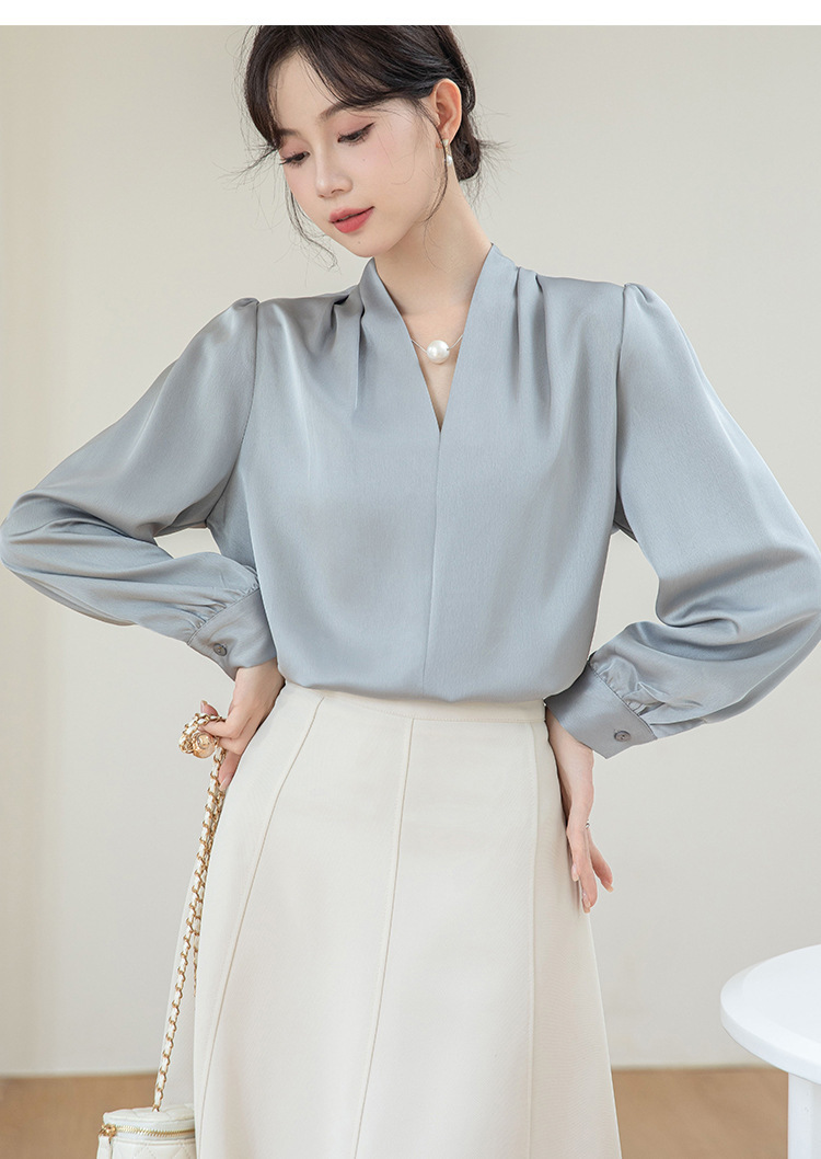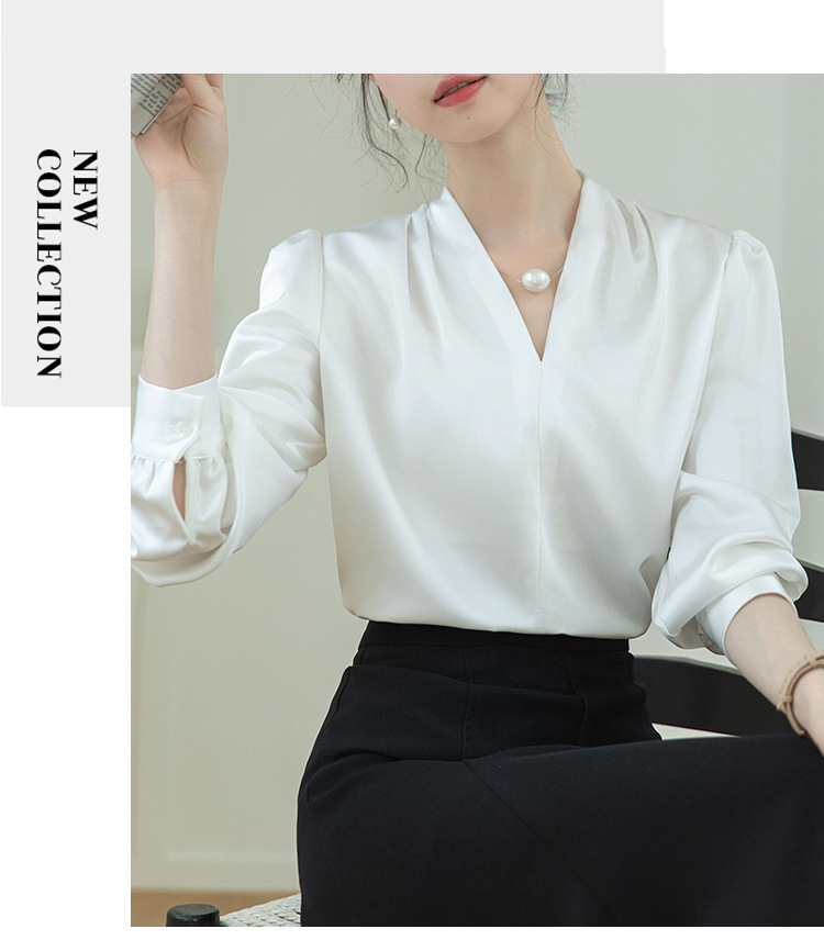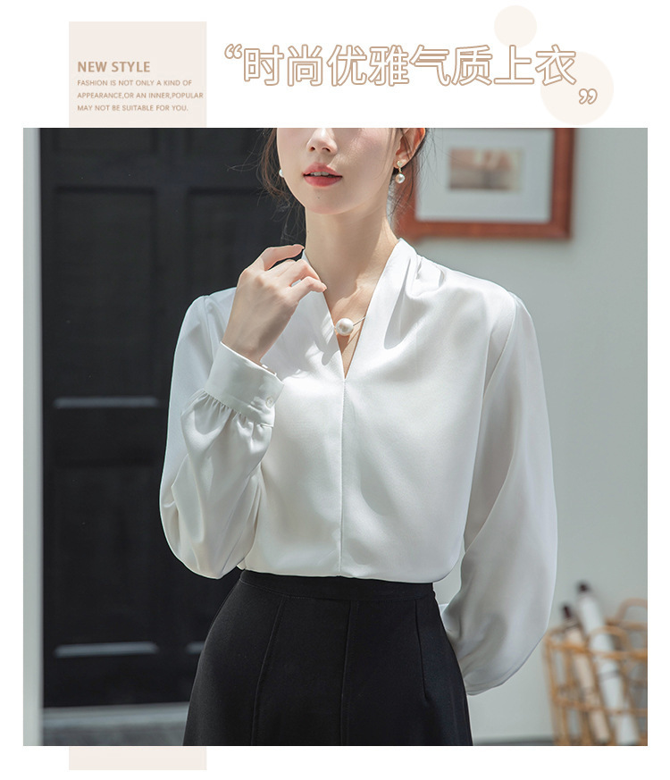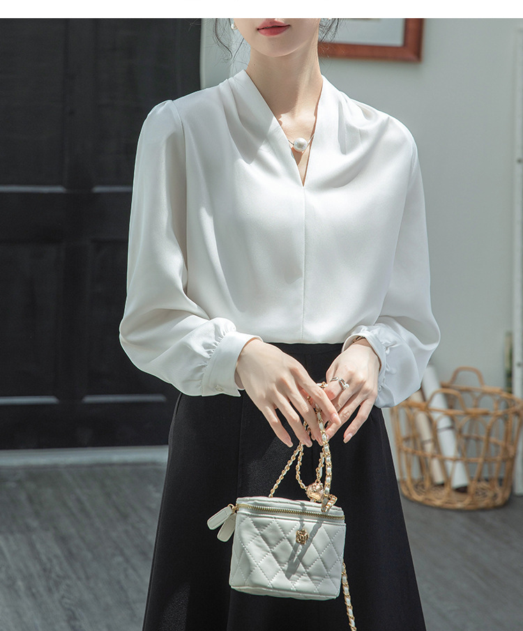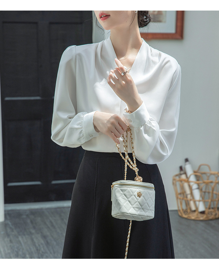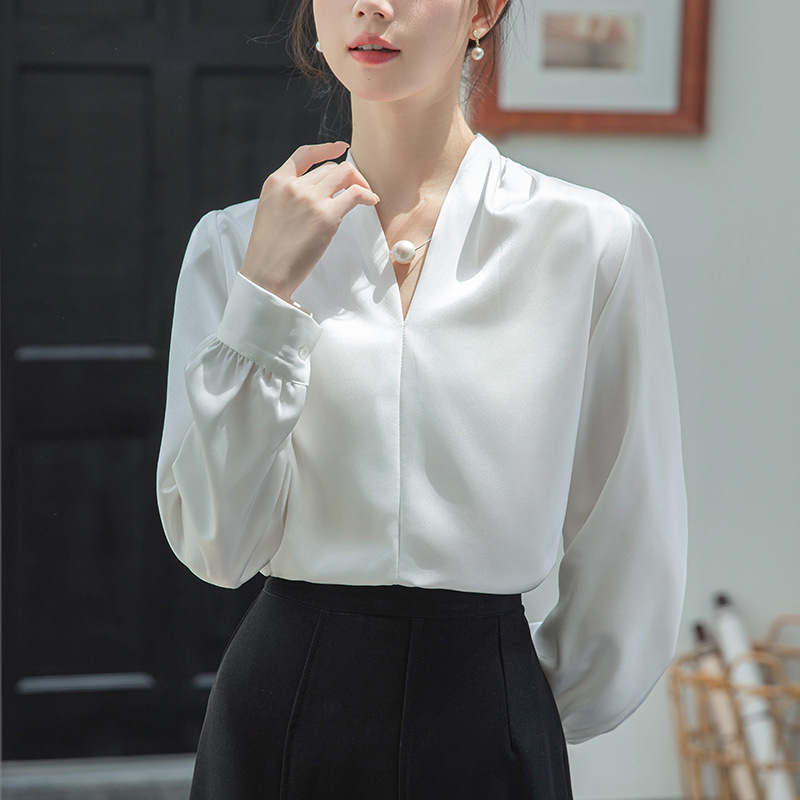 하이 엔드 V 넥 진주 체인 셔츠 여성의 이른 가을 새로운 프랑스 스타일 라이트 성숙한 스타일 통근 전문 셔츠 세련된 서양 스타일