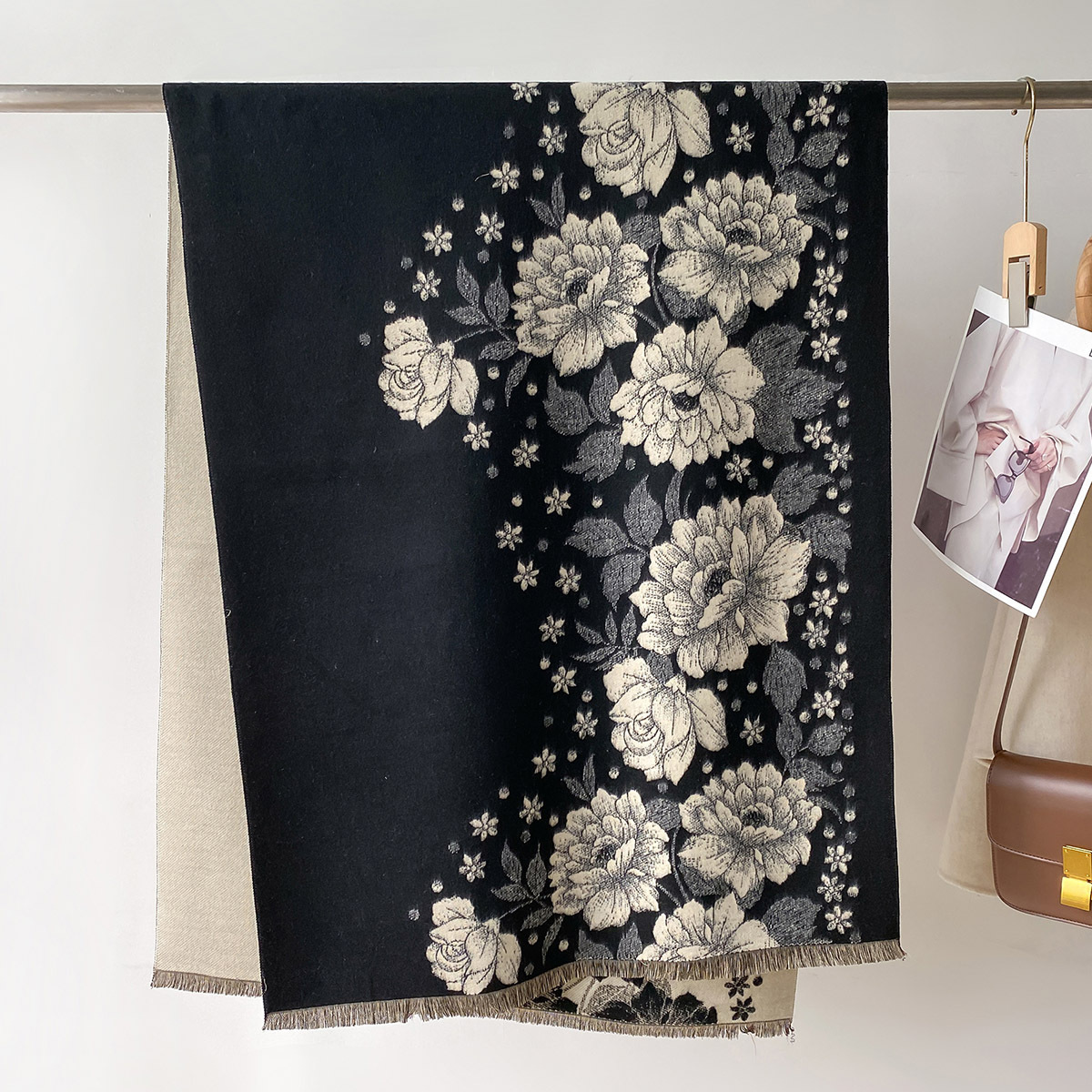 新款复古印花花朵气质简约百搭国风围脖披肩斗篷保暖提花女高端潮