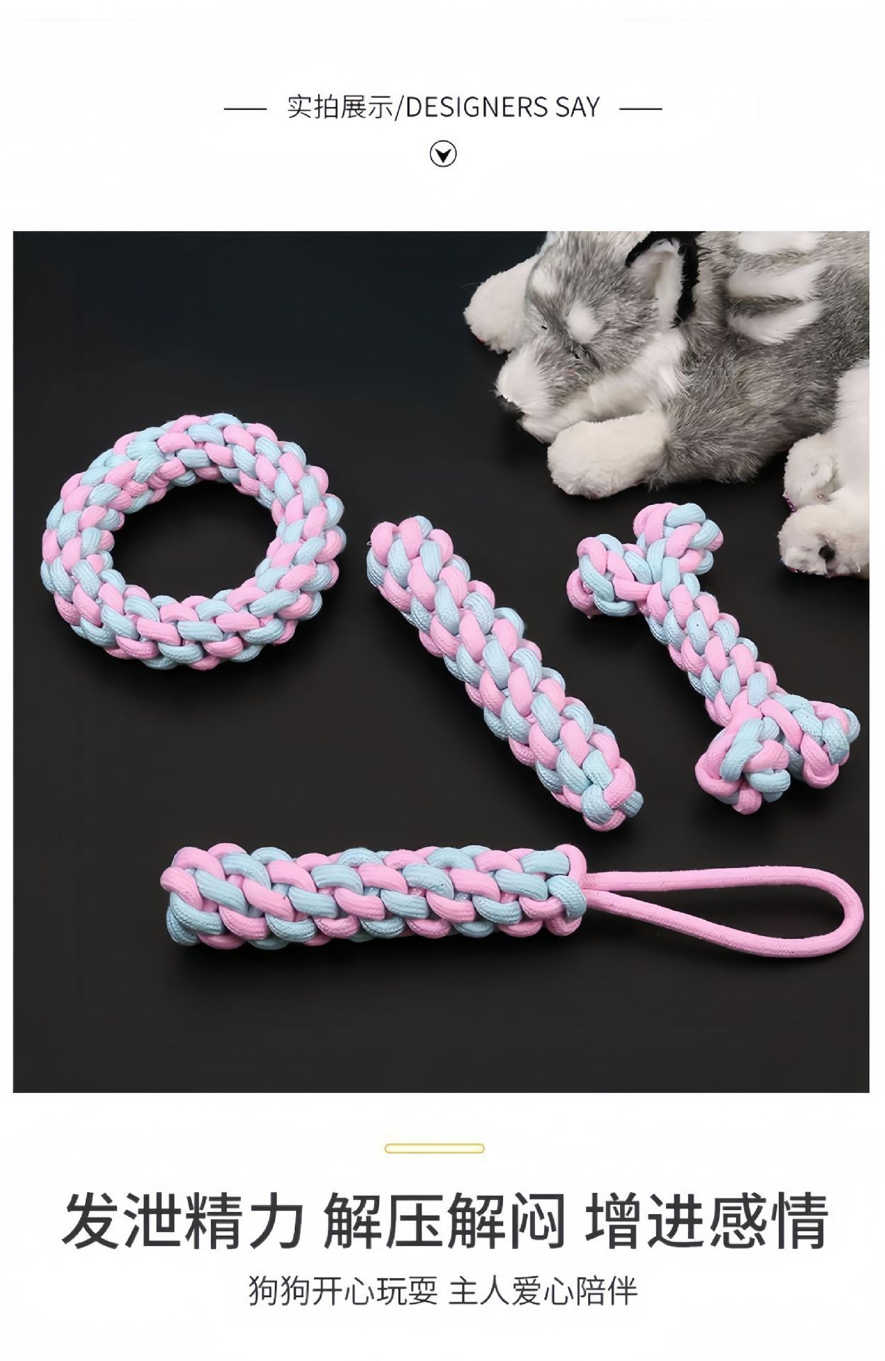 국경 간 재고 핑크 블루 애완 동물 코튼 로프 강아지 장난감 조합 물린 저항 Molar 고양이 개 장난감 애완 동물 장난감 공장스토어 가기