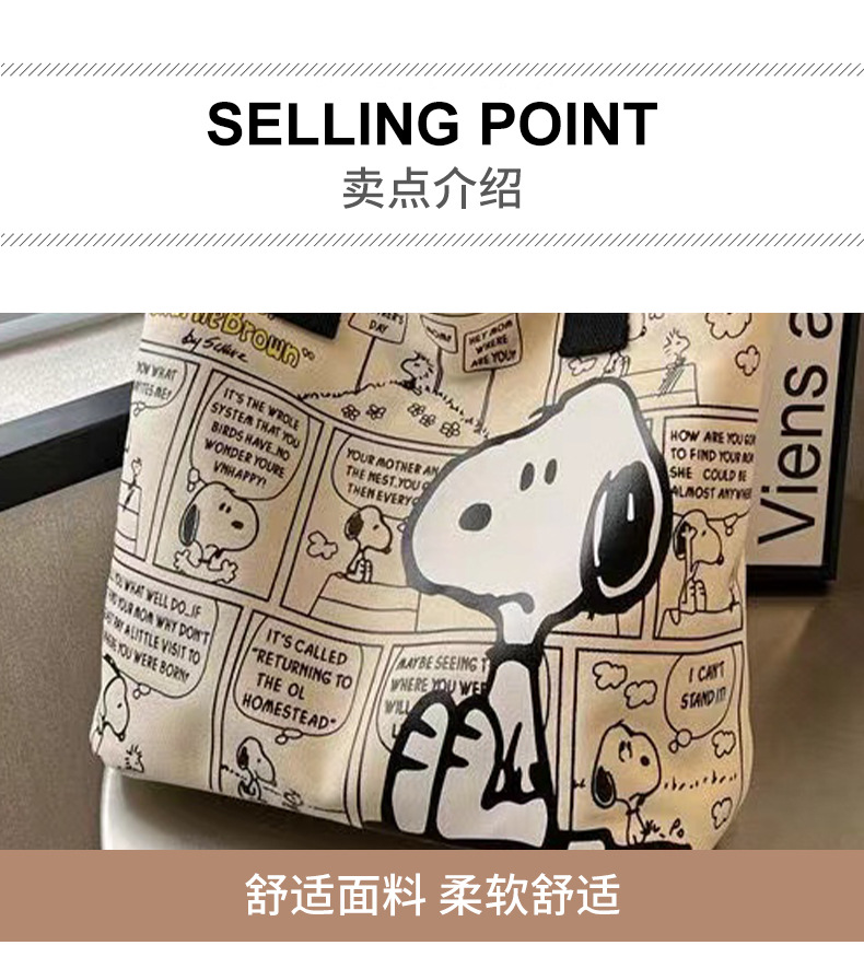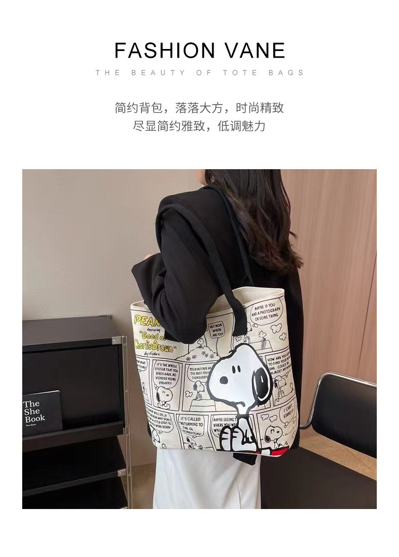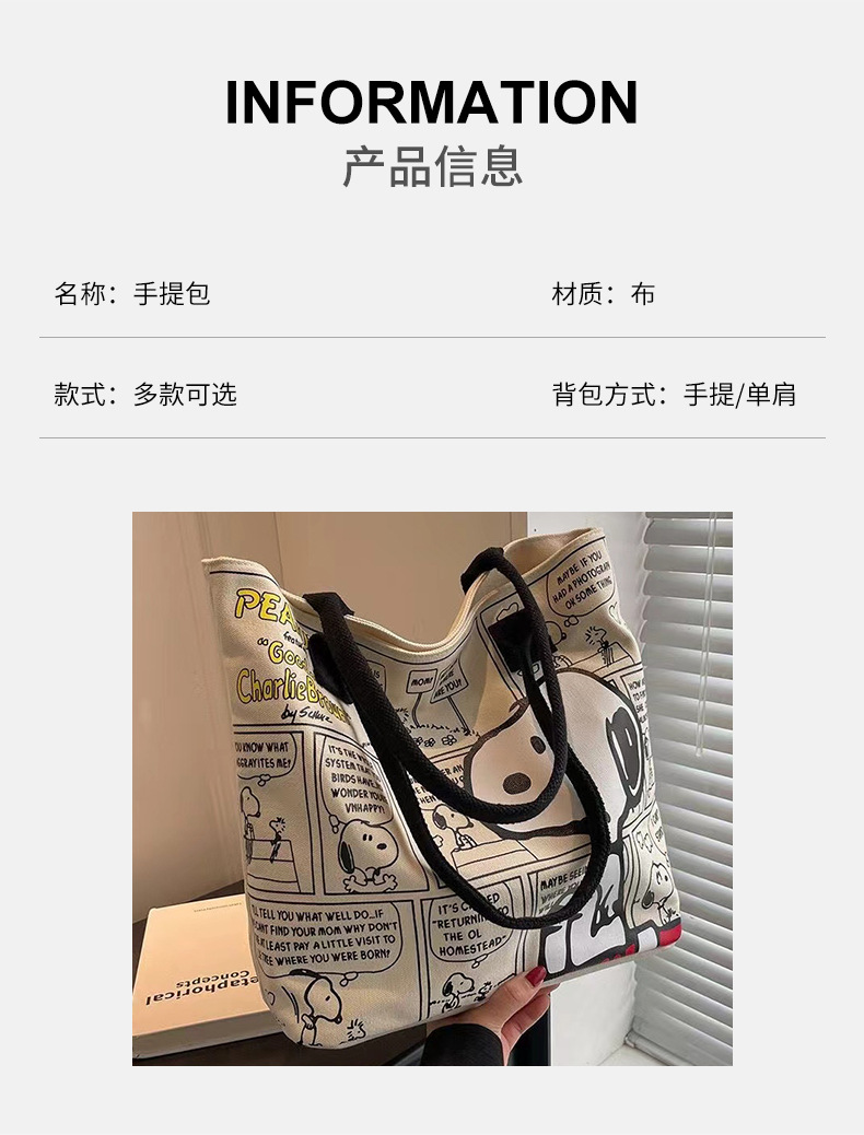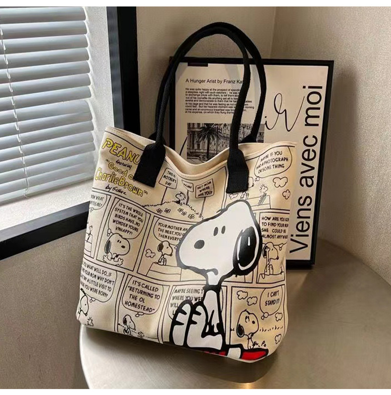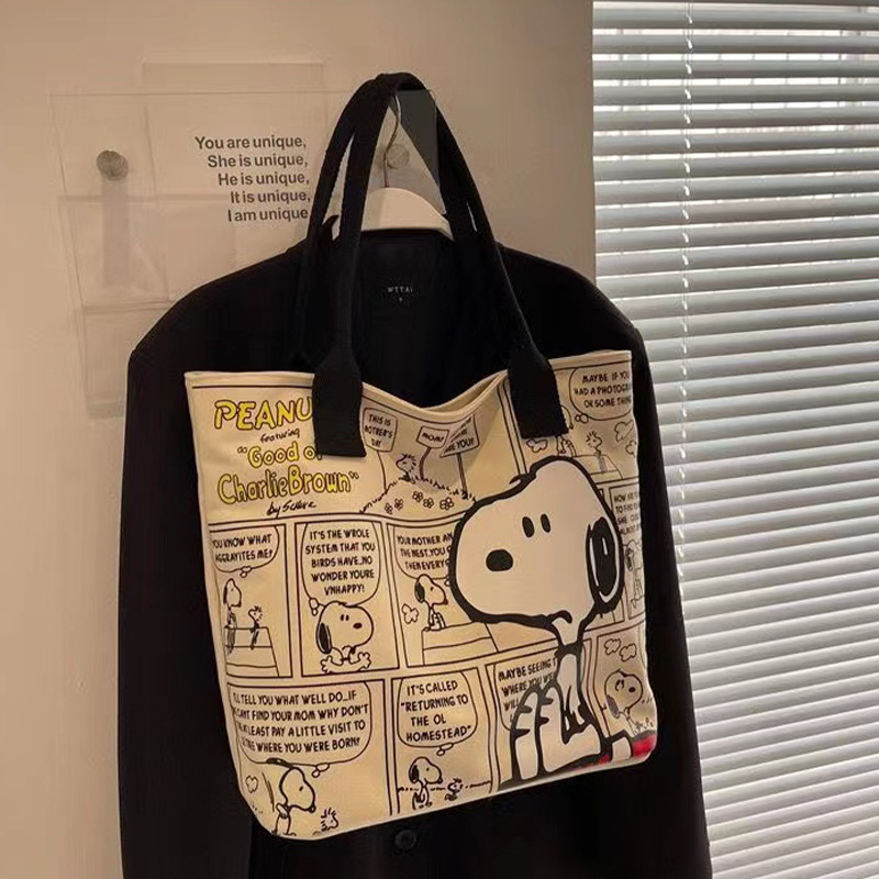 새로운 유행 만화 스누피 어깨 가방 학생 대용량 핸드백 패션 귀여운 가방 엄마 토트 가방 여성 가방스토어 가기