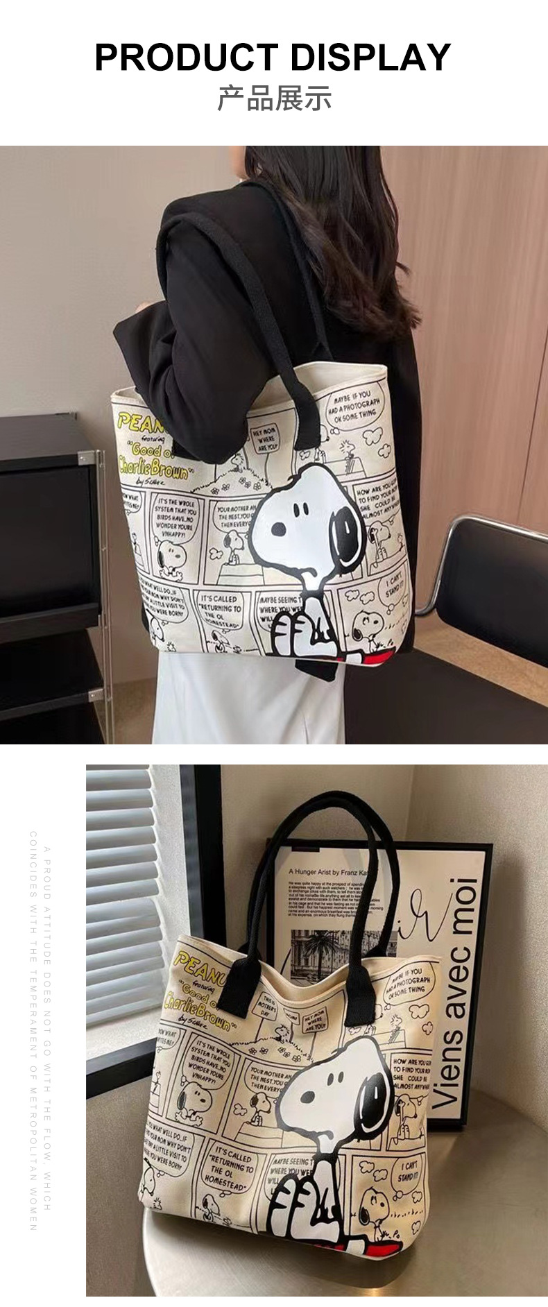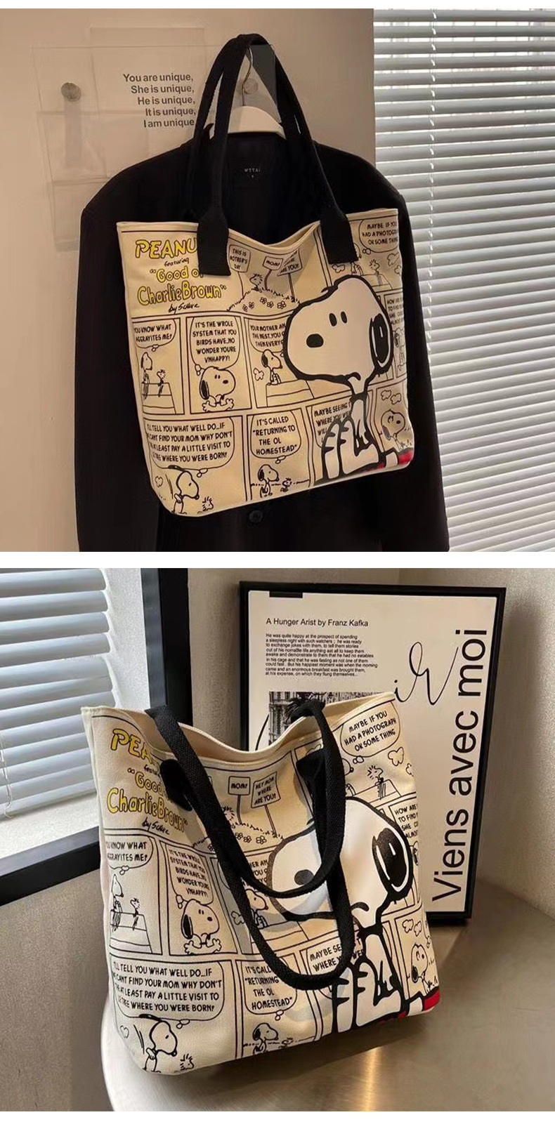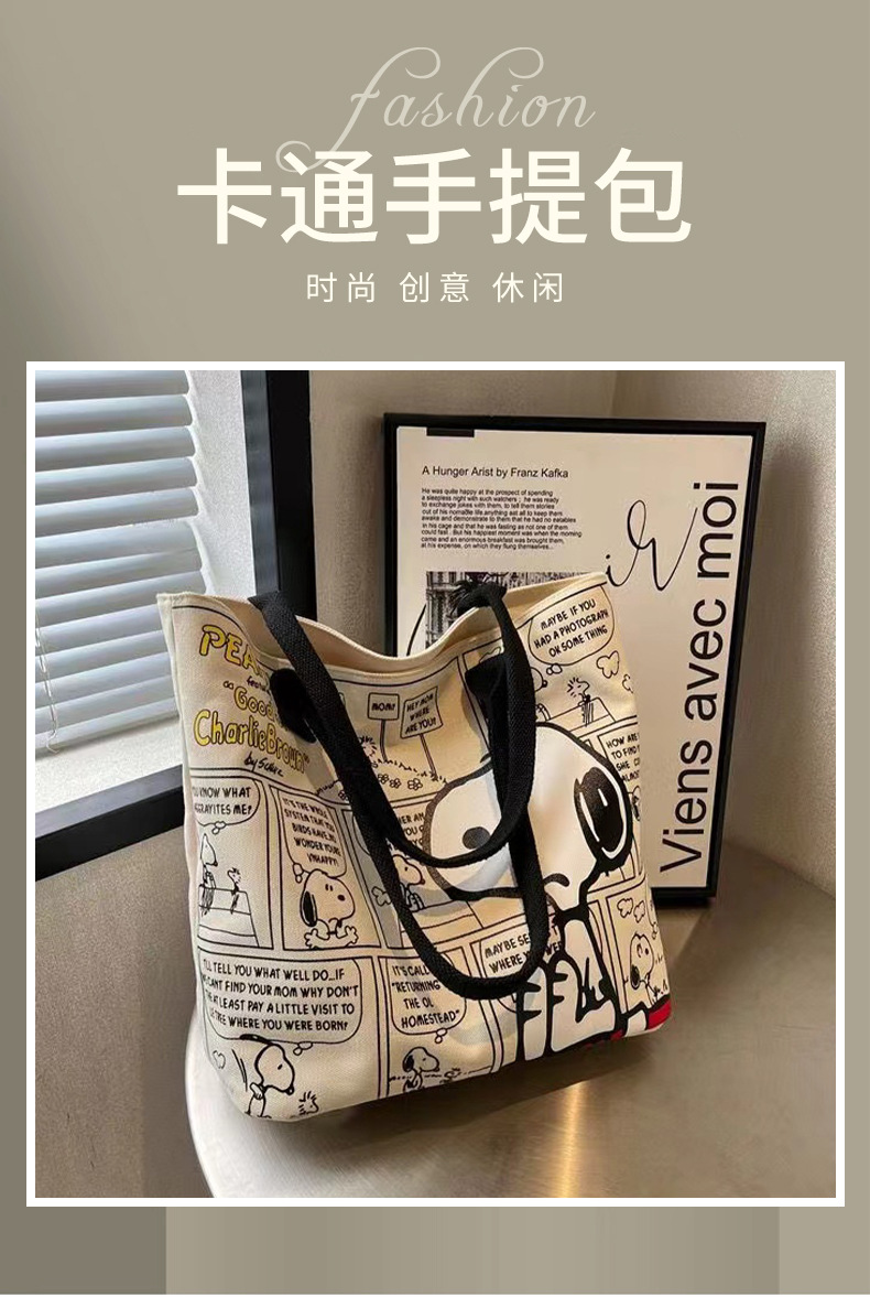 새로운 유행 만화 스누피 어깨 가방 학생 대용량 핸드백 패션 귀여운 가방 엄마 토트 가방 여성 가방스토어 가기