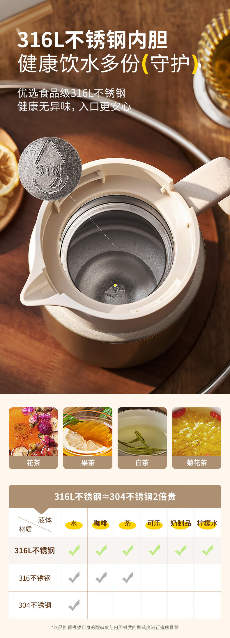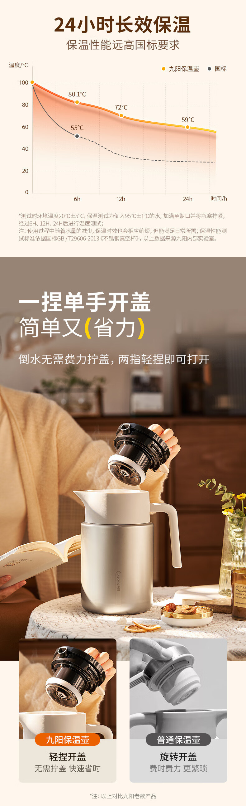 Jiuyang 보온병 가정용 대용량 주전자 스테인레스 스틸 진공 보온병 주전자 WR580스토어 가기
