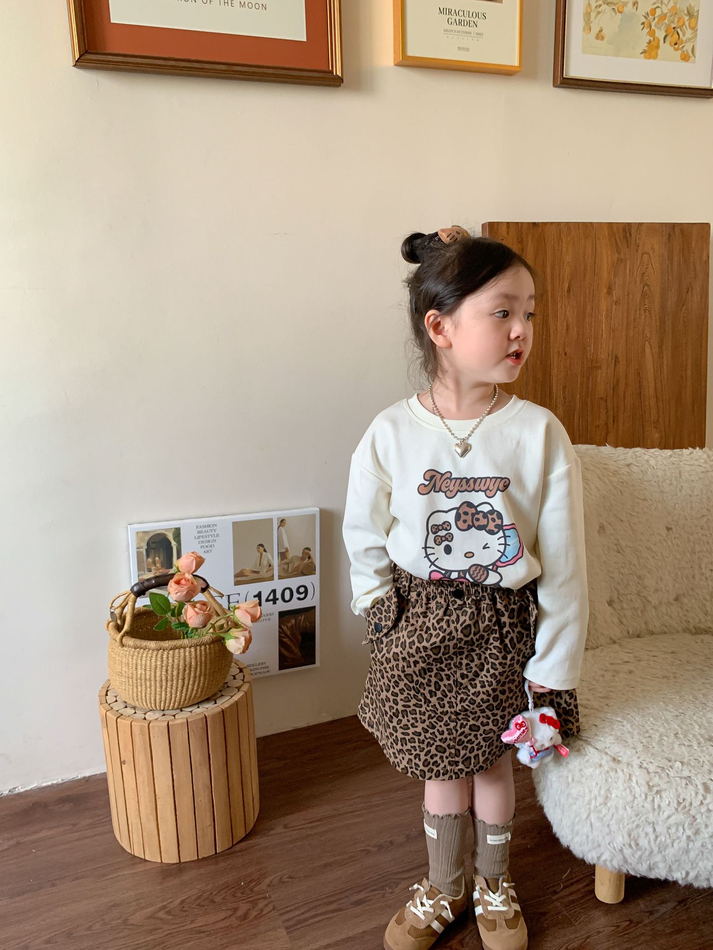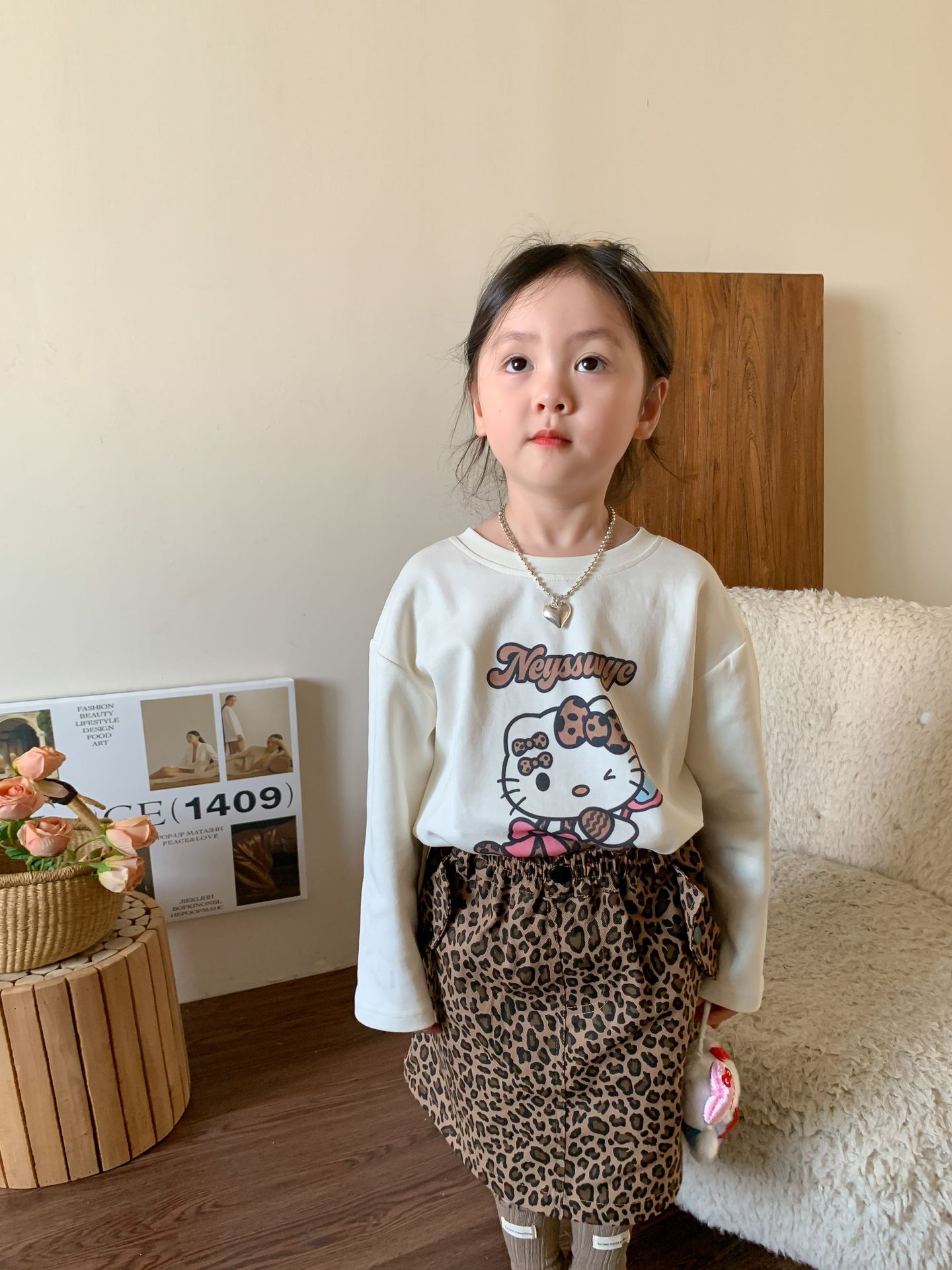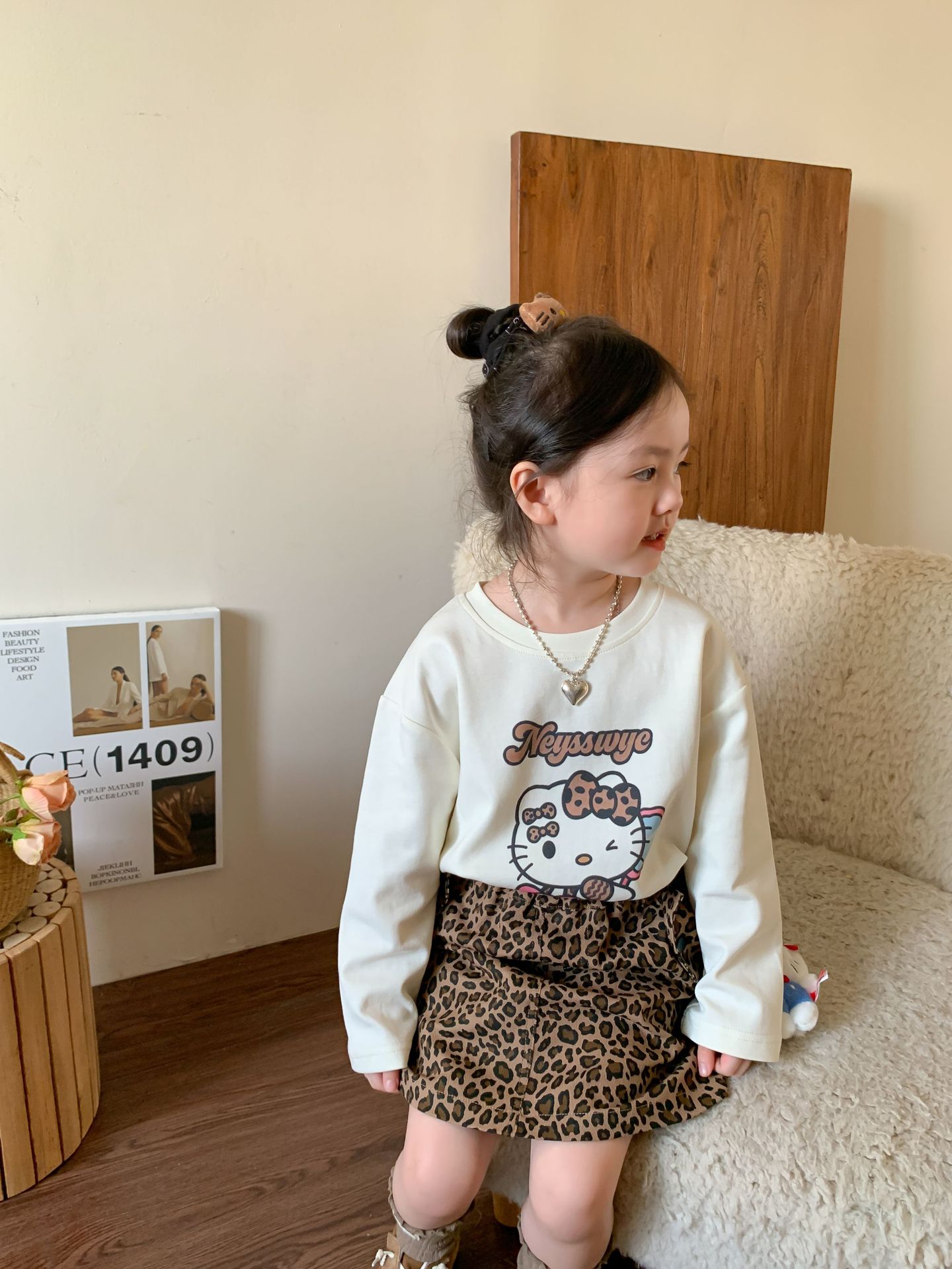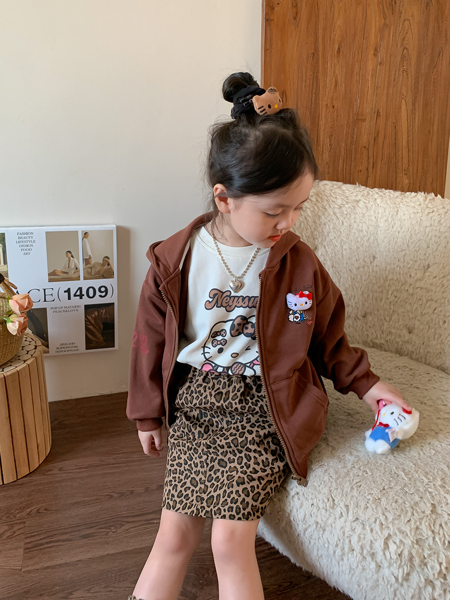 • 만화 고양이 표범 무늬 티셔츠