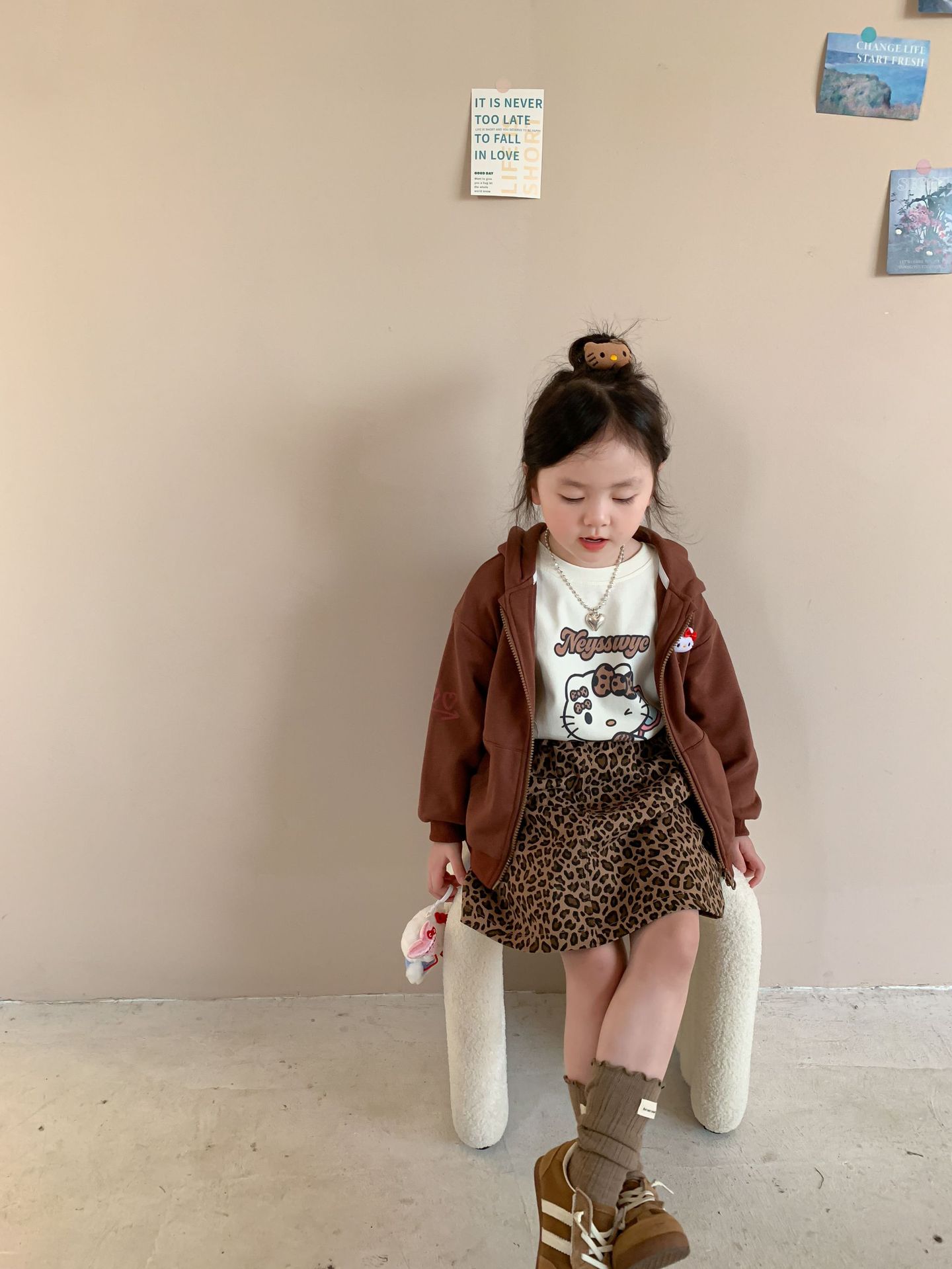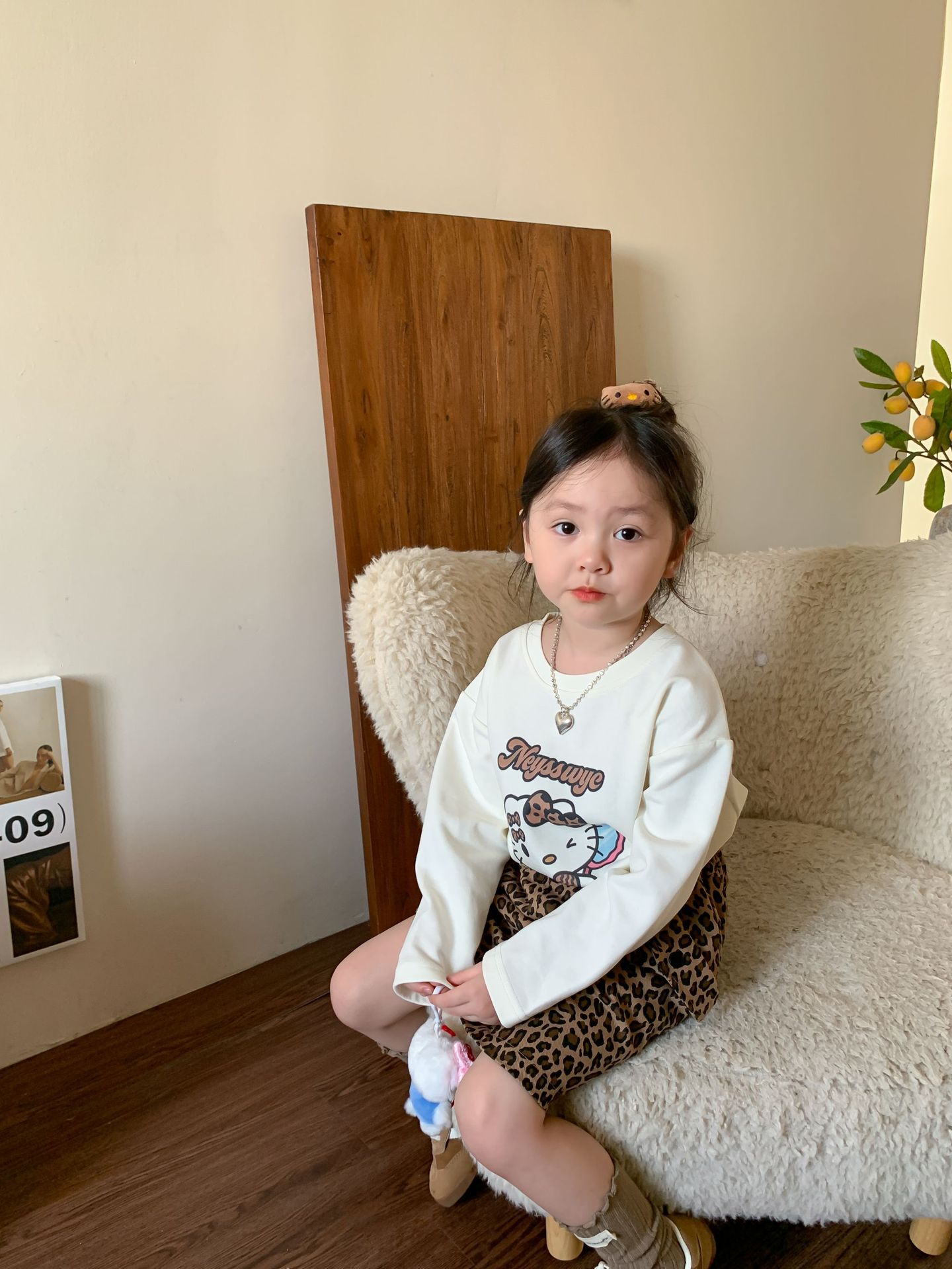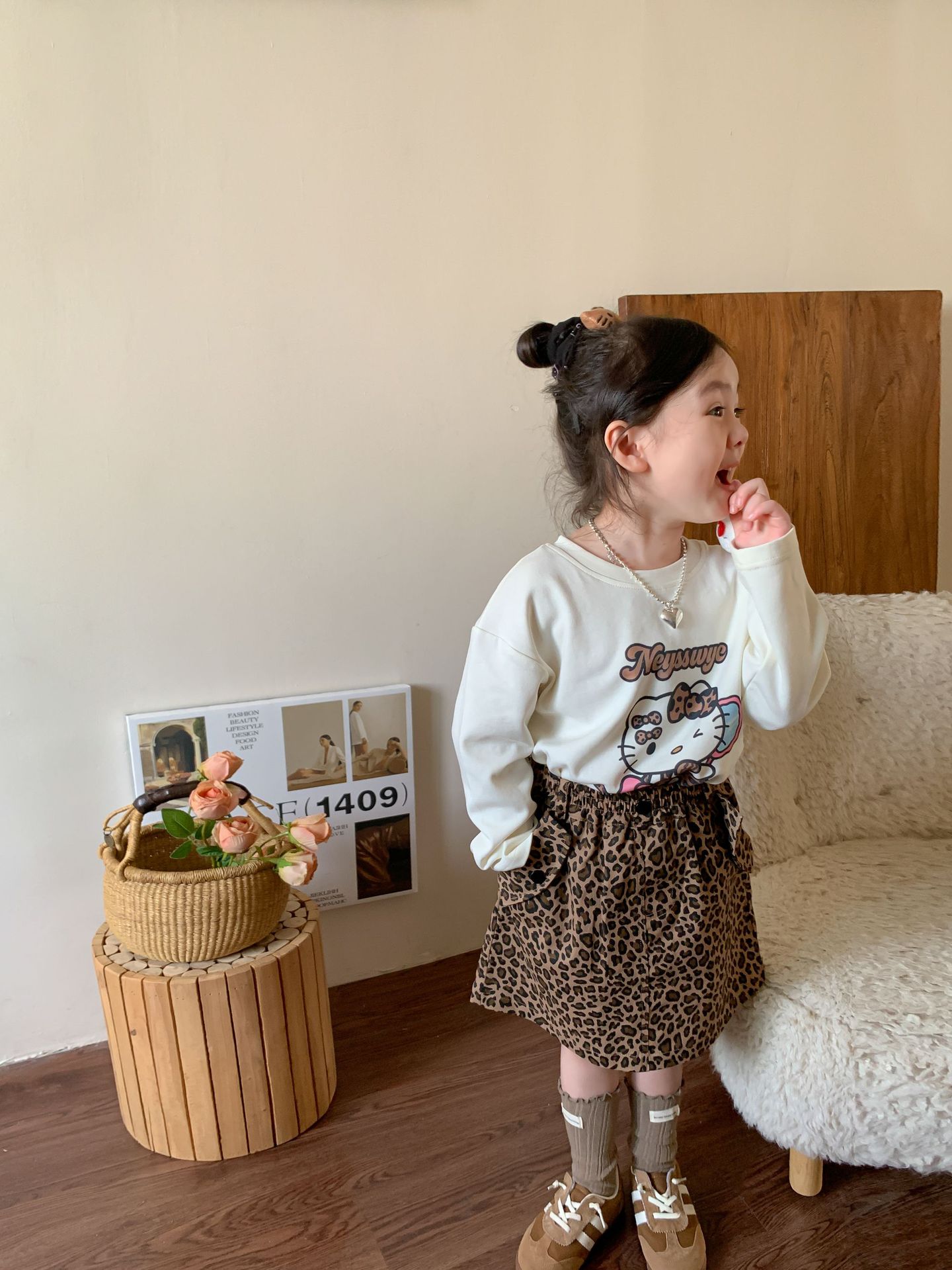 • 만화 고양이 표범 무늬 티셔츠