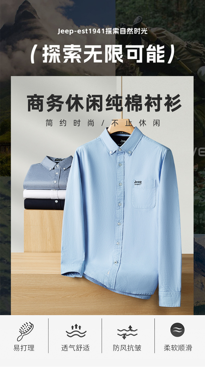 JEEP SPIRIT 남성 캐주얼 비즈니스 긴팔 셔츠 가을 새로운 올매치 편안한 라이트 성숙한 남자 셔츠