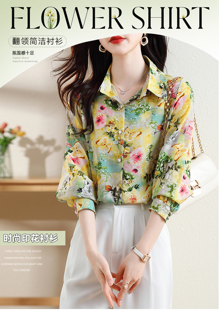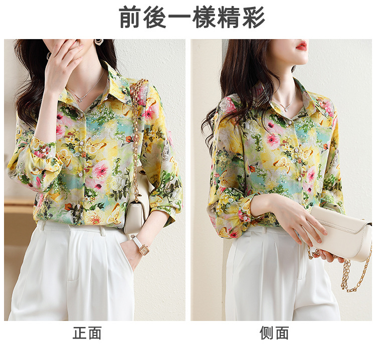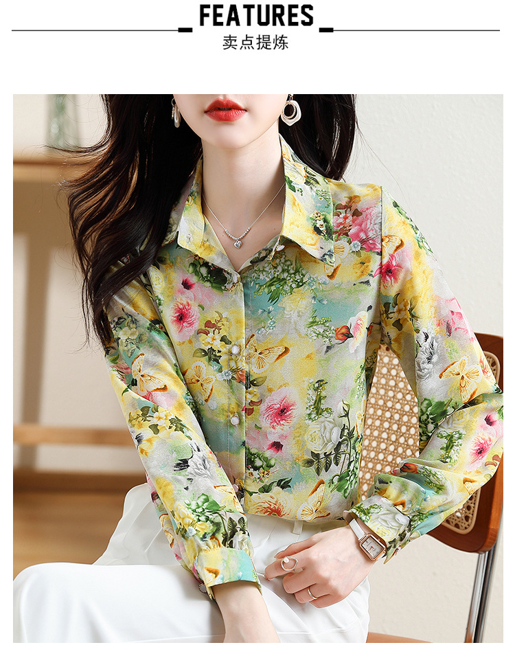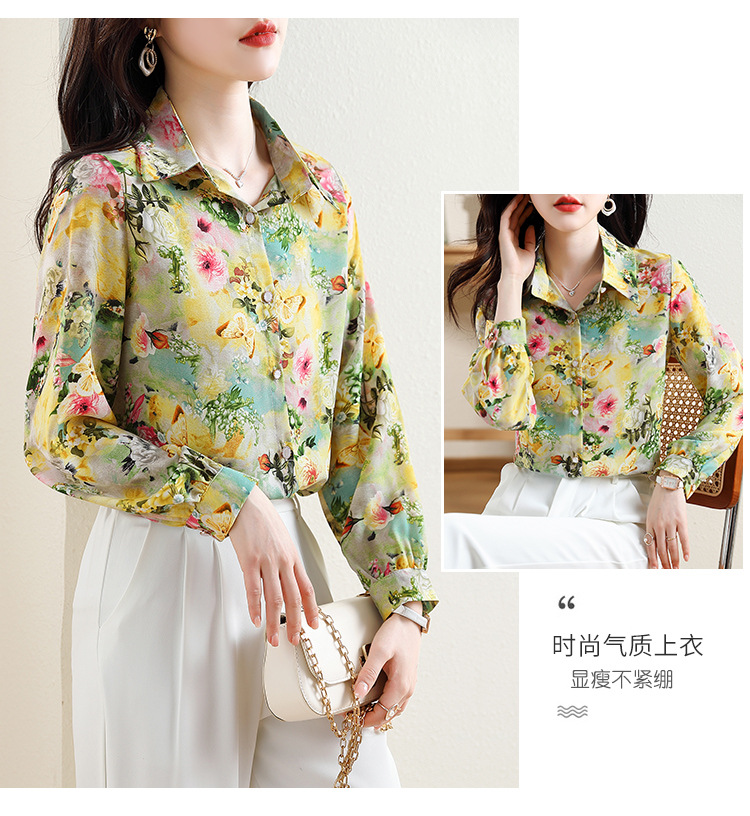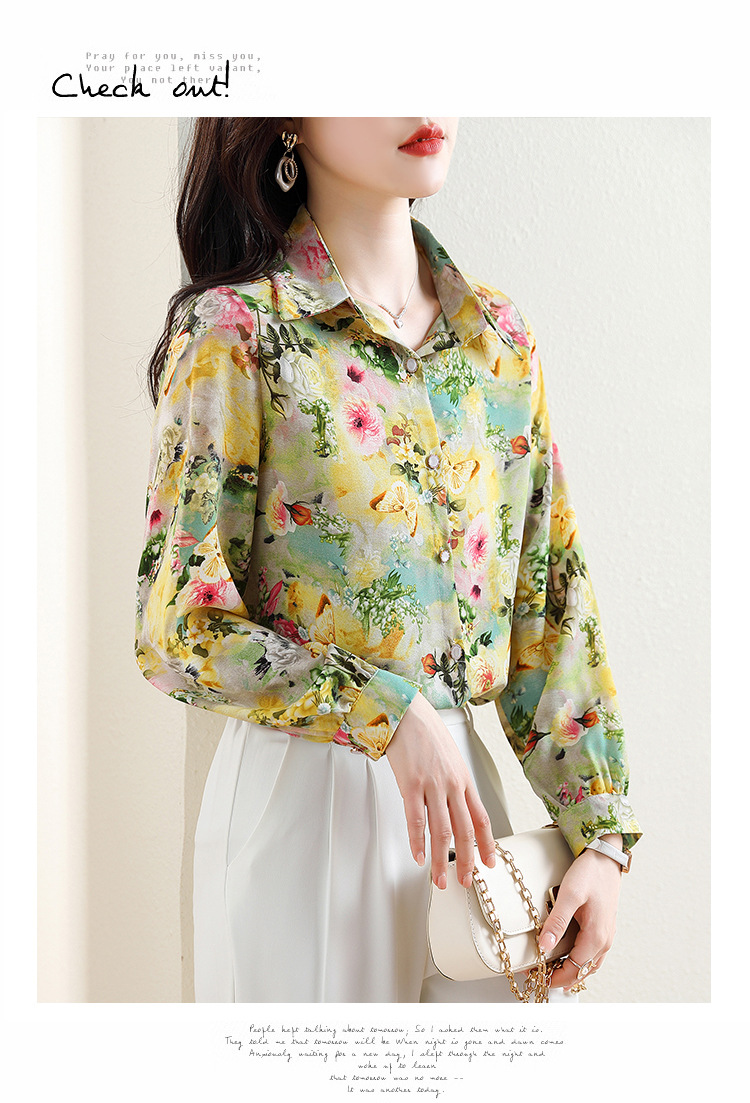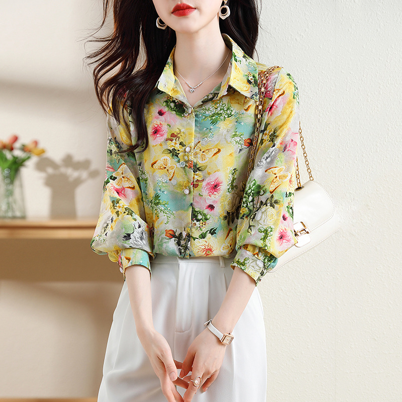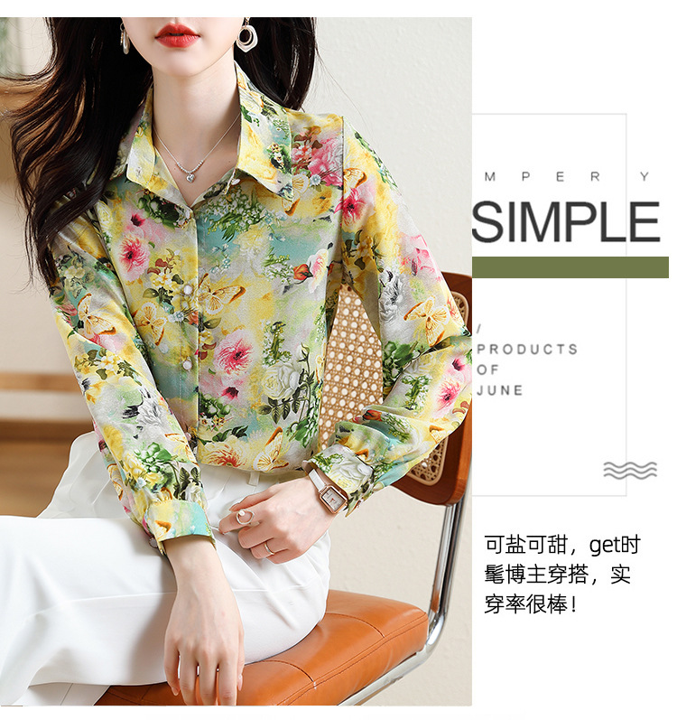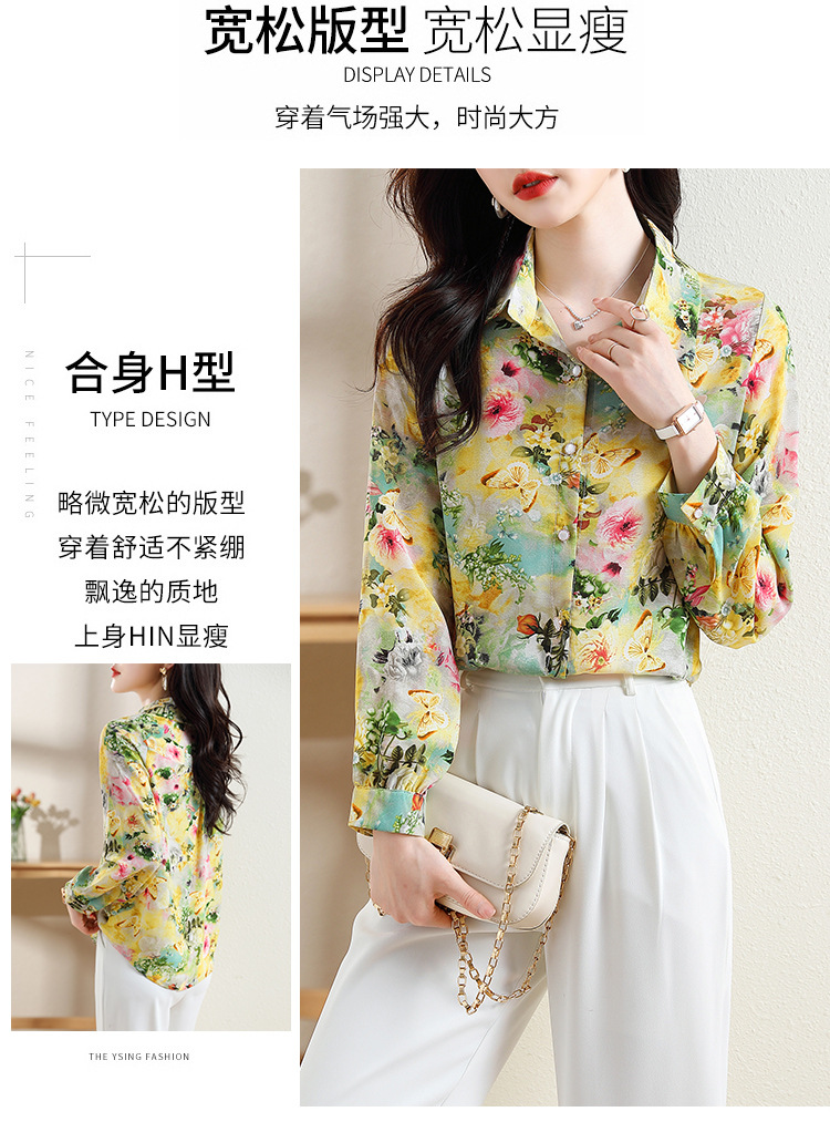 리얼 샷 2023 봄 인쇄 꽃 살 한국 스타일 슬리밍 기질 연령 감소 쉬폰 셔츠 탑스토어 가기