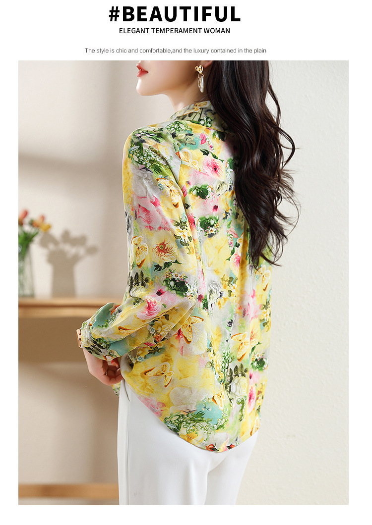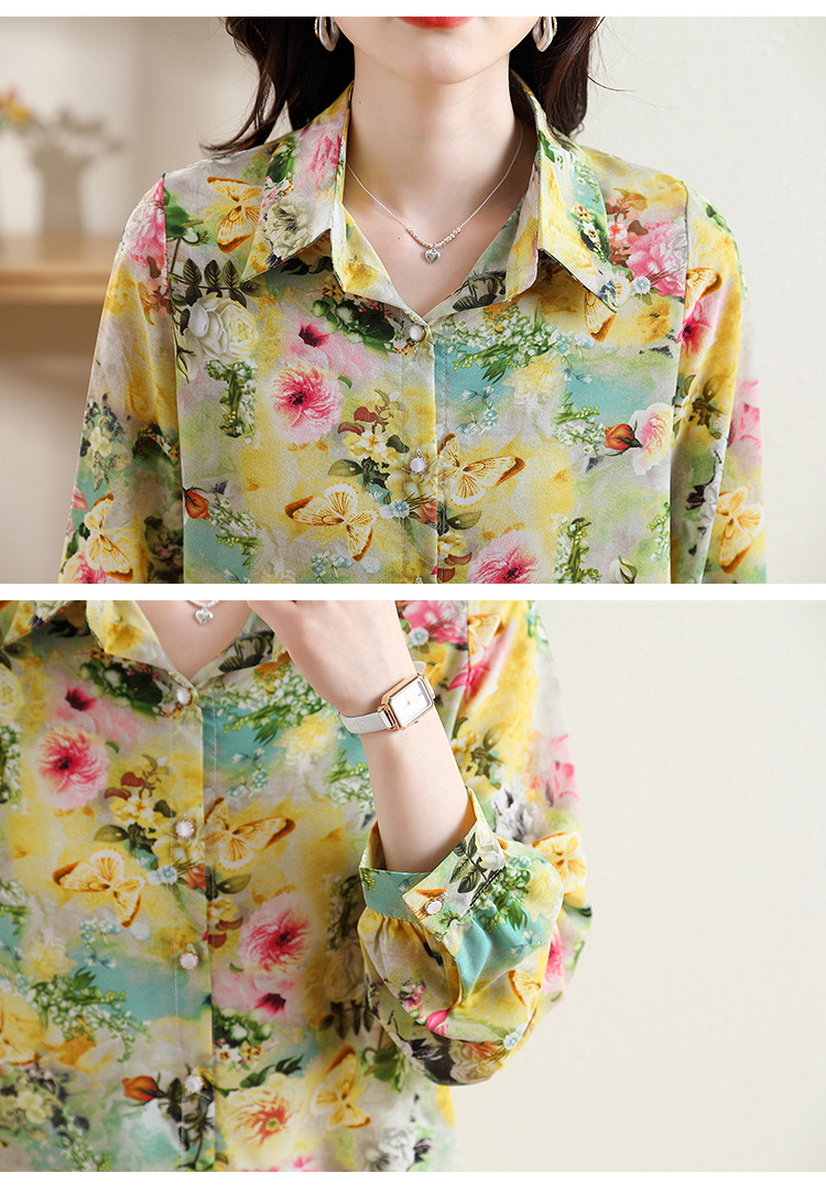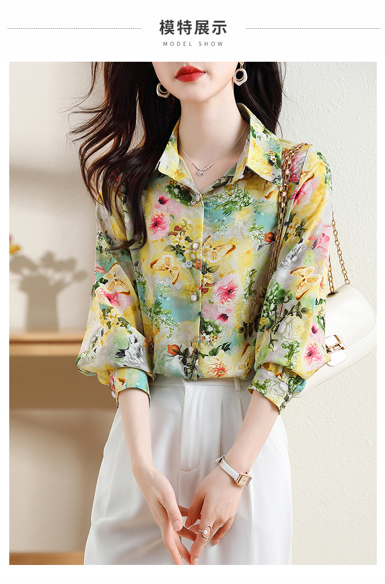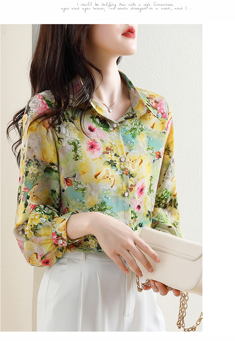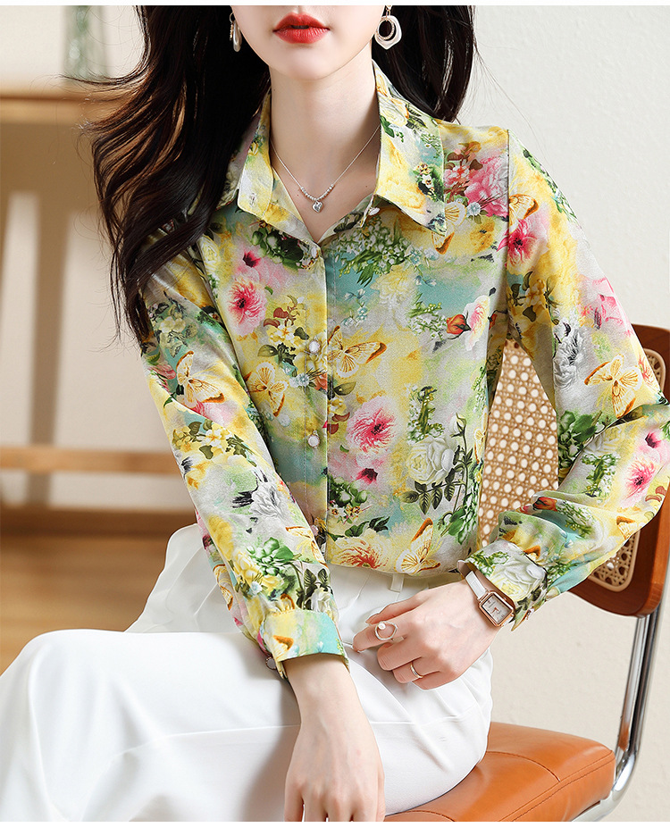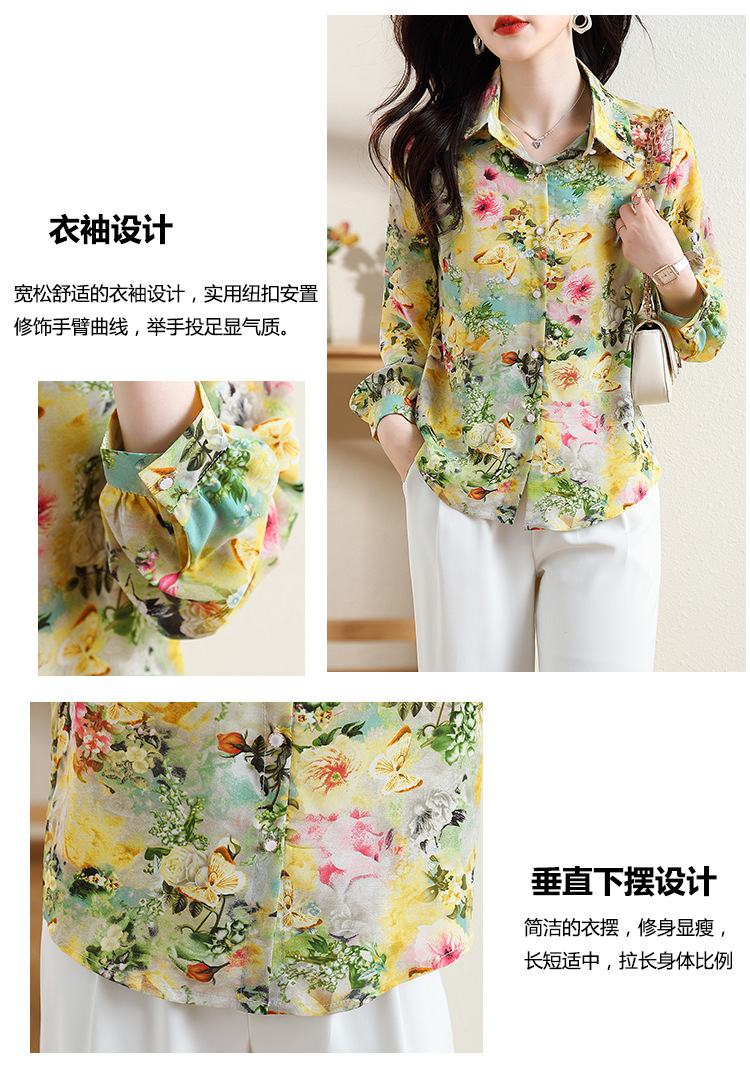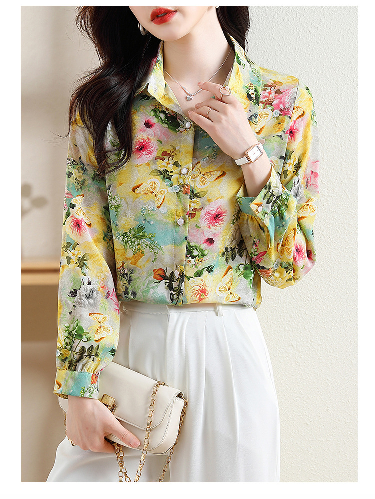 리얼 샷 2023 봄 인쇄 꽃 살 한국 스타일 슬리밍 기질 연령 감소 쉬폰 셔츠 탑스토어 가기