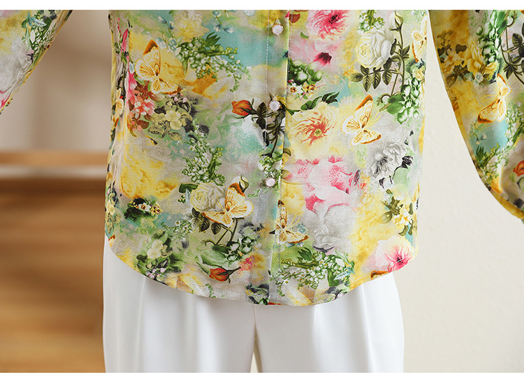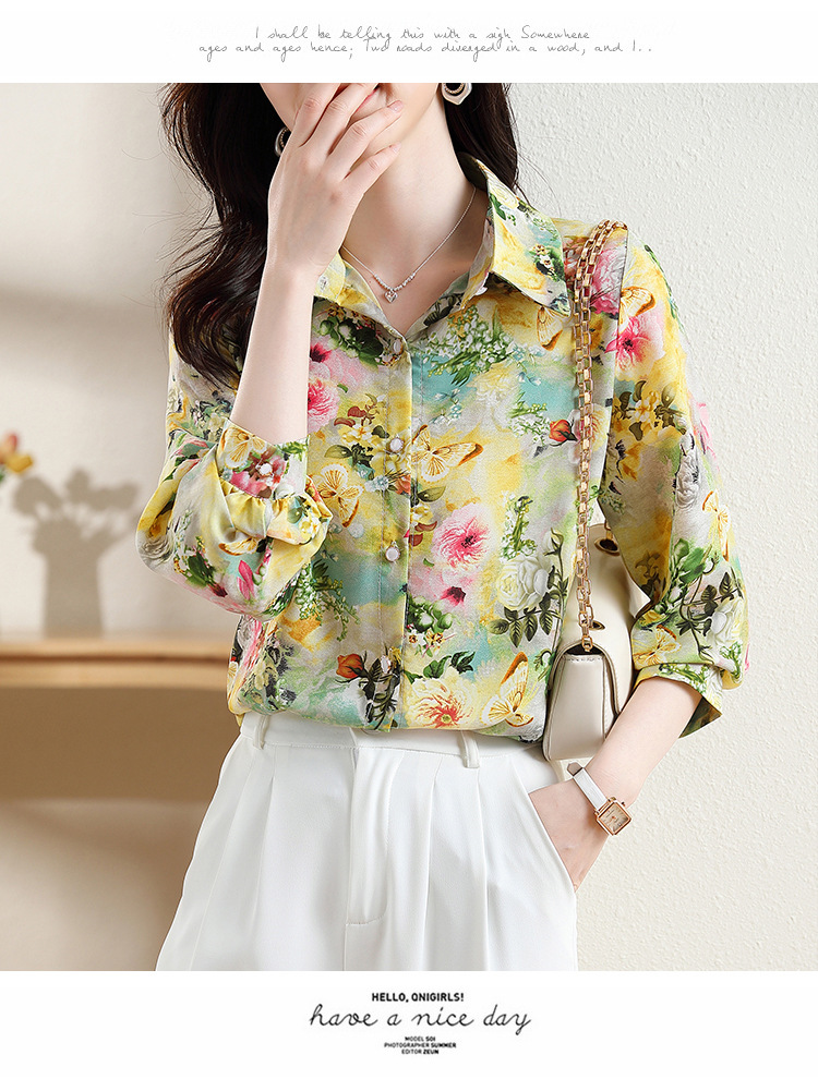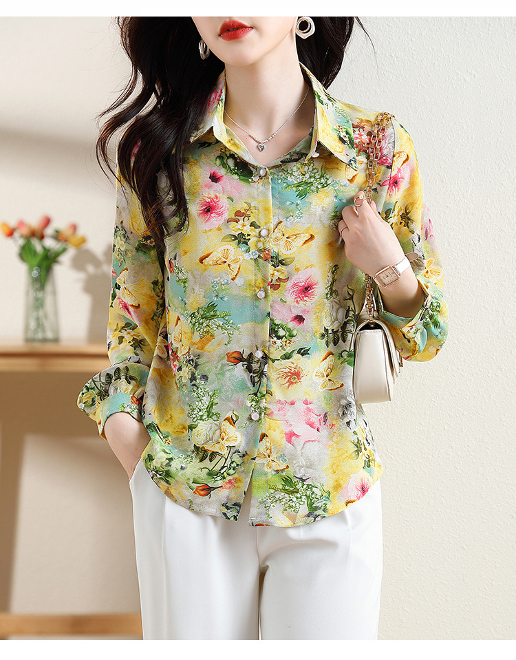 리얼 샷 2023 봄 인쇄 꽃 살 한국 스타일 슬리밍 기질 연령 감소 쉬폰 셔츠 탑