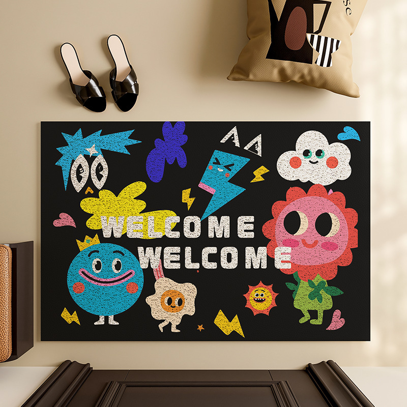 • 다채로운 웃는 얼굴과 재미있는 수직 보드 [만화 엔트리 플로어 매트]