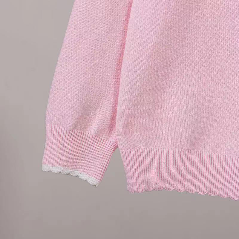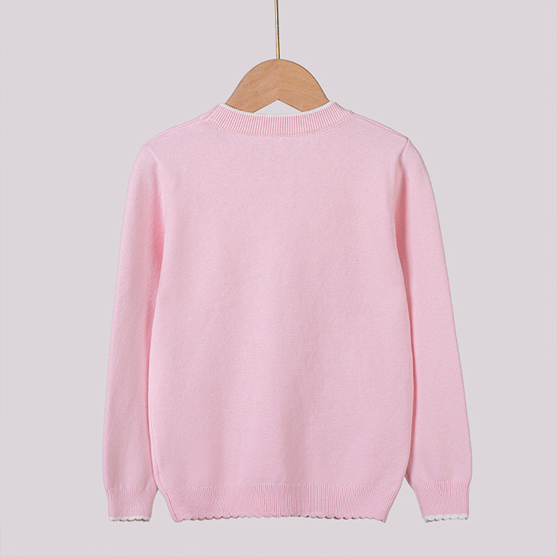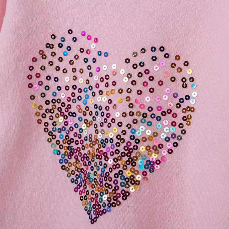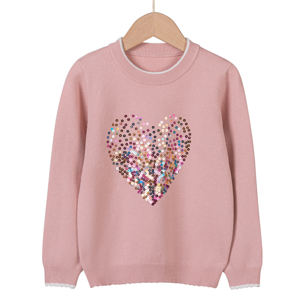 2024 년 봄 가을 아동복 라운드 넥 러브 스팽글 어린이 스웨터 소녀 니트 베이스 셔츠 제조 업체 도매