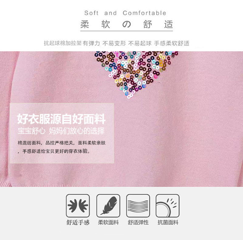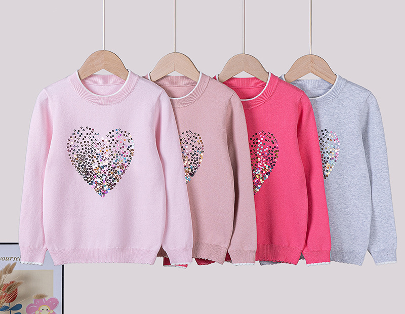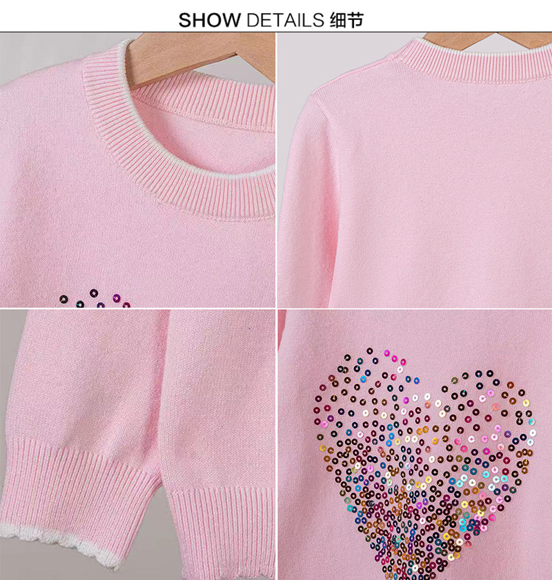 宝贝名称 :  圆领爱心亮片女童针织打底衫上衣毛衣