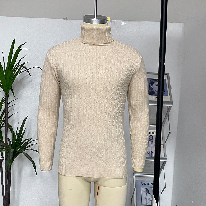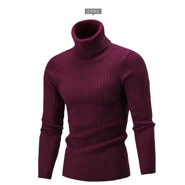 대외 무역 아마존 새로운 남성 슬림 핏 터틀넥 스웨터 니트웨어 청소년 패션 캐주얼베이스 셔츠 남성