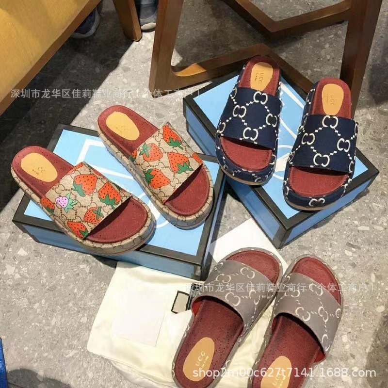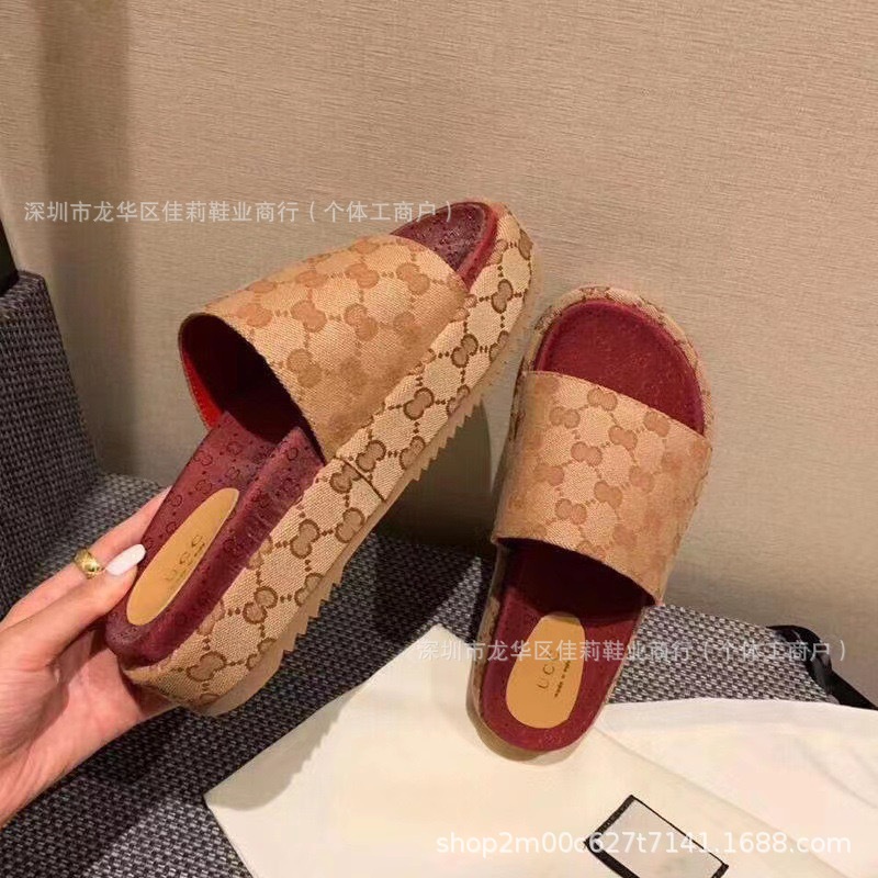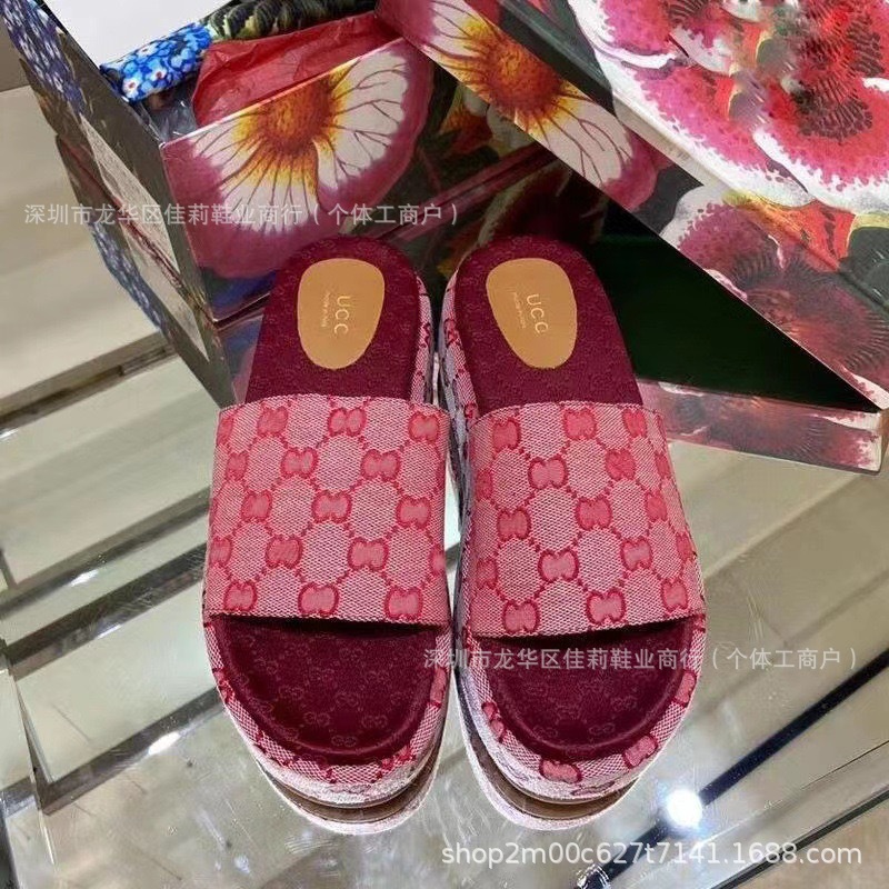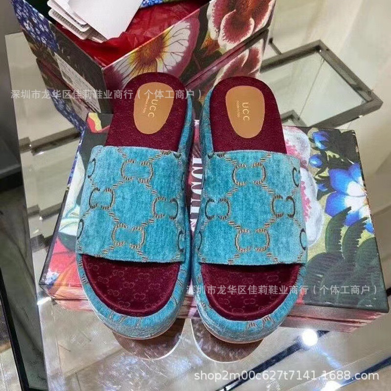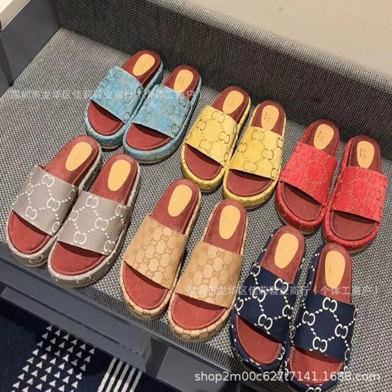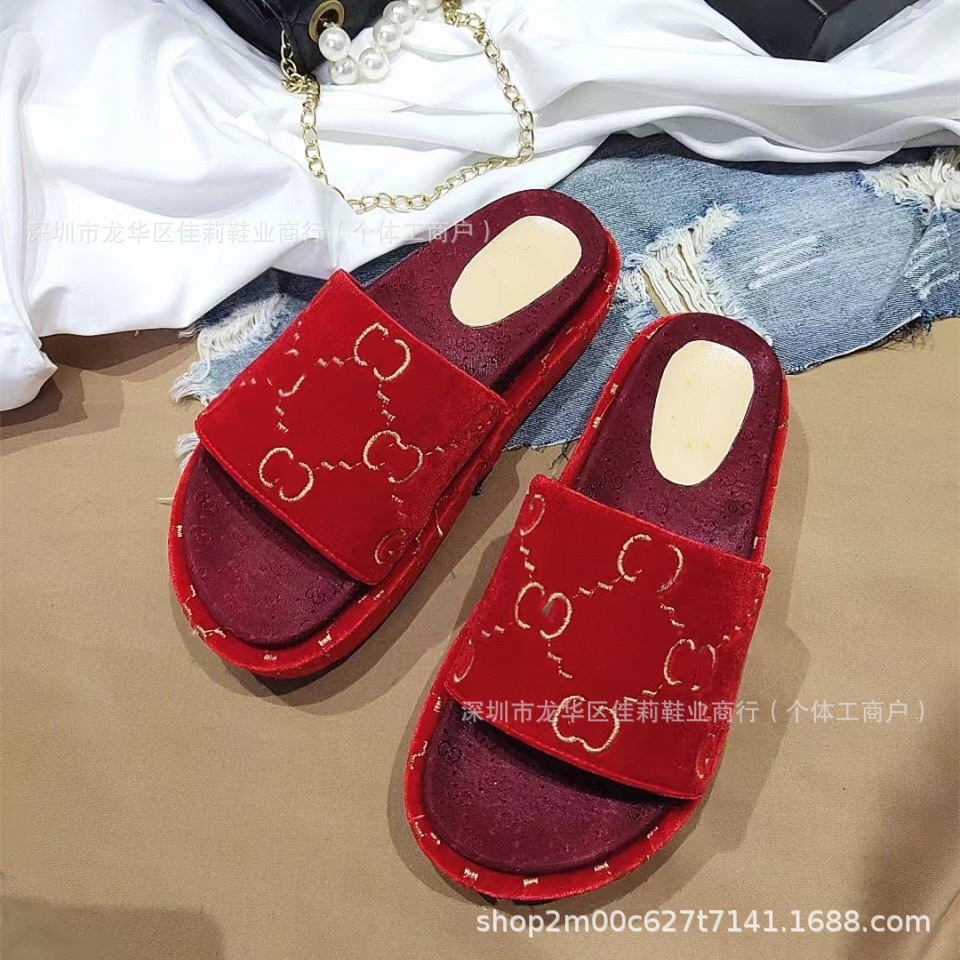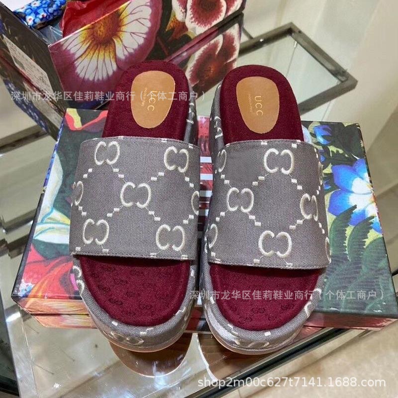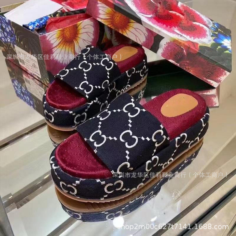 G 수 놓은 두꺼운 밑창 슬리퍼 여성의 2024 여름 새로운 강화 한 단어 대외 무역 수출 공장 머리카락 세대스토어 가기