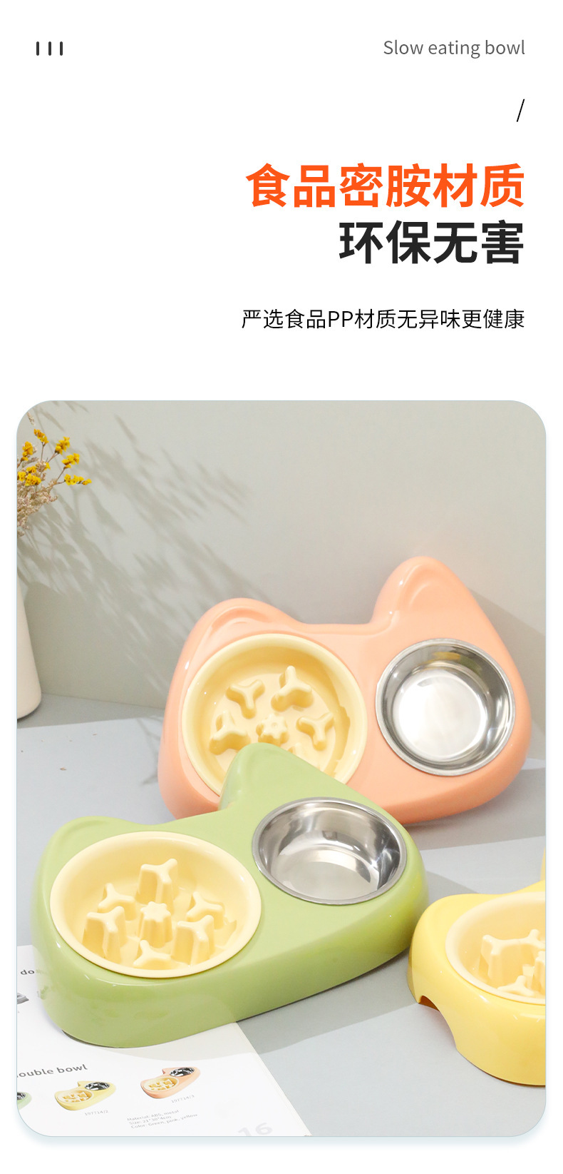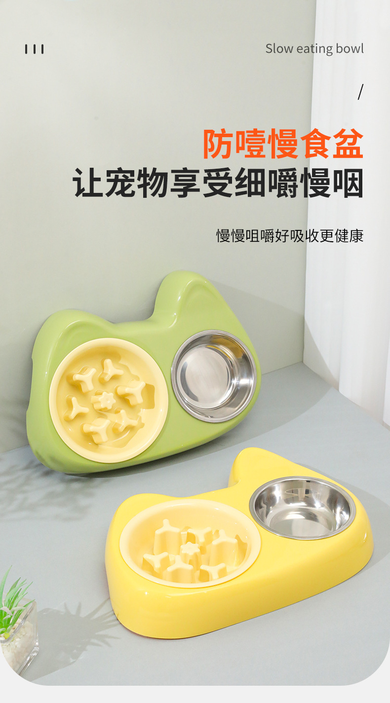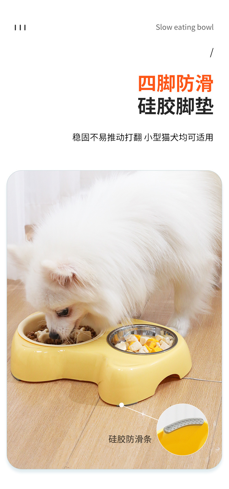 크고 작은 눈을 위한 새로운 질식 방지 스테인레스 스틸 이중 그릇 슬로우 푸드 투인원 애완 동물 그릇 애완 동물 용품 스테인레스 스틸 이중 그릇 분지스토어 가기