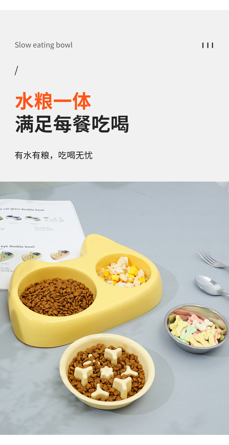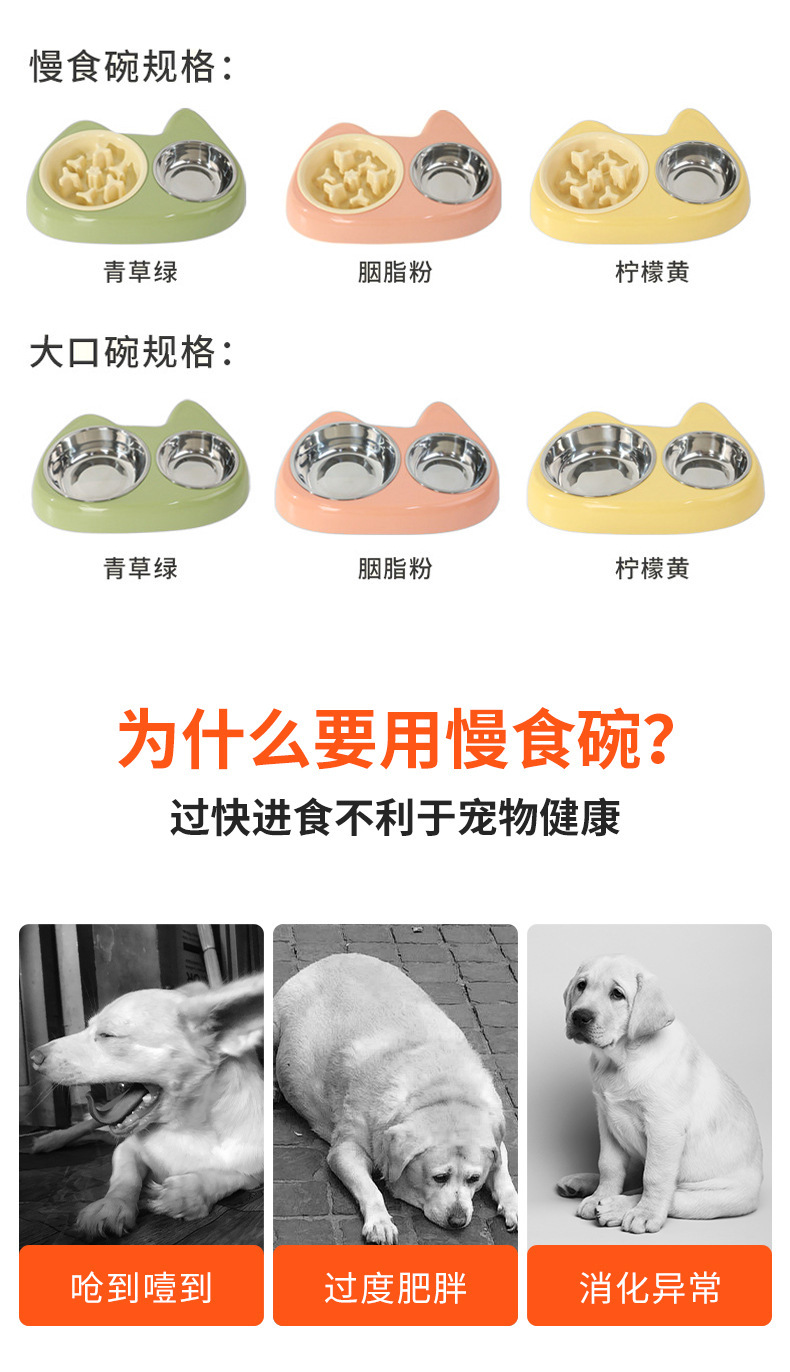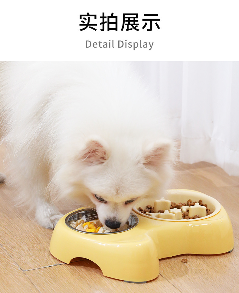 크고 작은 눈을 위한 새로운 질식 방지 스테인레스 스틸 이중 그릇 슬로우 푸드 투인원 애완 동물 그릇 애완 동물 용품 스테인레스 스틸 이중 그릇 분지스토어 가기