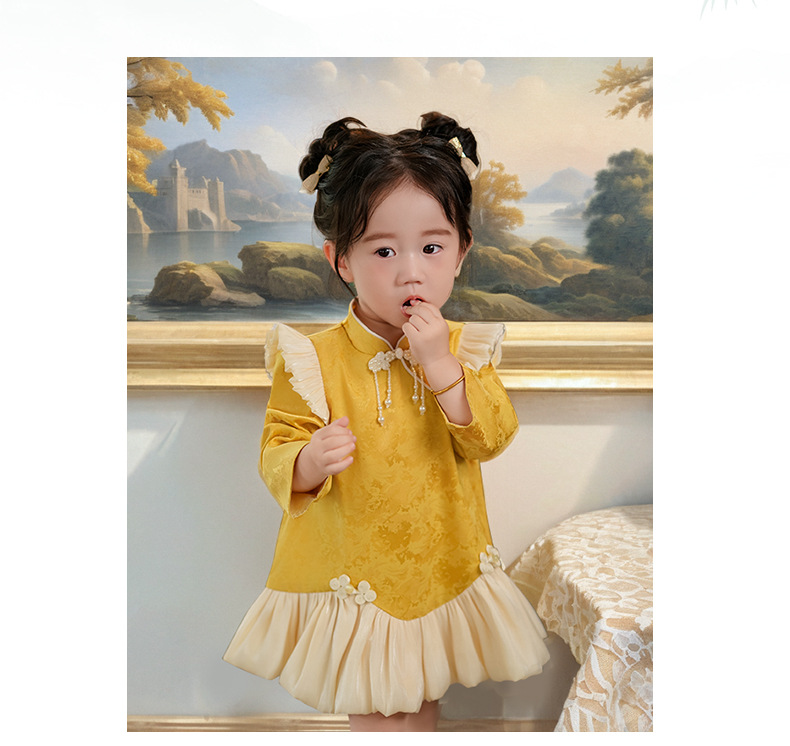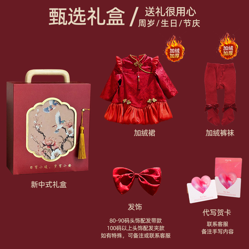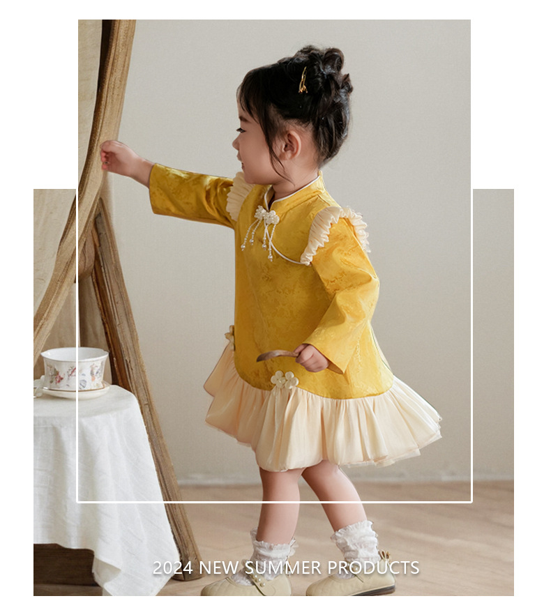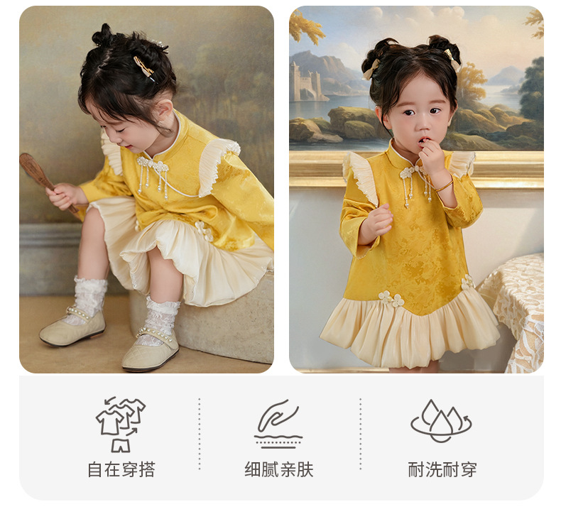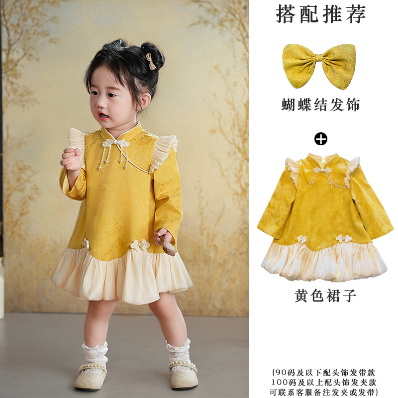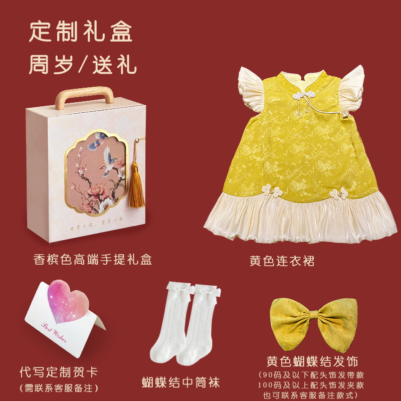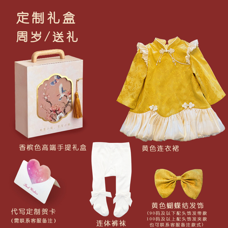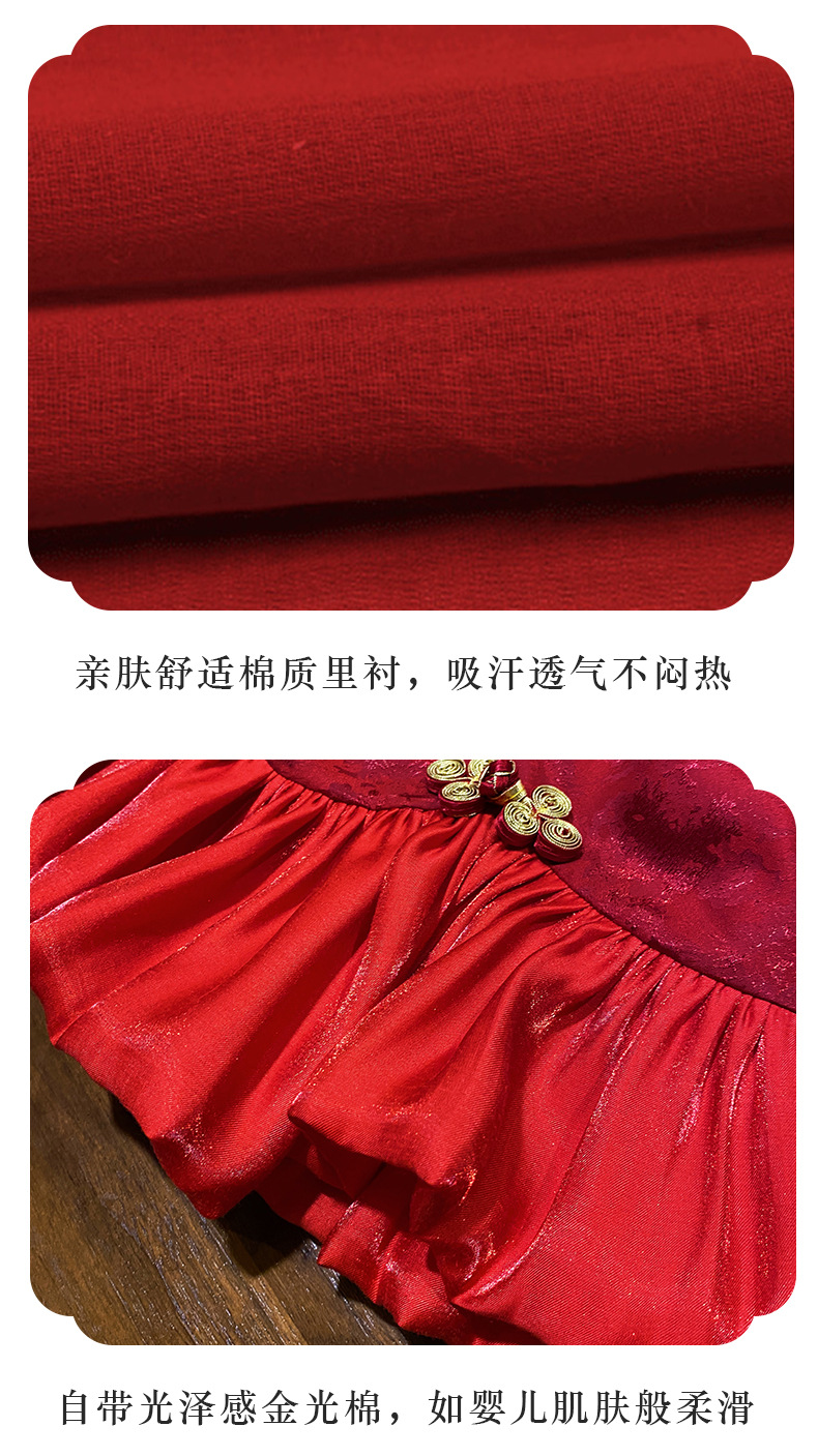 여아 드레스, 새로운 중국 스타일의 봄 여름 긴팔 빨간색 축제 한살 드레스, 여자 아기의 첫 생일 드레스, 치파오 공주 드레스스토어 가기