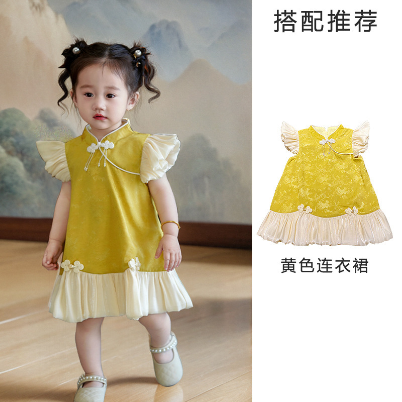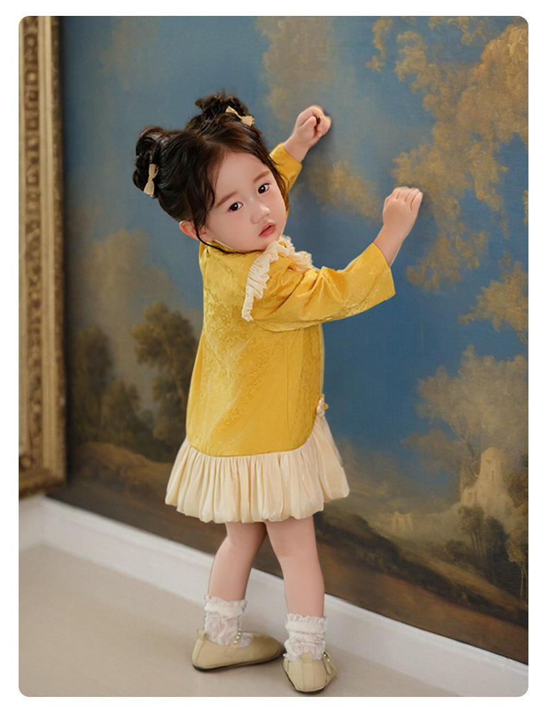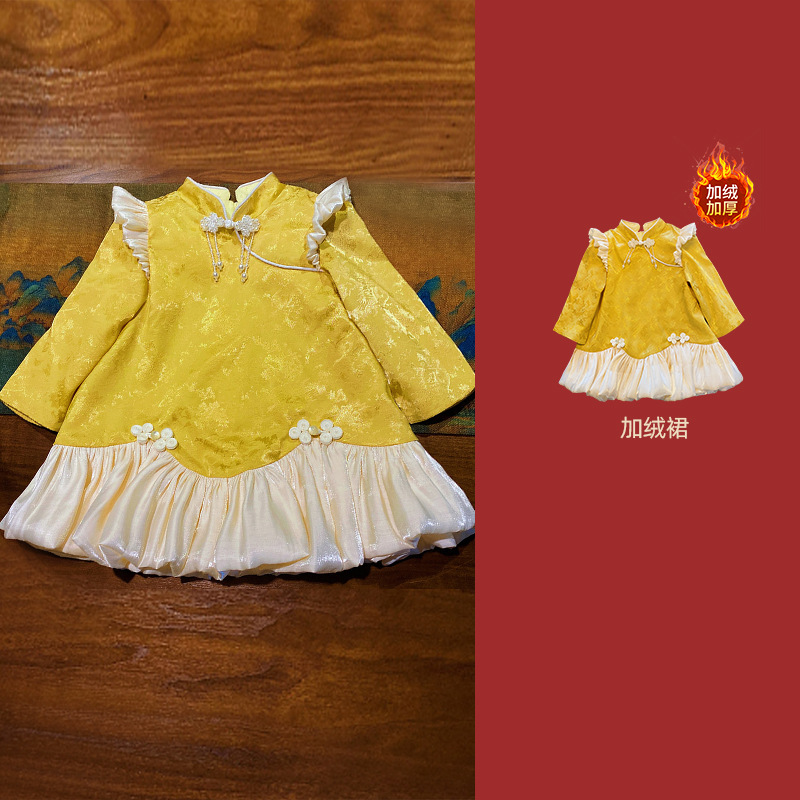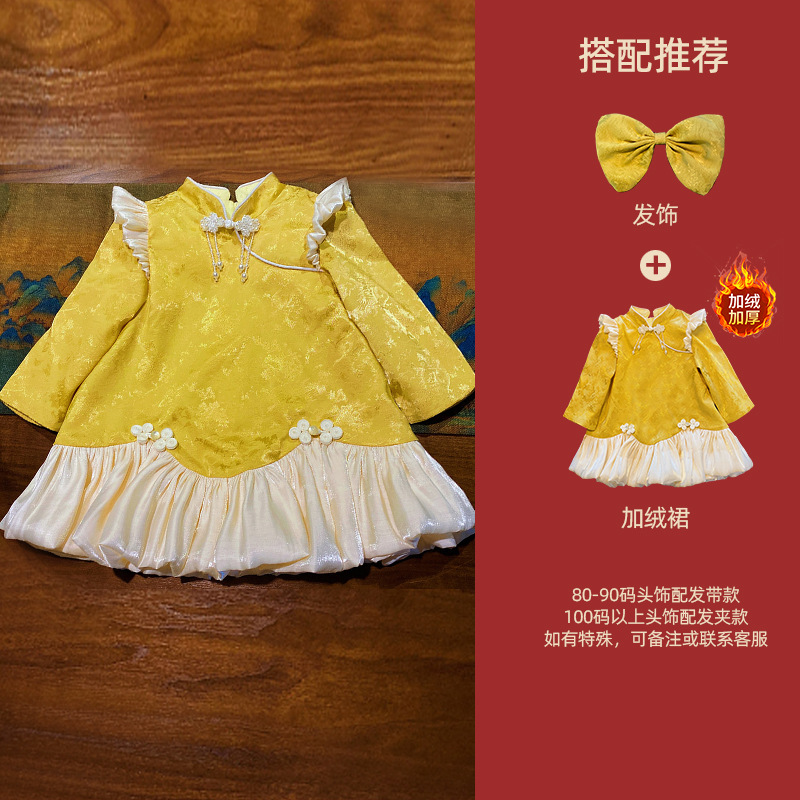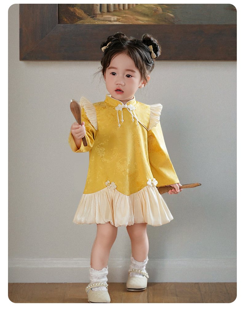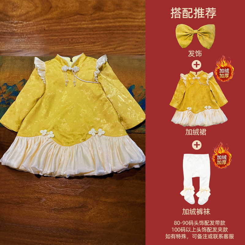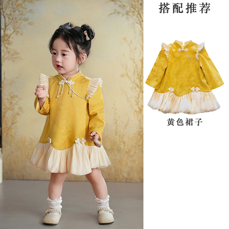 여아 드레스, 새로운 중국 스타일의 봄 여름 긴팔 빨간색 축제 한살 드레스, 여자 아기의 첫 생일 드레스, 치파오 공주 드레스스토어 가기