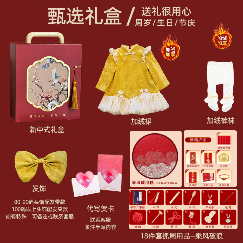• 노란색 긴팔 플러스 벨벳 + 모자 + 팬티스타킹 + 선물 상자 + 18종 세트
