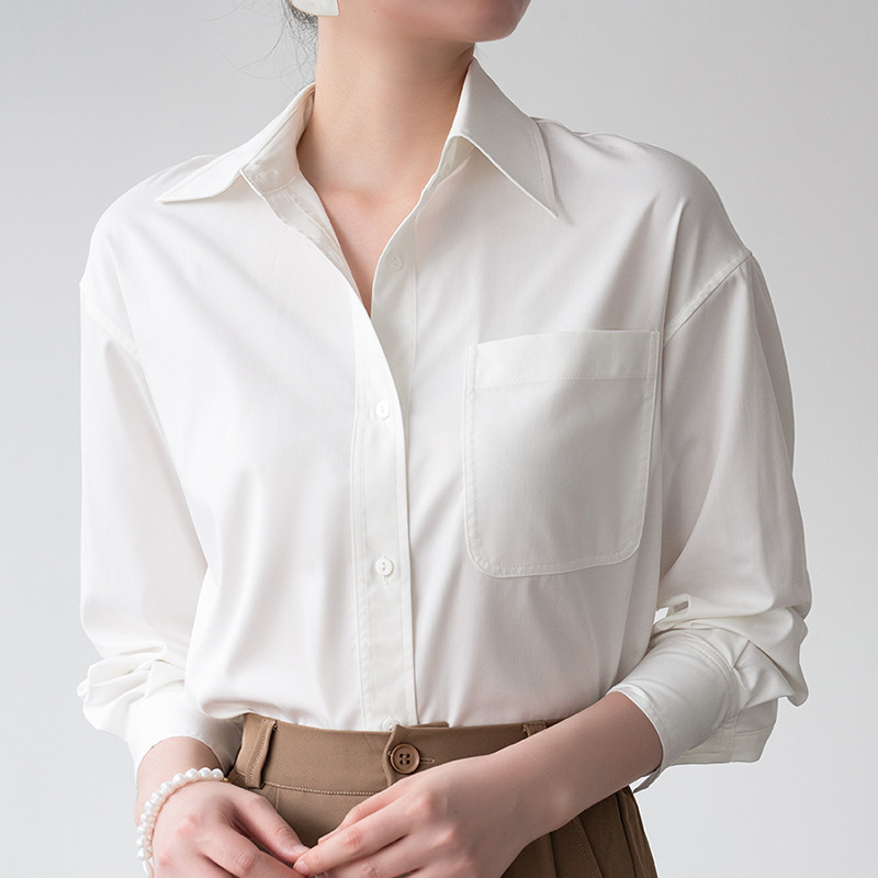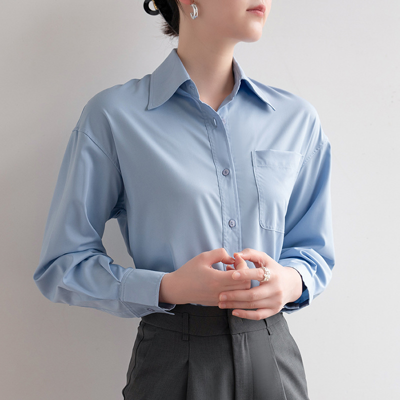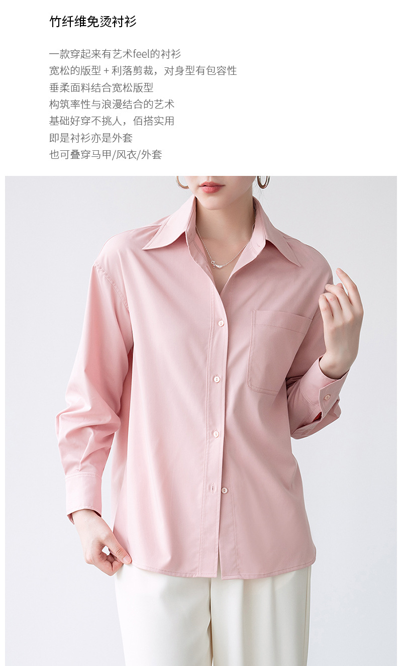 25 가을 겨울 여성용 기본 심플 캐주얼 핑크 셔츠, 루즈, 슬림, 드레이프, 주름 방지, 다림질 없음, 다용도 셔츠스토어 가기